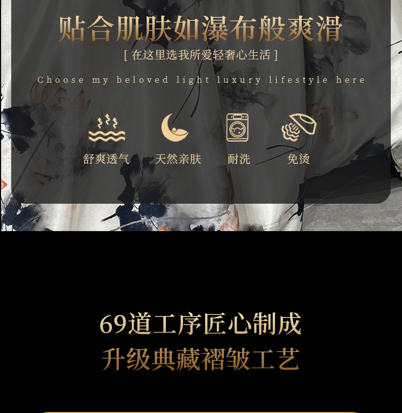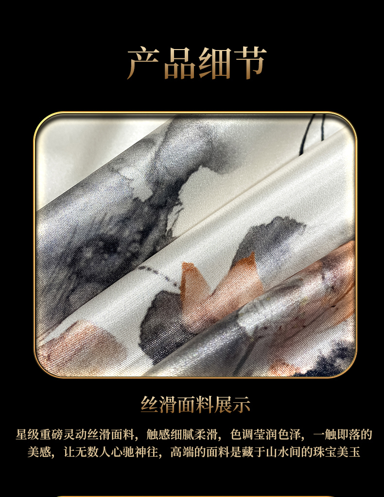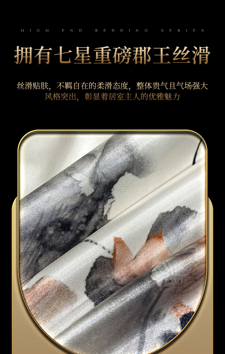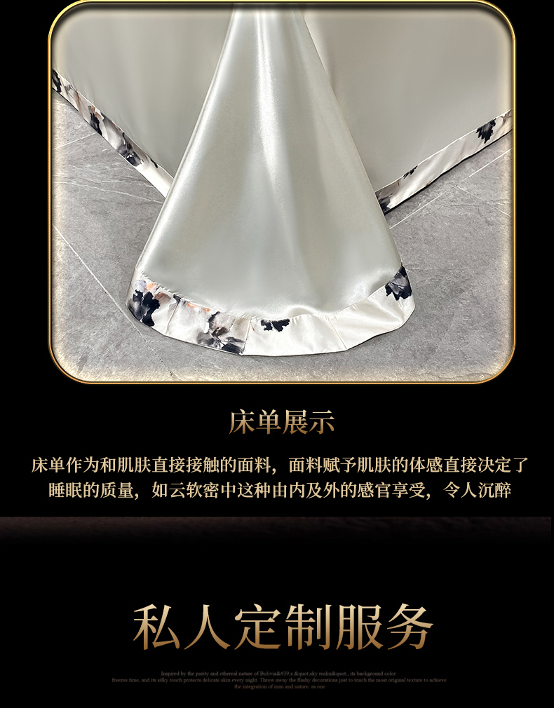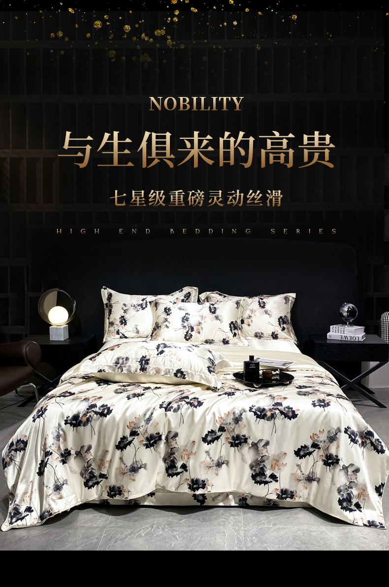 商品名称:黄鹂鸟 2025新款高端轻奢丝滑裸睡丝绸数码印花水洗真丝天丝四件套系列 -风格四 雾里看花