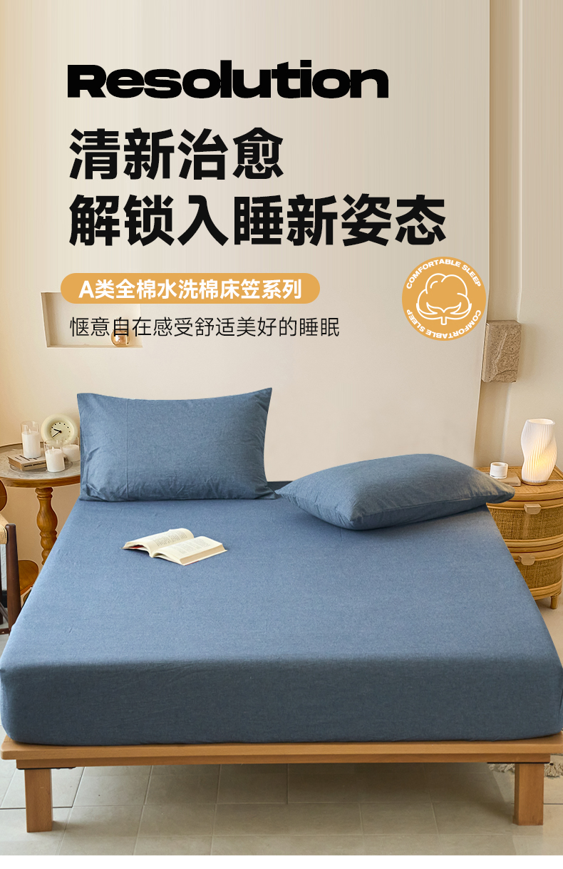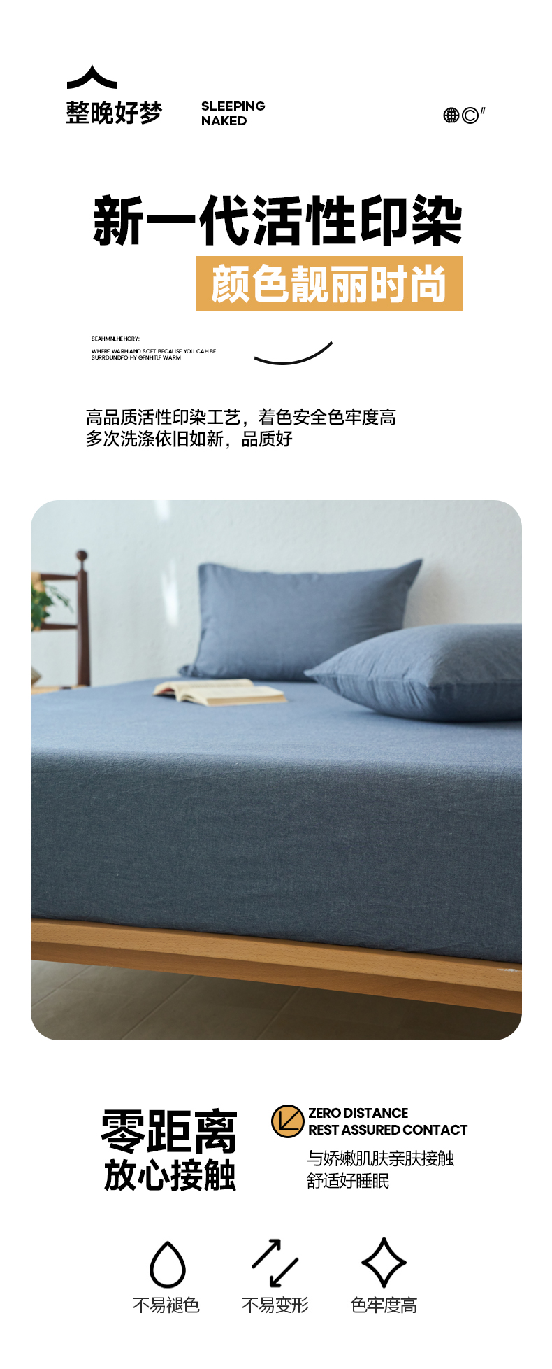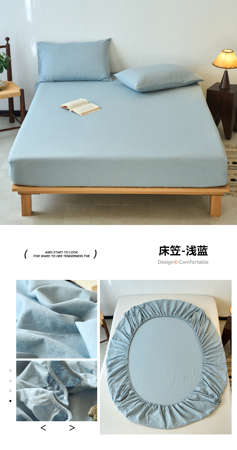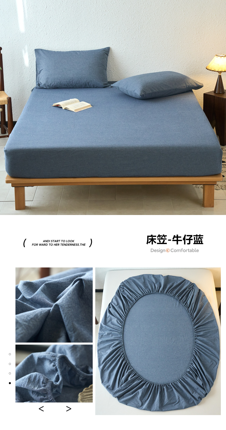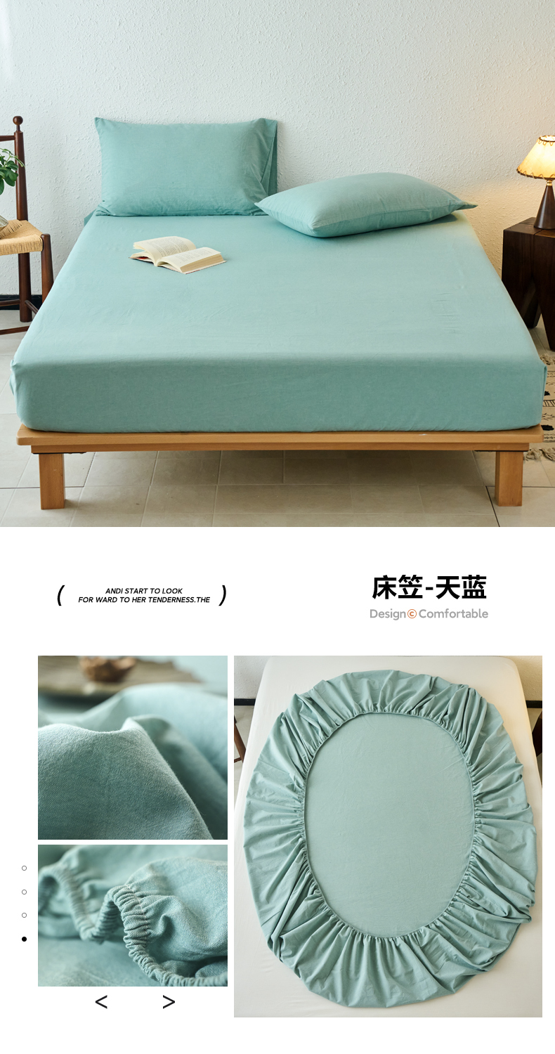 (总)兰紫橙新款全棉色织全棉纯色水洗棉床笠
