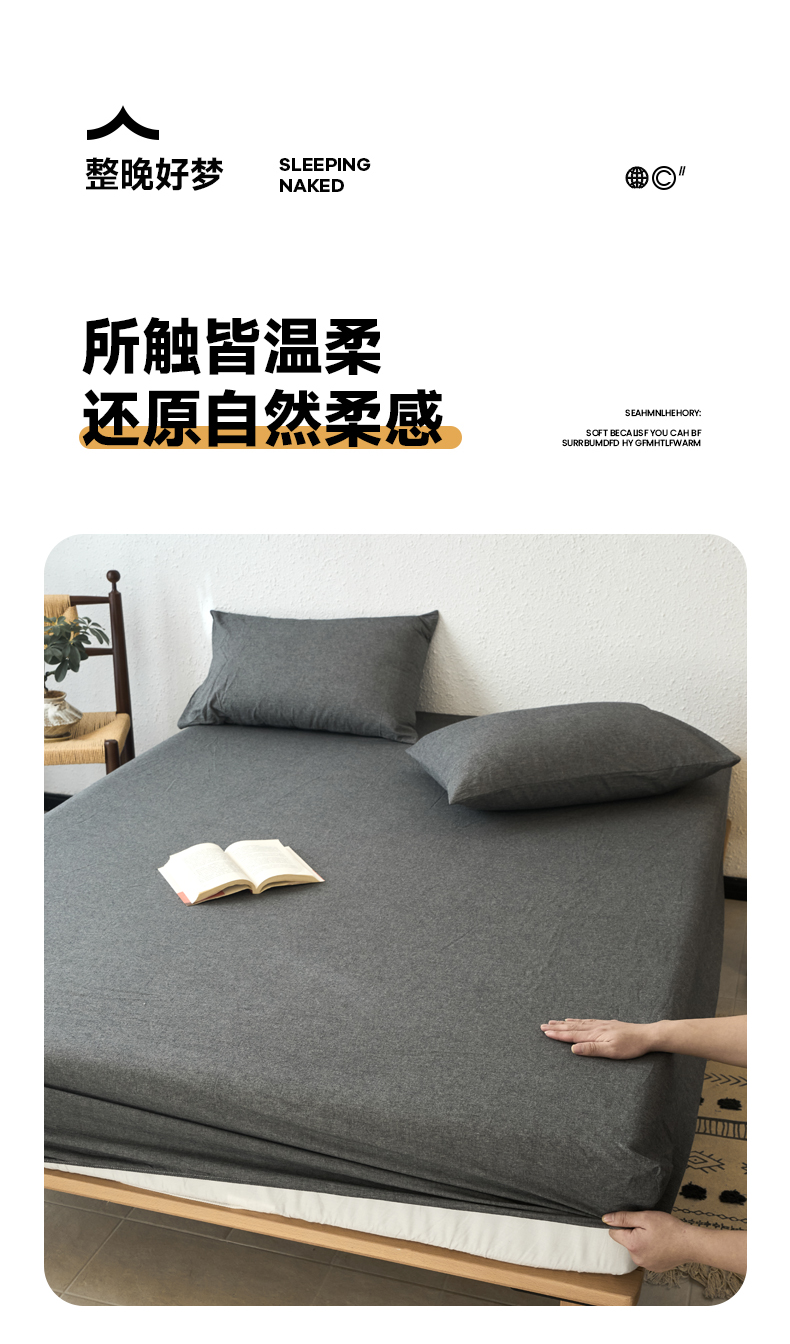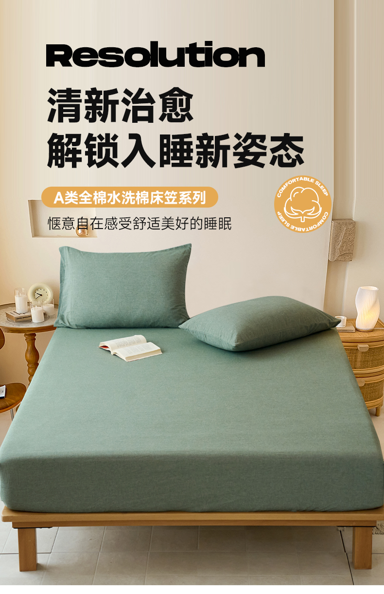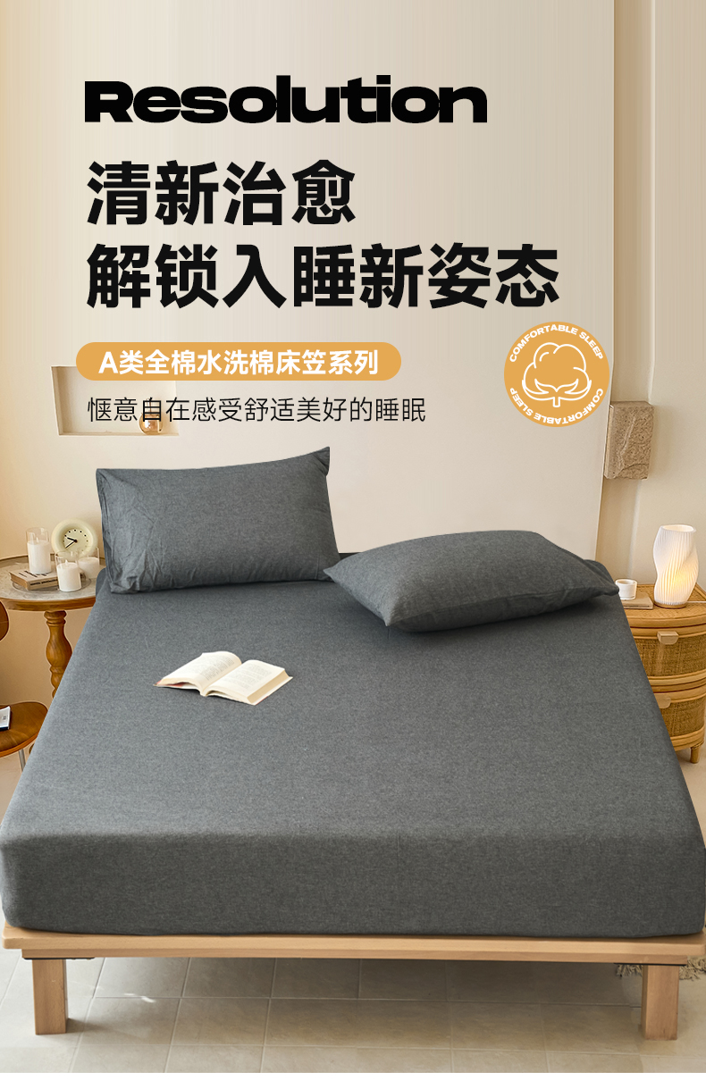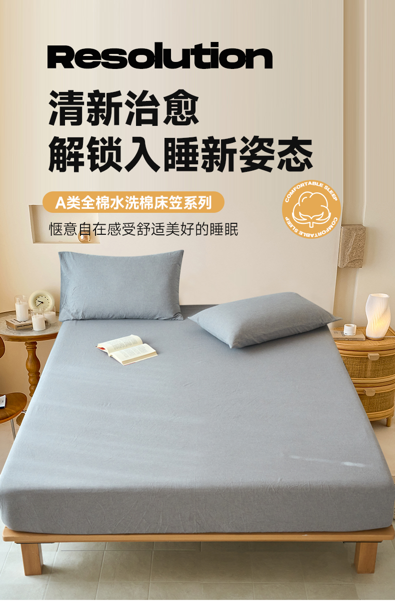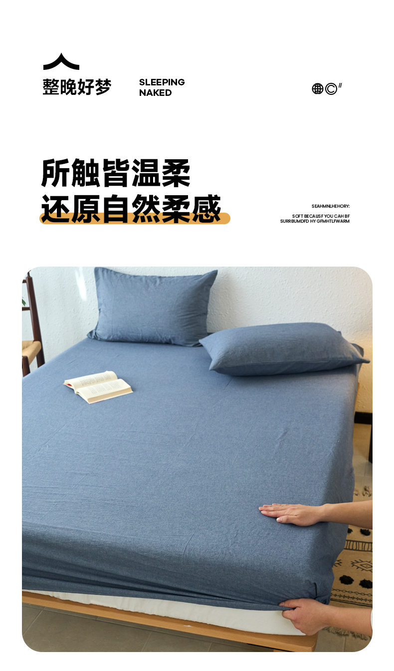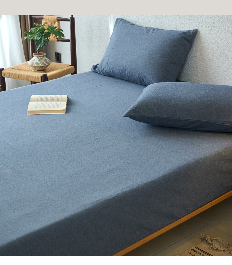 (总)兰紫橙新款全棉色织全棉纯色水洗棉床笠