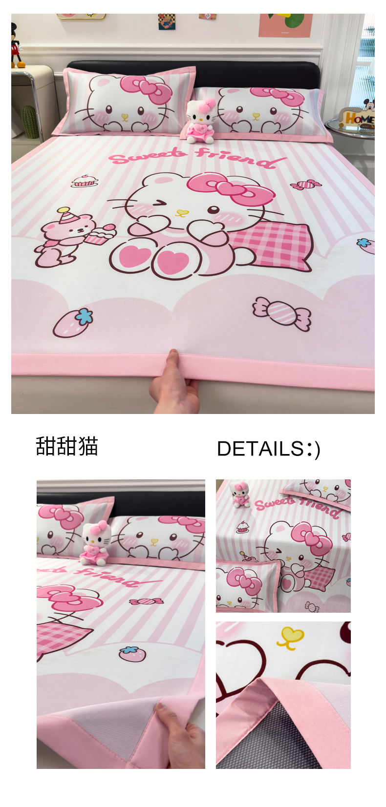商品名称:丝羽坊 2025新款大版印花冰丝凉席冰丝席碳光冰丝凉席-平铺款 甜甜猫