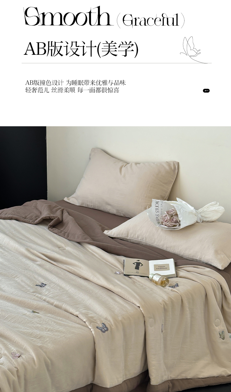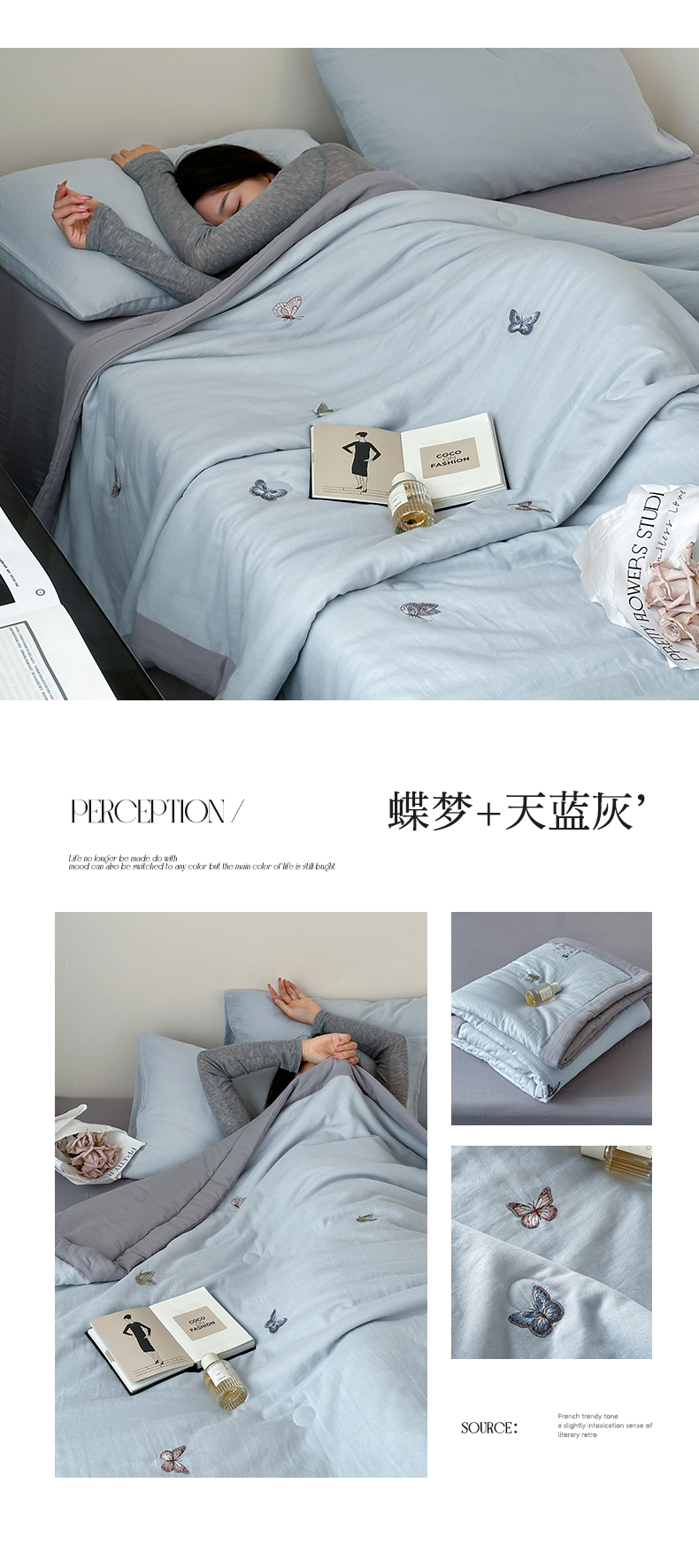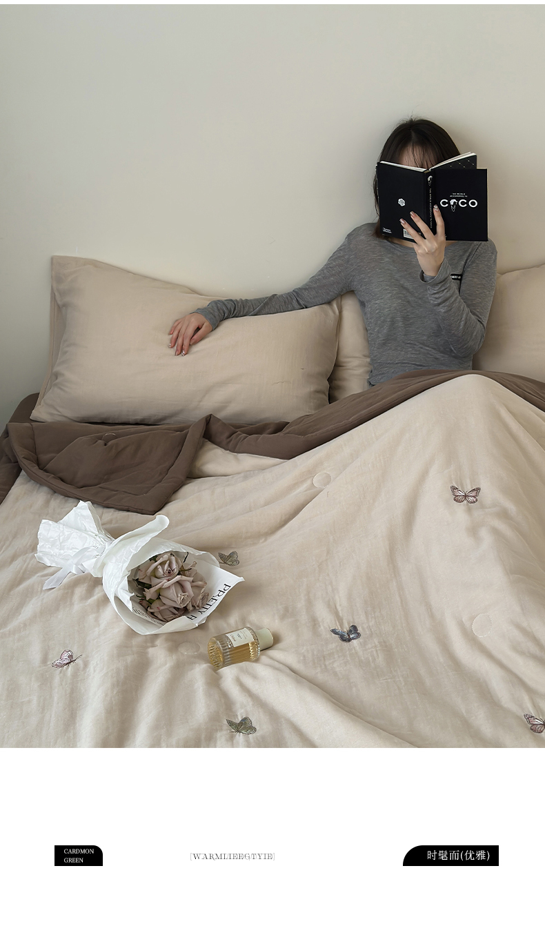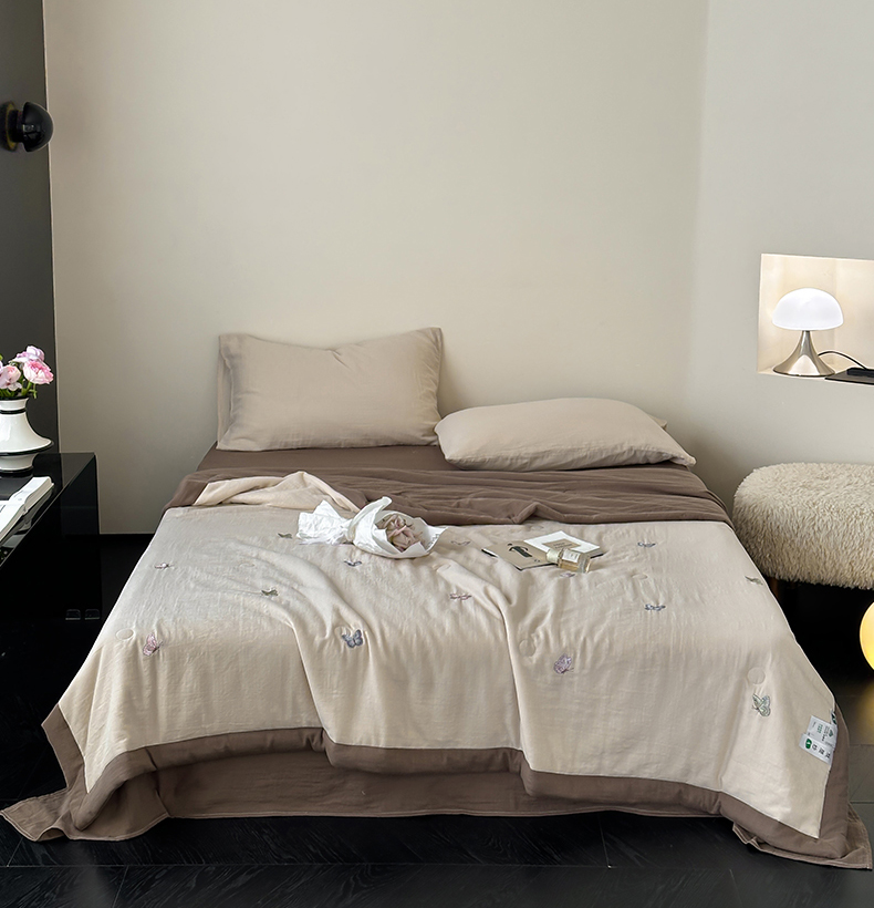当前位置: 91家纺网 > 商品网购 > 床品套件 > 四件套 > 夏被四件套 > 一加一 2025新款A类全棉双层皱皱纱蚕蛹蛋白夏被四件套(蝶梦系列) 蝶梦-米咖