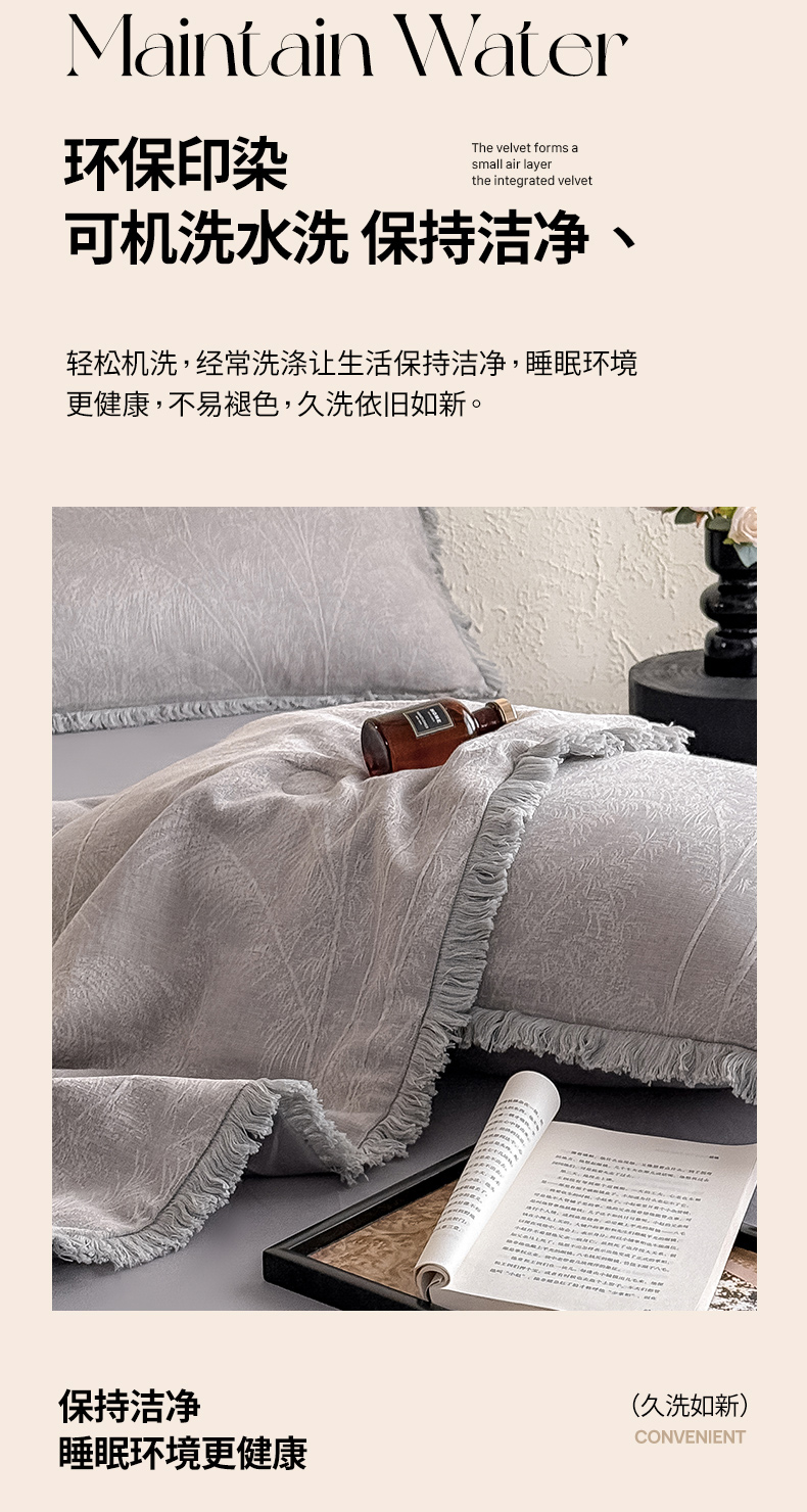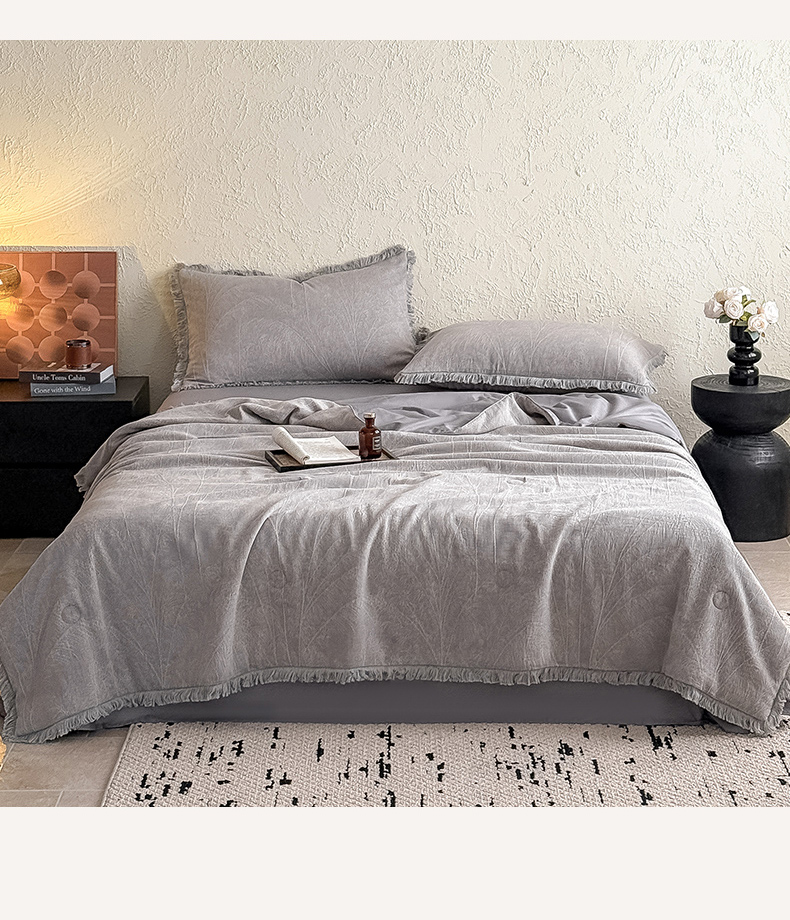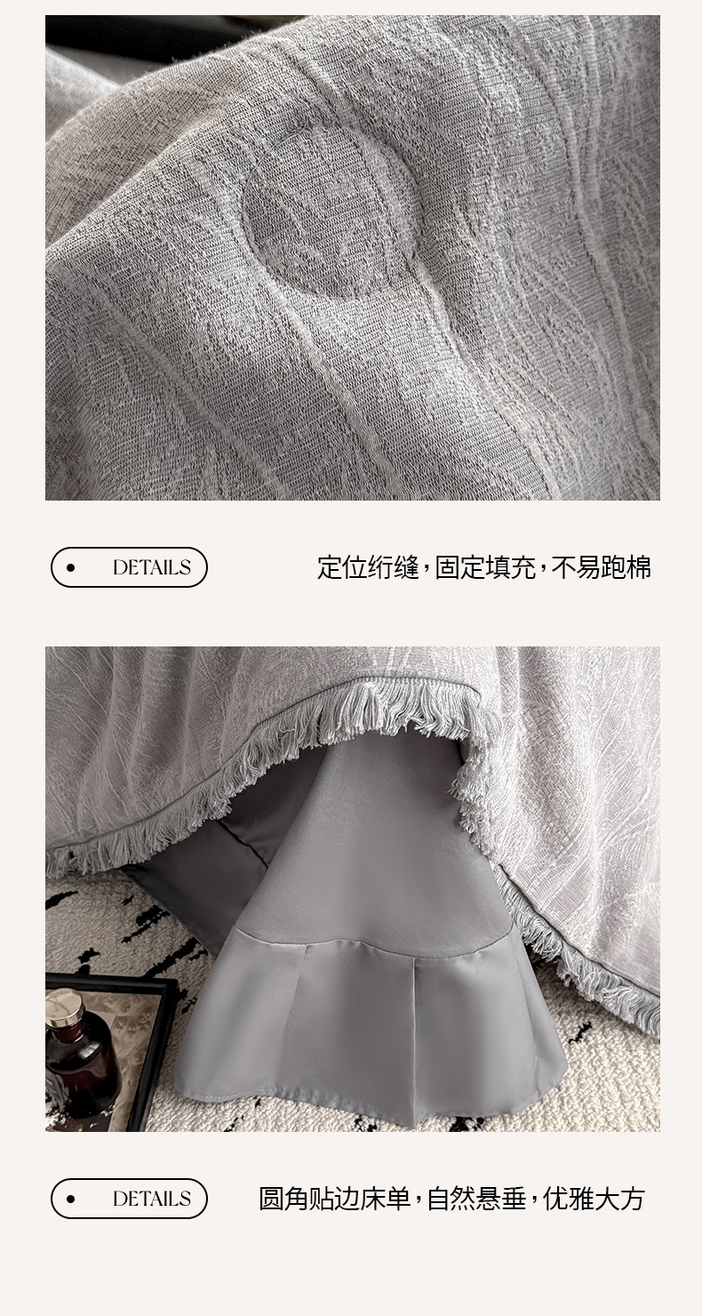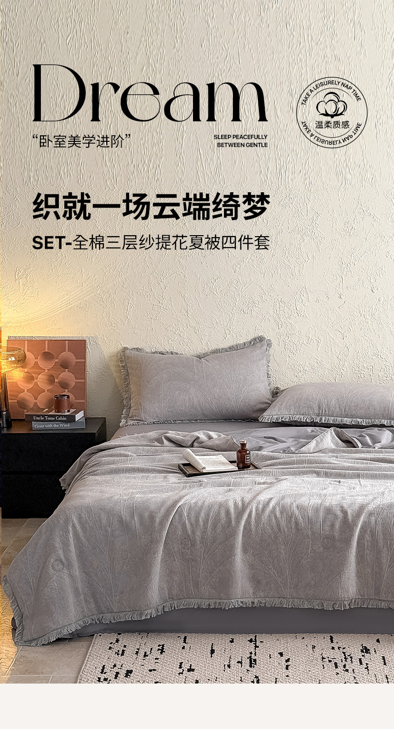 当前位置: 91家纺网 > 商品网购 > 床品套件 > 四件套 > 全棉活性四件套 > 2025新款全棉三层纱提花夏被四件套 竹影-灰紫