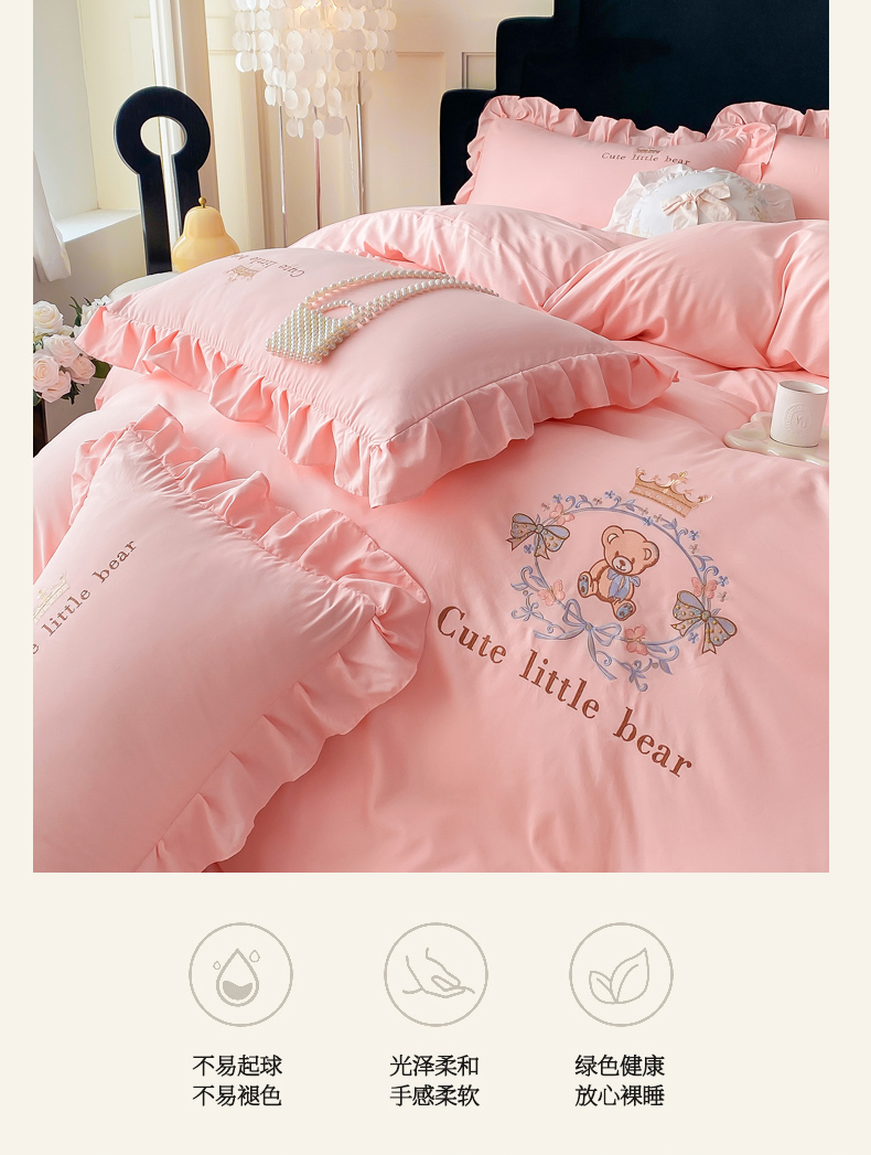 (总)帝菲妮 2025新款法式韩版高克重超柔水洗棉针织棉糯小棉刺绣四件套,熊宝-宾利兰,熊宝-奶白灰,熊宝-奶白卡其,熊宝-浅紫,熊宝-水绿,熊宝-珍珠粉