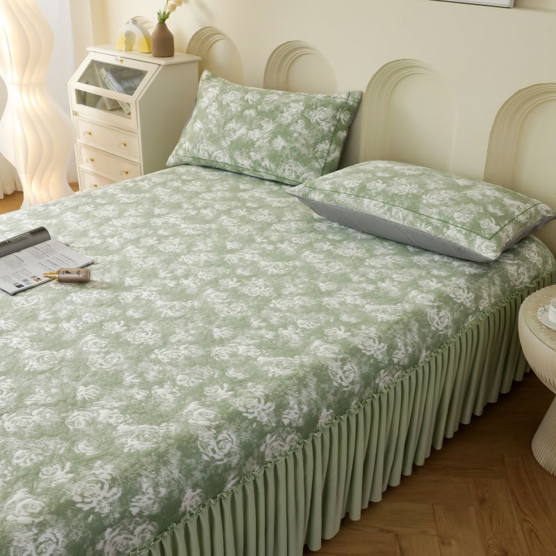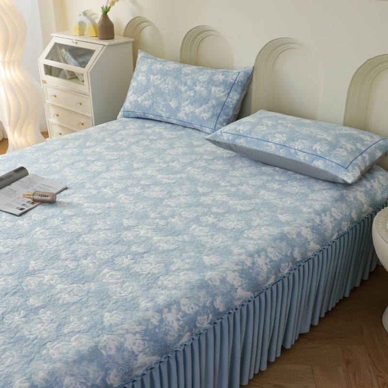 2025新款玫瑰亲肤冰丝席床裙 蓝色