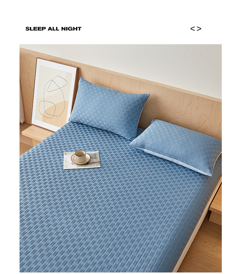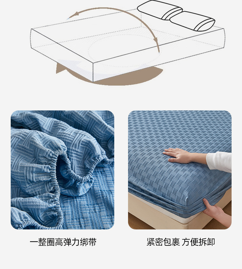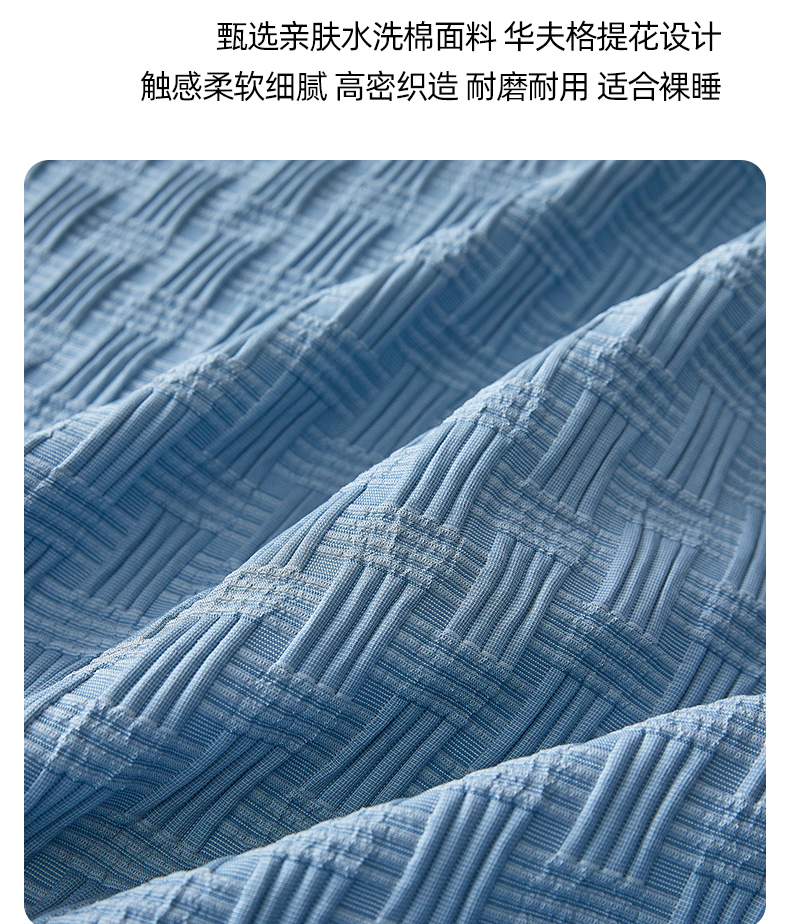 • 91家纺网 家纺一手货源 找家纺 梦镜2025新款A类亲肤棉华夫格棋盘格防水床笠 华夫格-湖蓝
