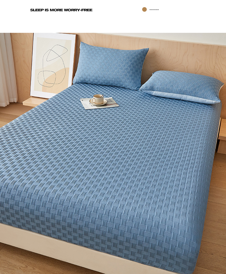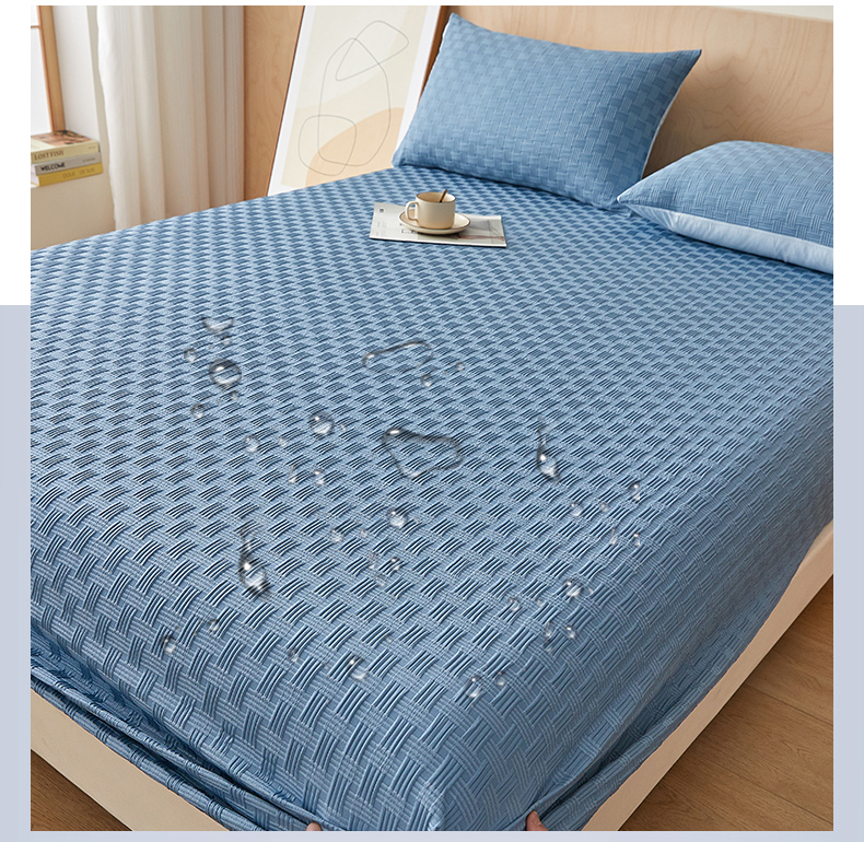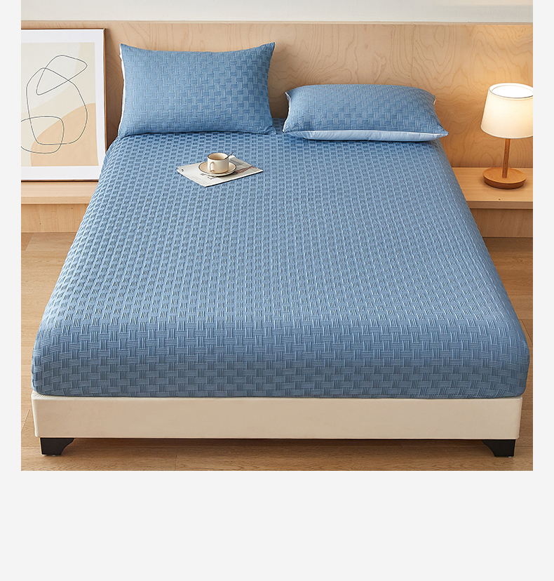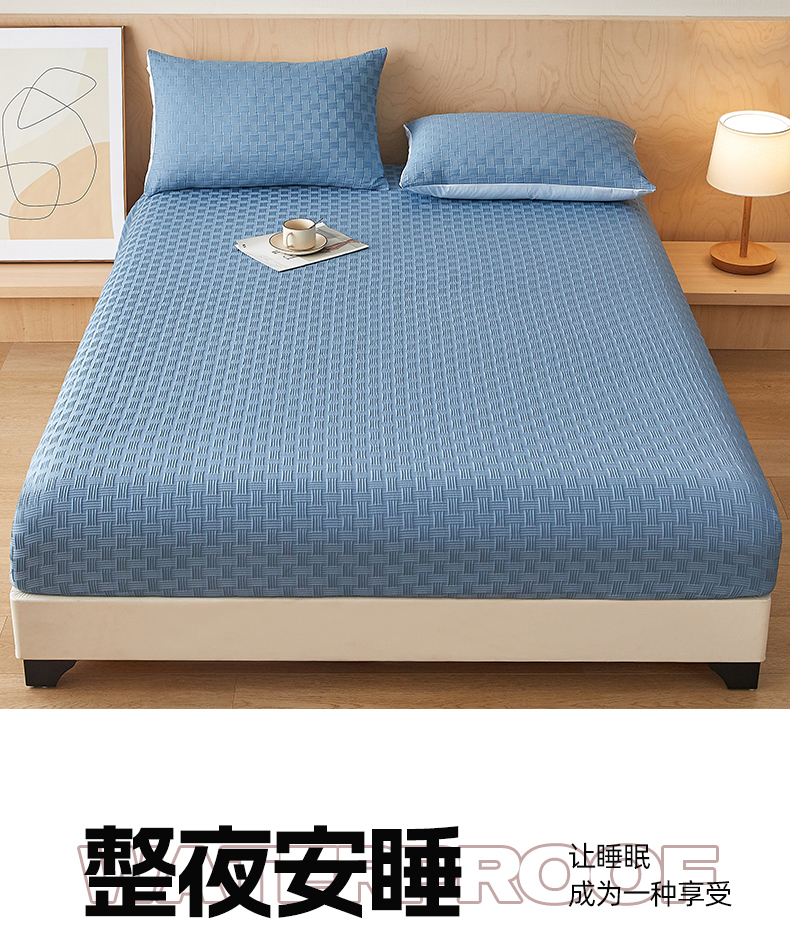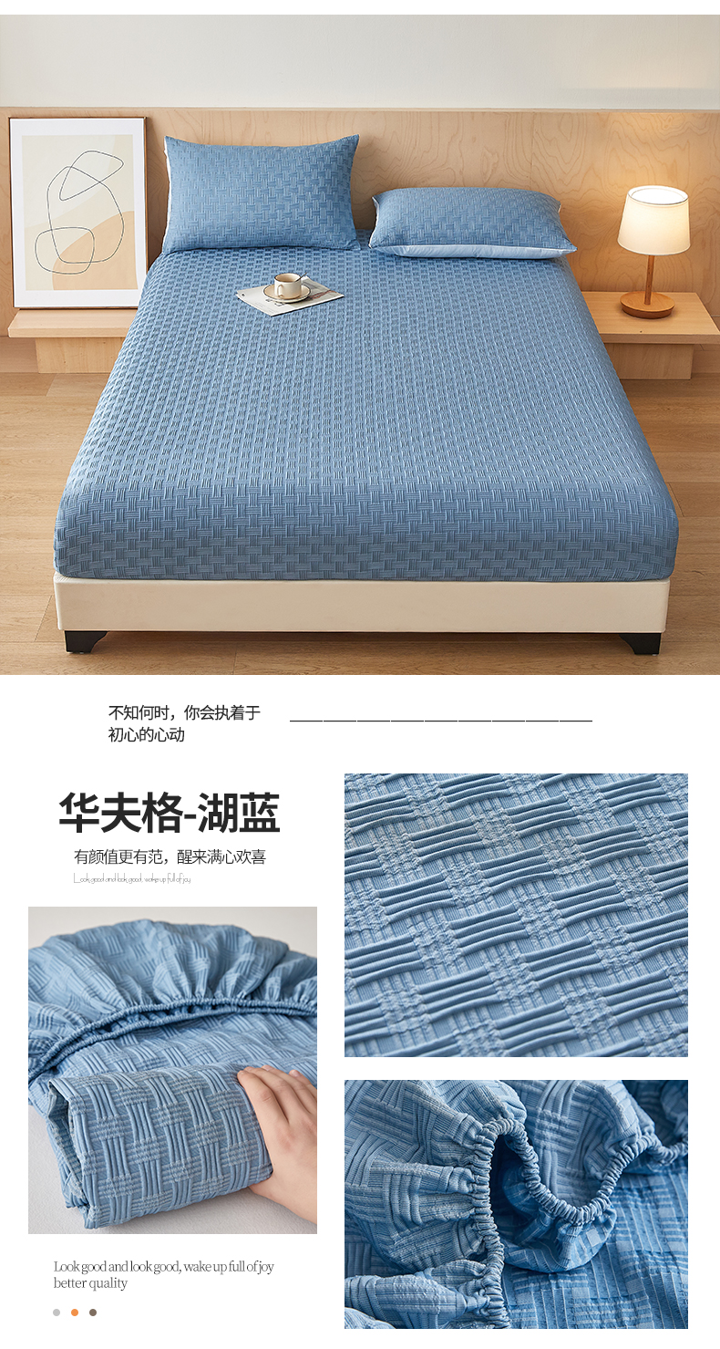 梦镜2025新款A类亲肤棉华夫格棋盘格防水床笠 华夫格-湖蓝