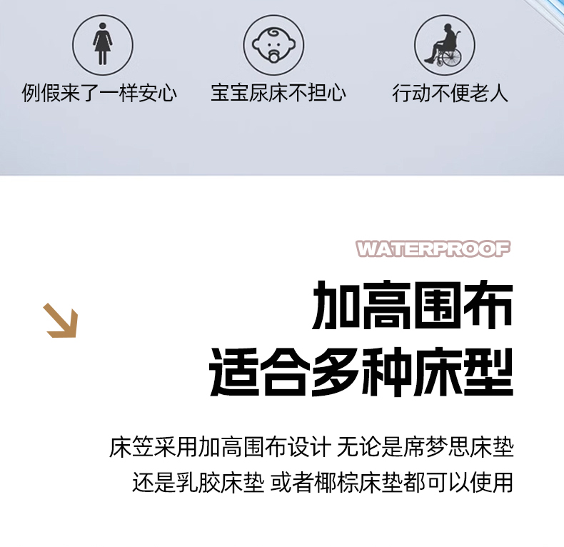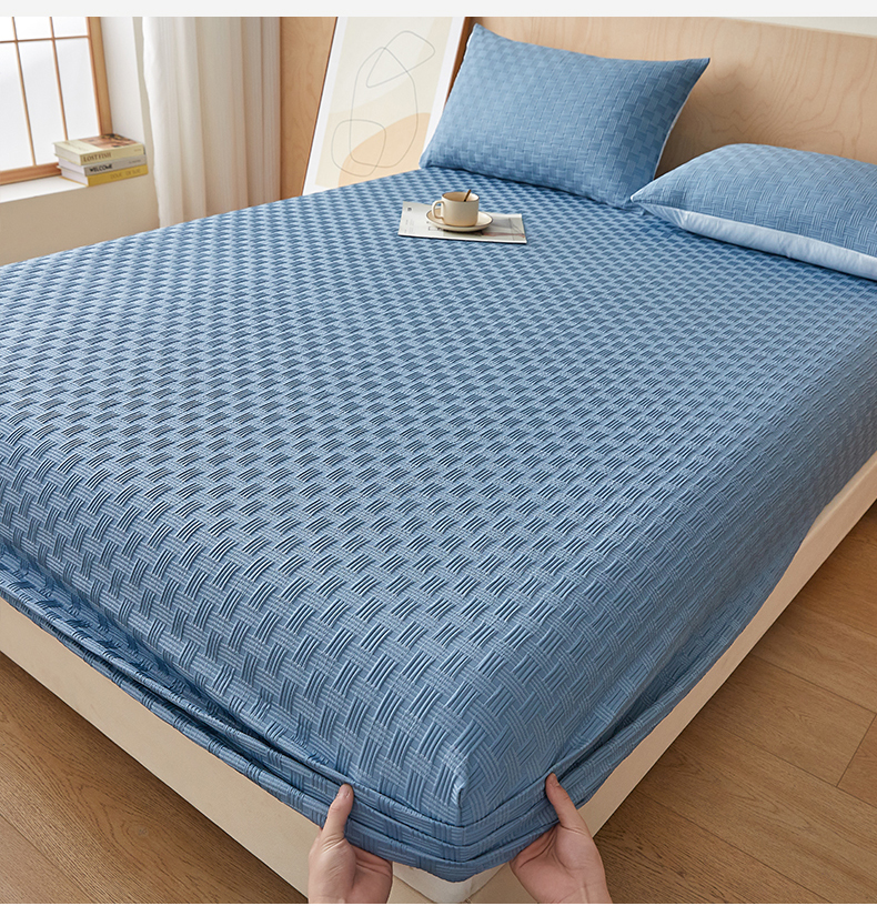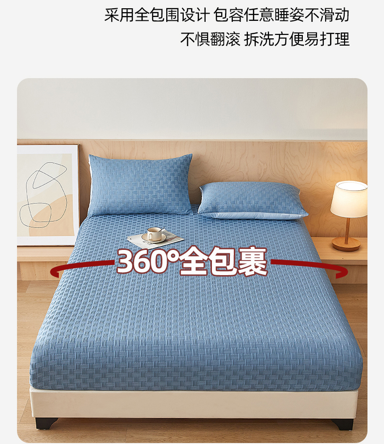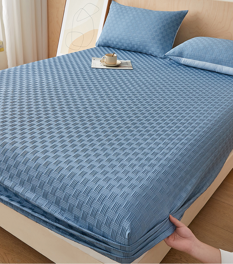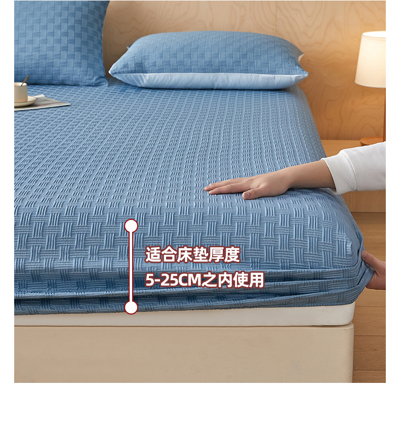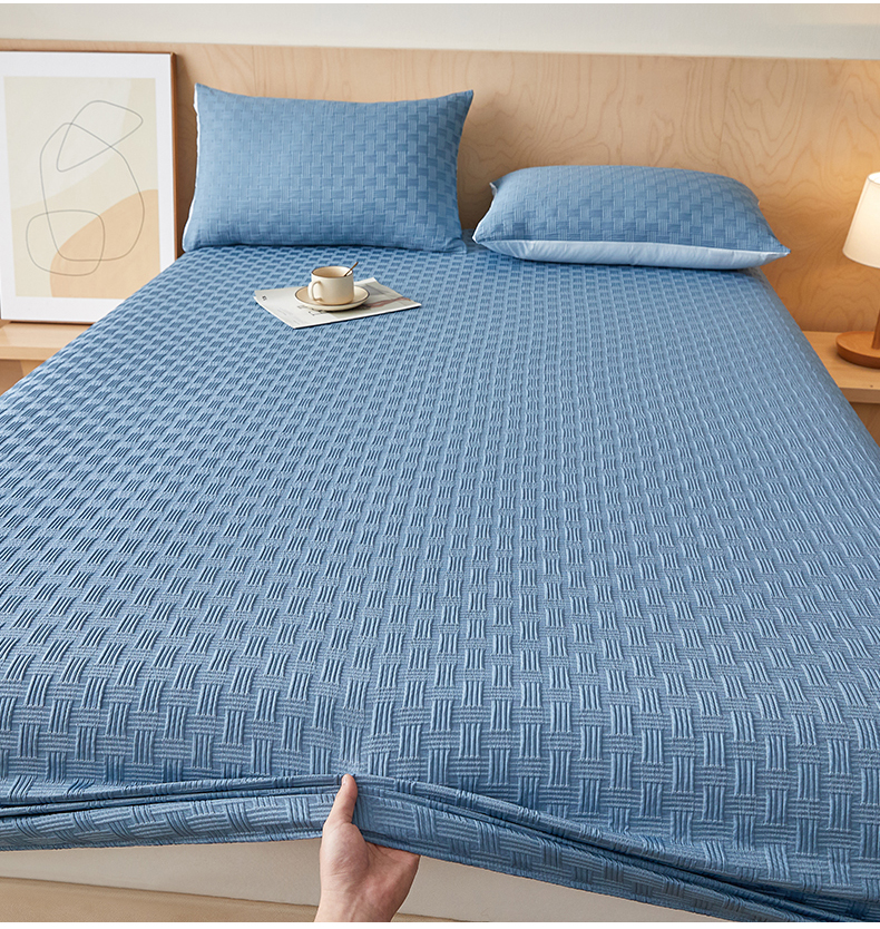 梦镜2025新款A类亲肤棉华夫格棋盘格防水床笠 华夫格-湖蓝