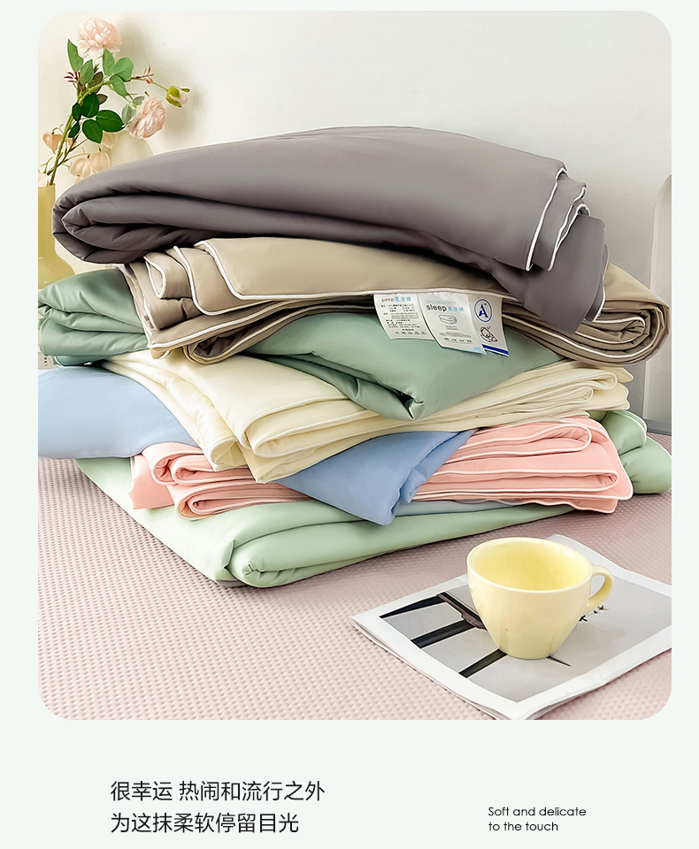 • 91家纺网 家纺一手货源 找家纺 雯豆家纺 2025夏季新款凉感丝夏被空调被冰丝凉感被芯纯色跑量款被子 凉感丝夏被-卡斯特金