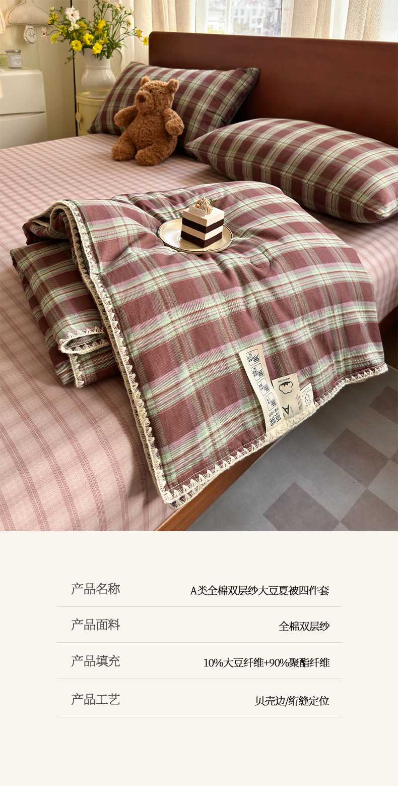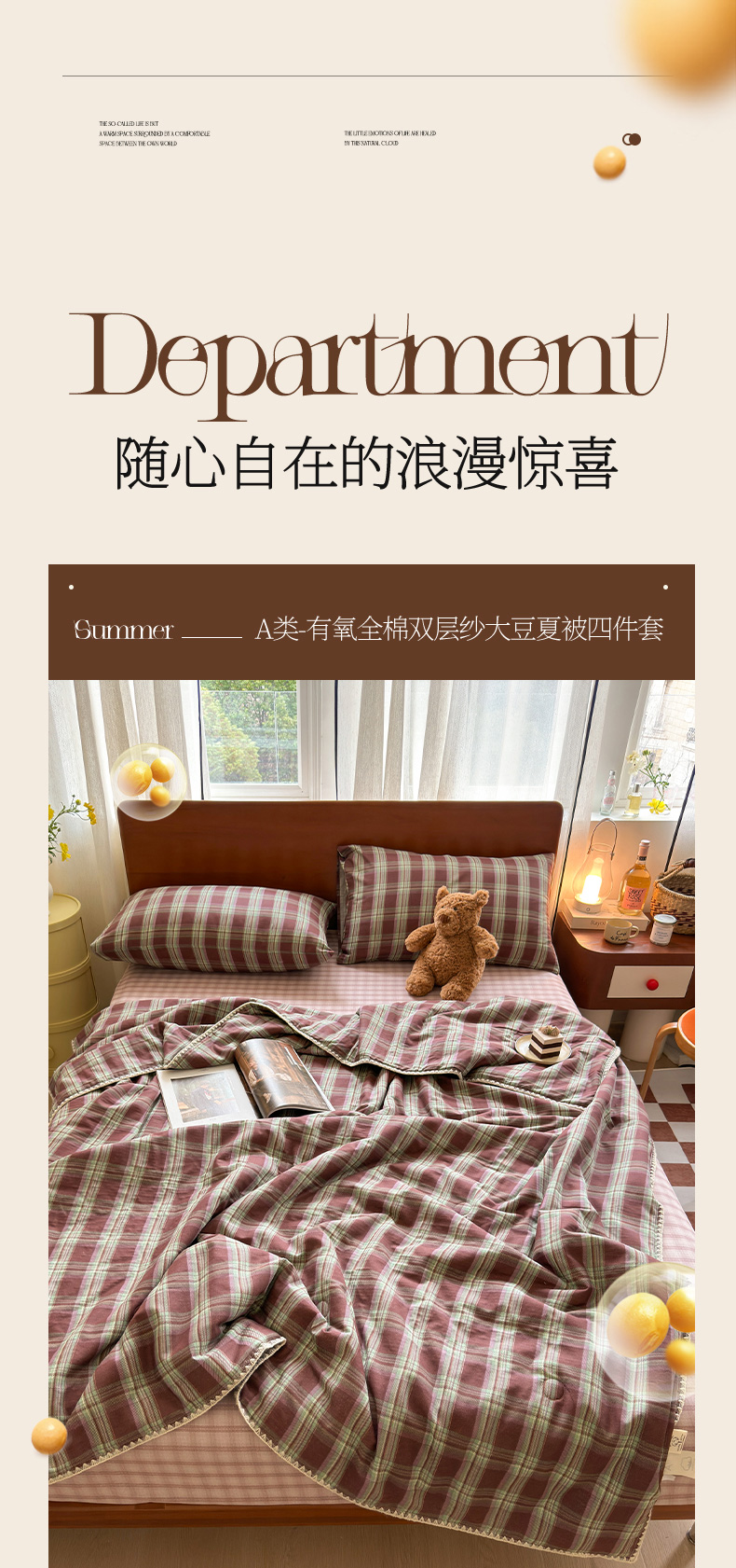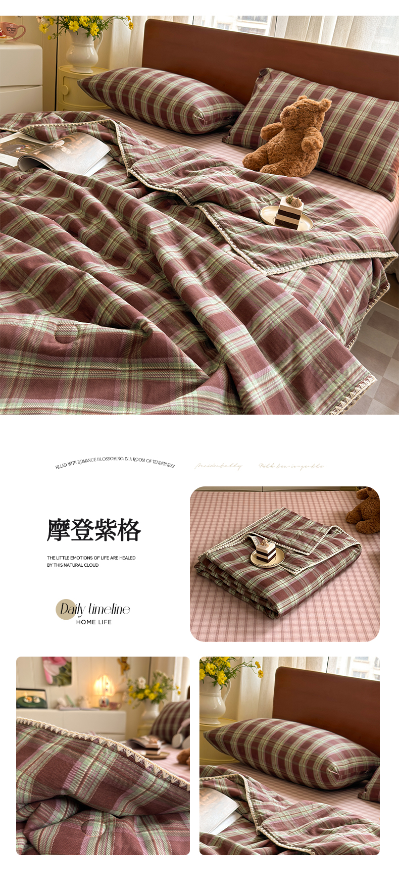 当前位置: 91家纺网 > 商品网购 > 床品套件 > 四件套 > 夏被四件套 > 一加一 2025新款A类母婴级有氧全棉双层纱大豆纯棉夏凉被空调被四件套 摩登紫格