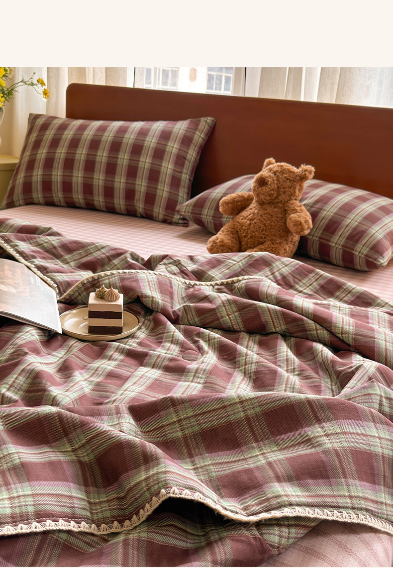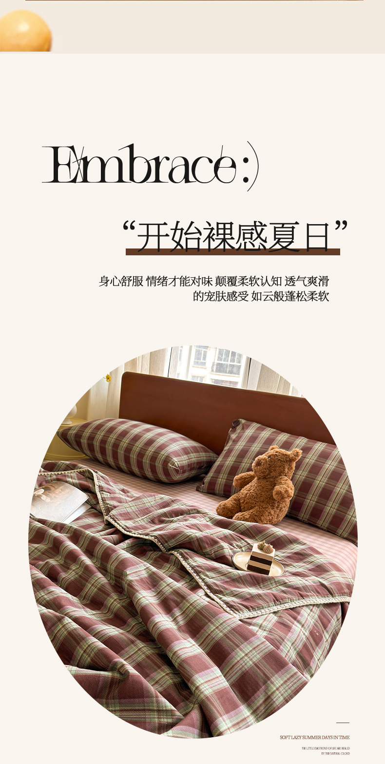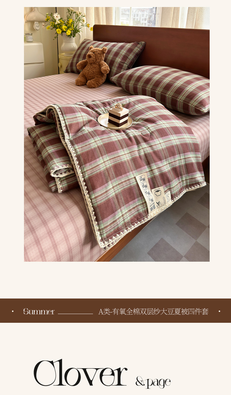 当前位置: 91家纺网 > 商品网购 > 床品套件 > 四件套 > 夏被四件套 > 一加一 2025新款A类母婴级有氧全棉双层纱大豆纯棉夏凉被空调被四件套 摩登紫格