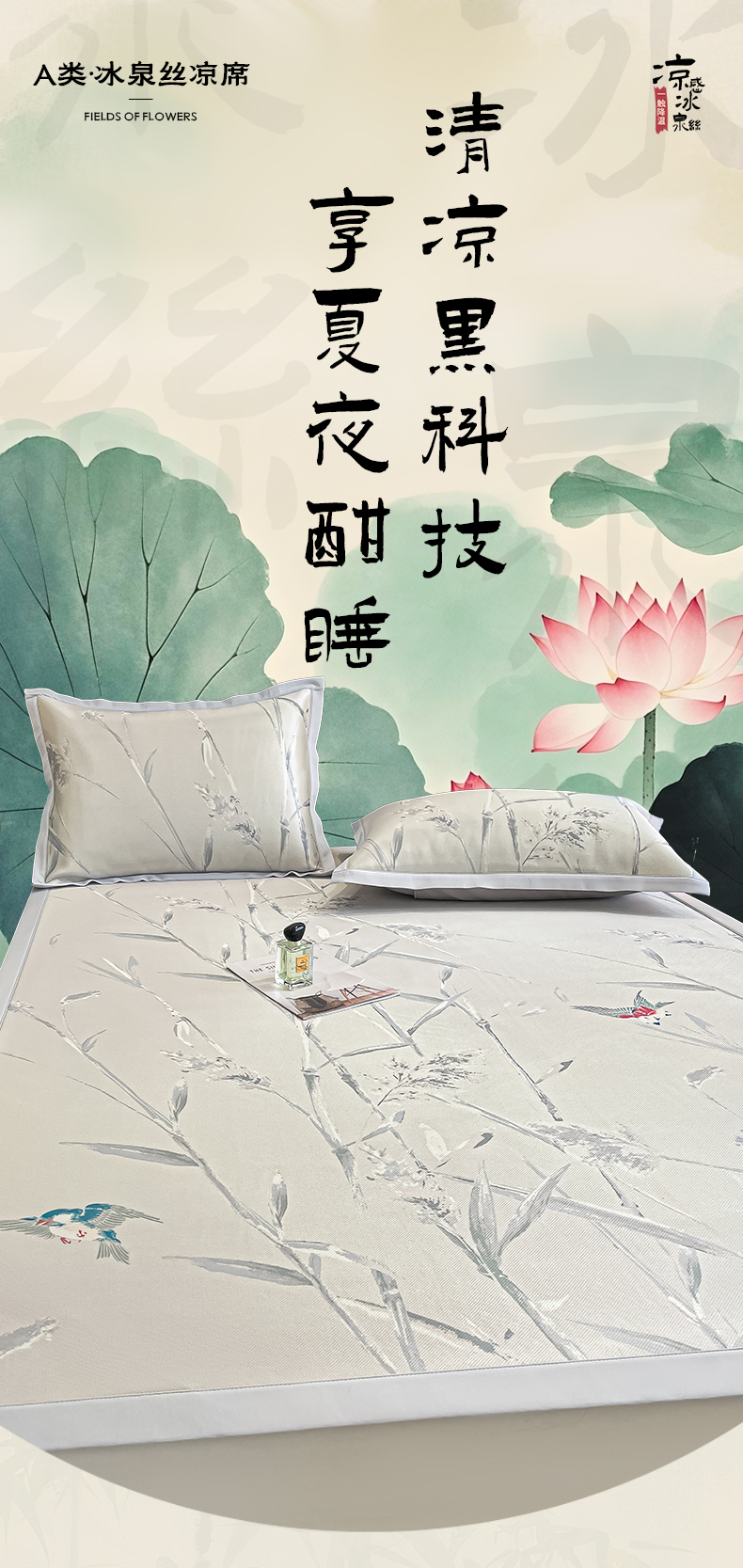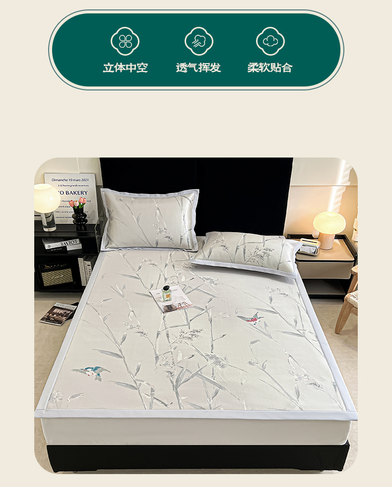 倾慕家纺 2025新款冰泉丝水墨风印花包边席子凉席 墨韵