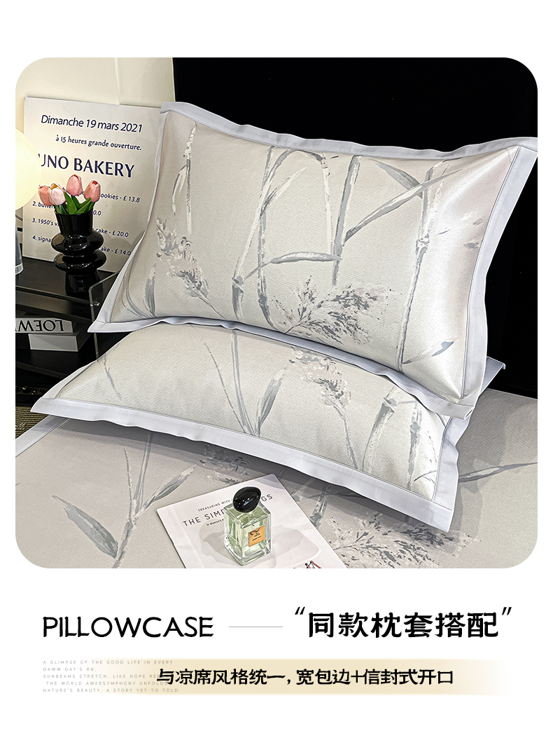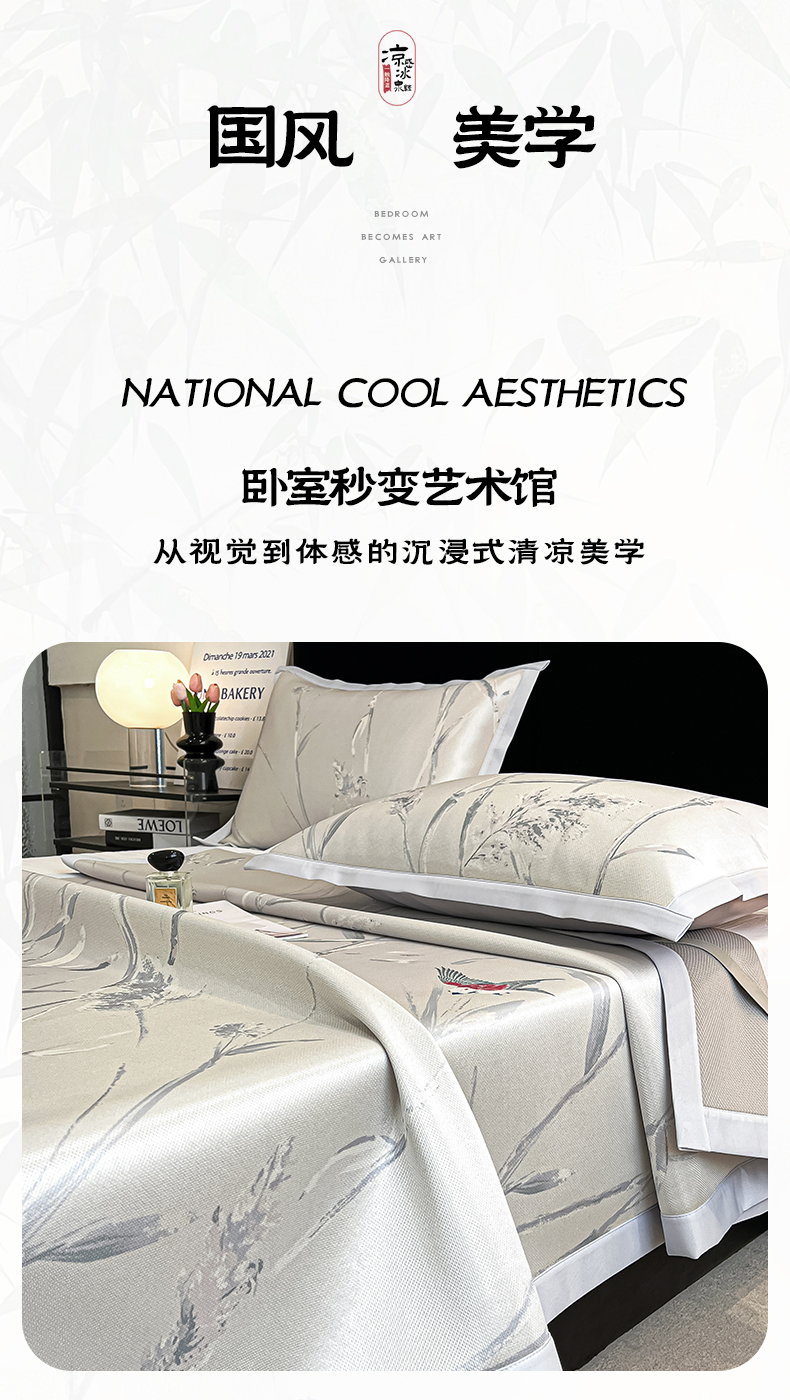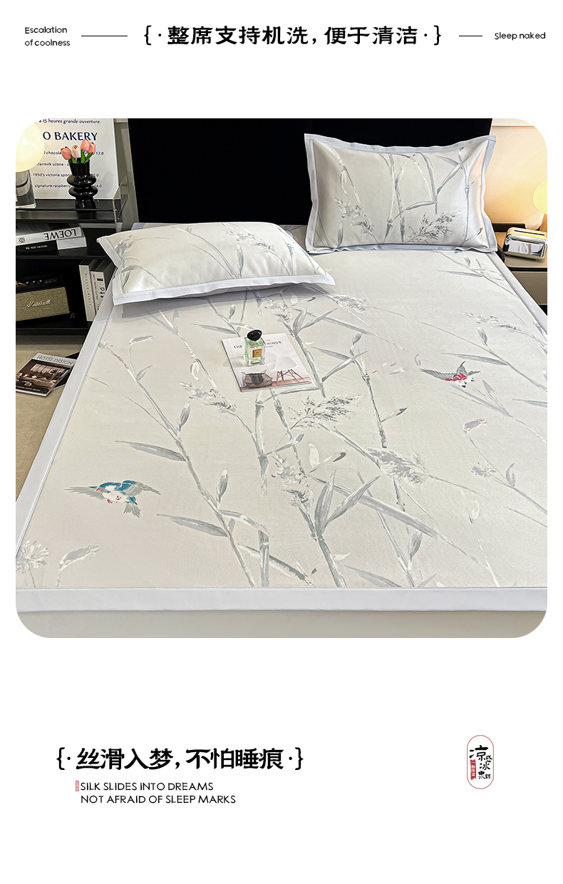 商品名称:倾慕家纺 2025新款冰泉丝水墨风印花包边席子凉席 墨韵