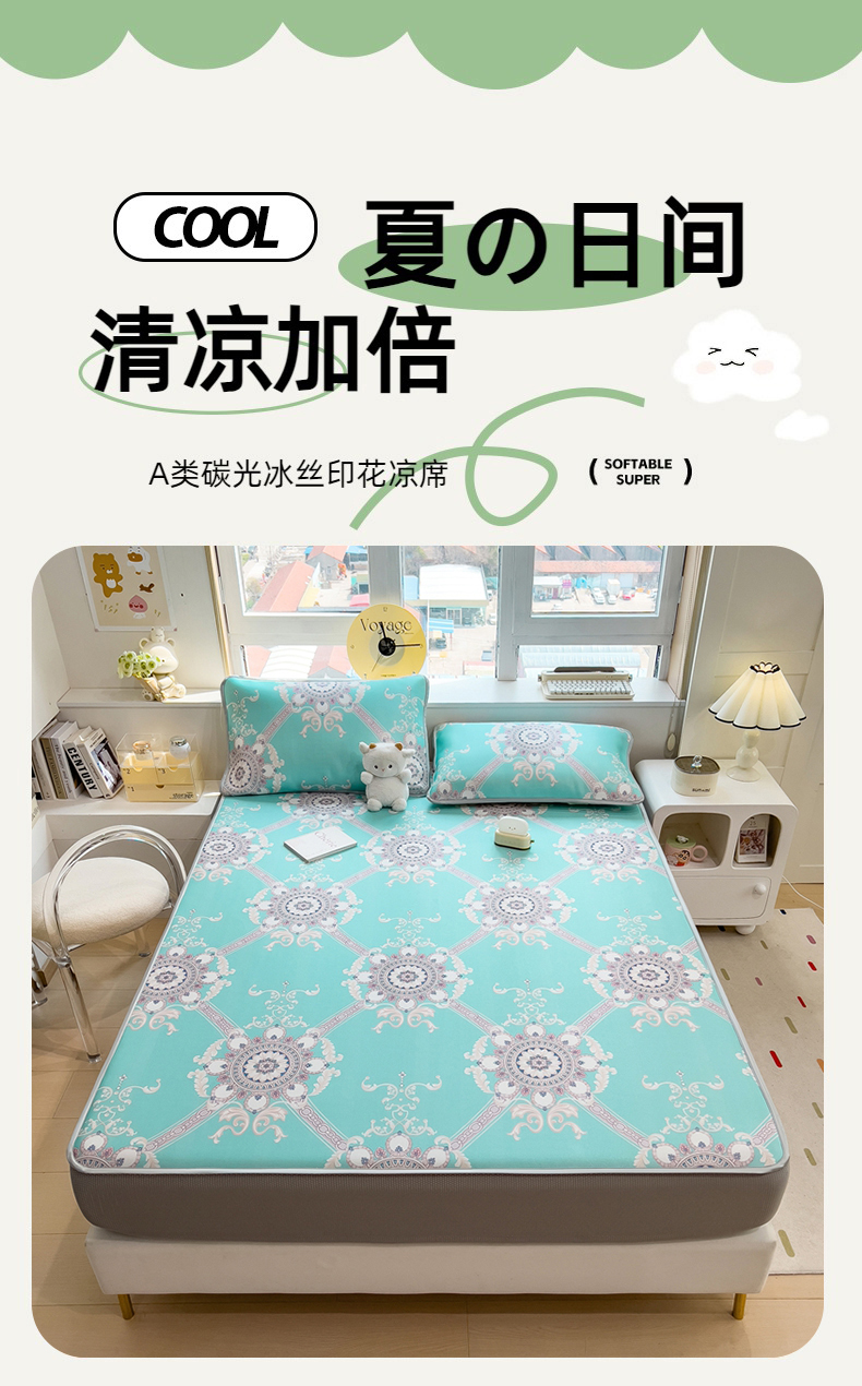 商品名称:(总)斯尔顿 2025新款炭光冰丝凉席-床笠款