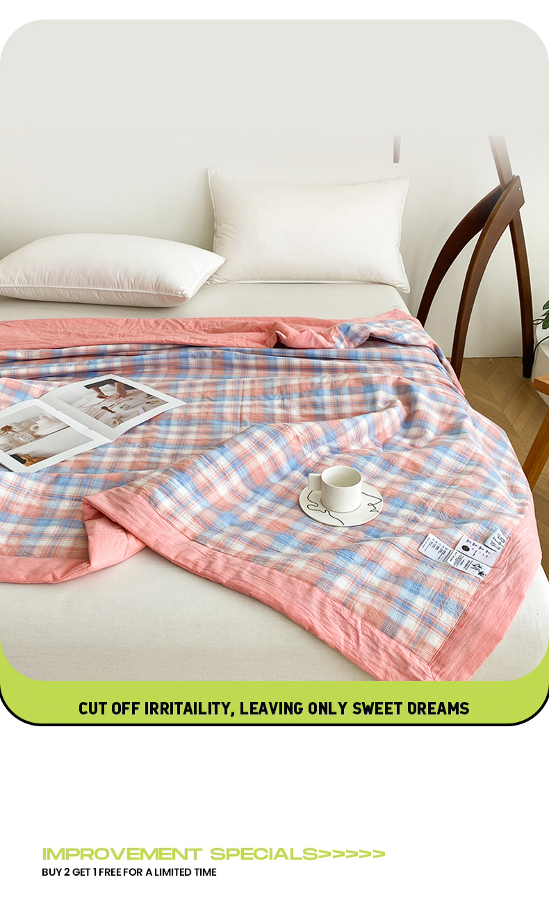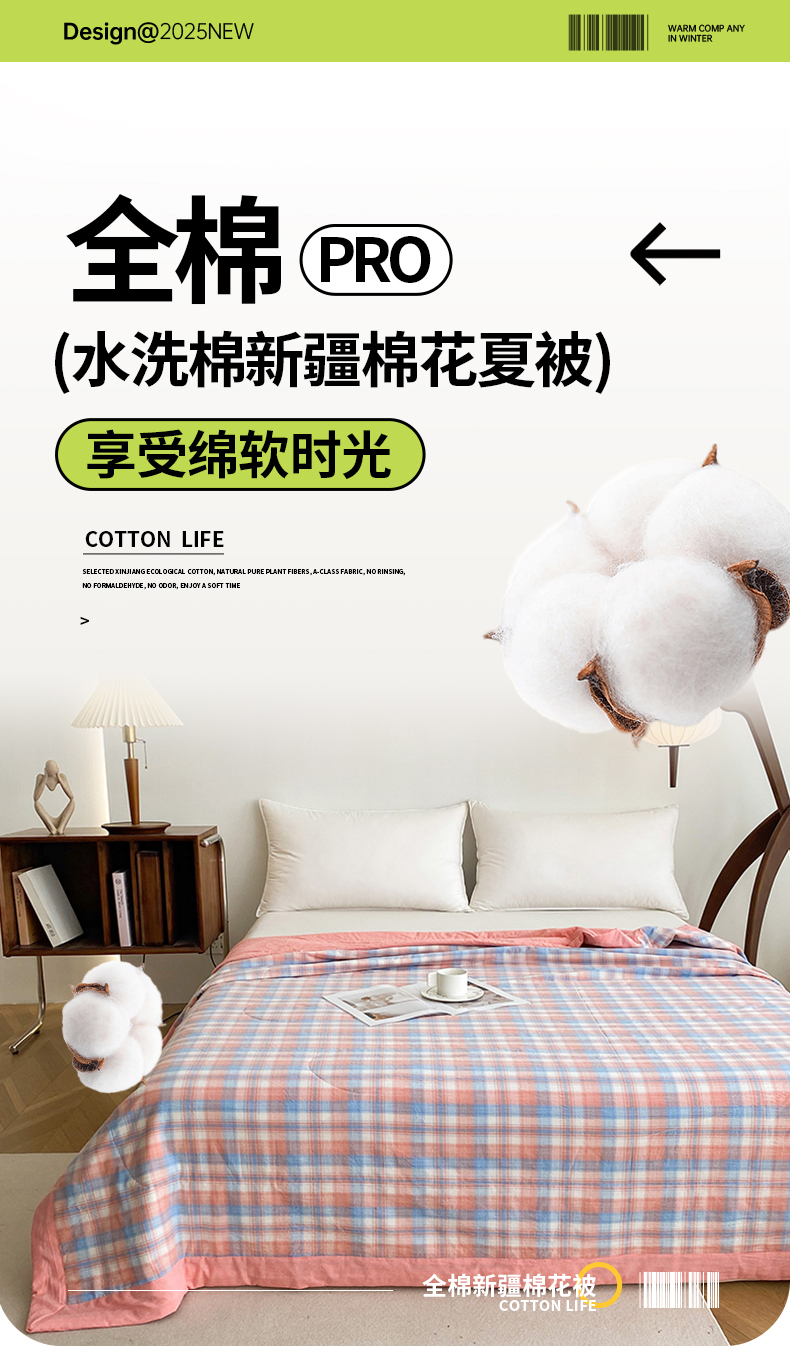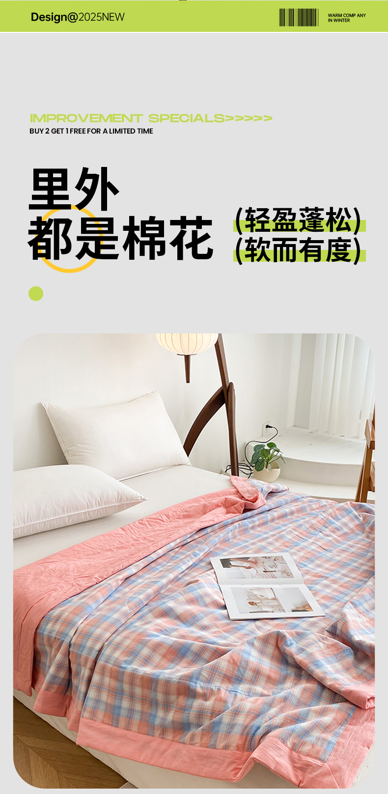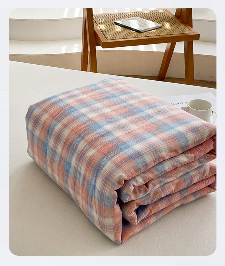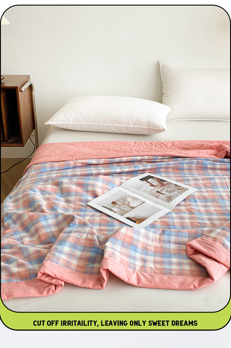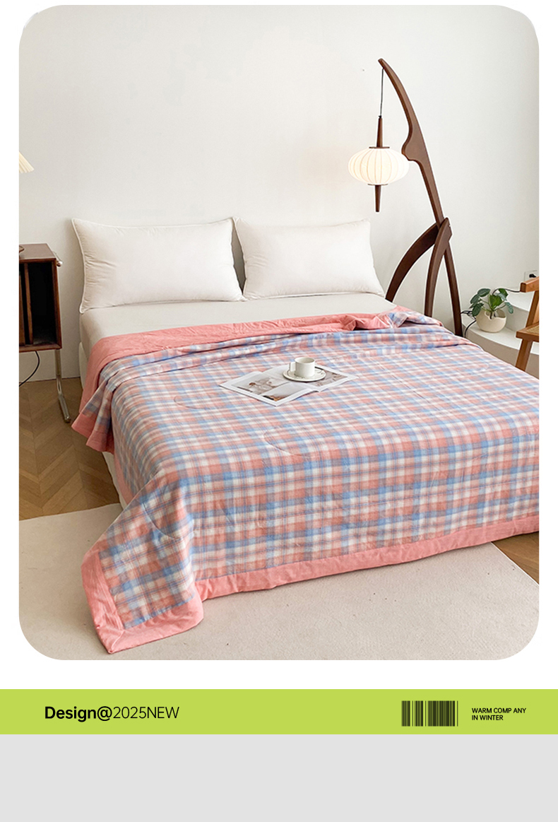 青螺家纺 2025全棉水洗棉格子双面色织新疆棉花被AB版夏凉空调被 星空粉
