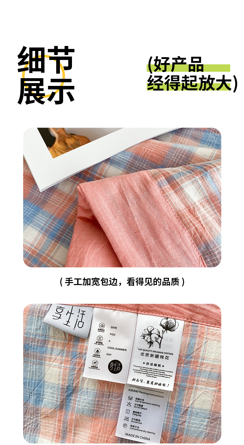 (总)青螺2024全棉水洗棉双面色织100%新疆棉花夏被四件套,宝莉小格,芳华兰,格森 橘,格森 兰,凯瑟琳 粉,洛卡 灰,沐夏,乔治 兰,星空粉,星空米