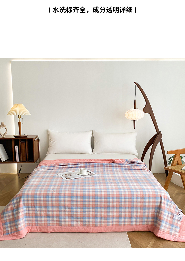 商品名称:青螺家纺 2025全棉水洗棉格子双面色织新疆棉花被AB版夏凉空调被 星空粉