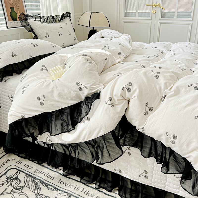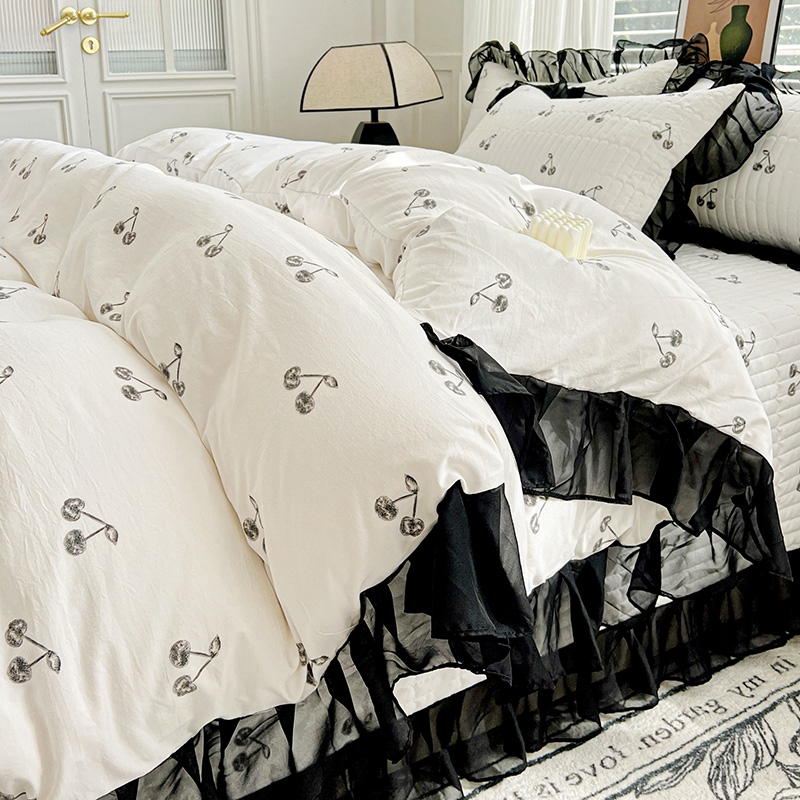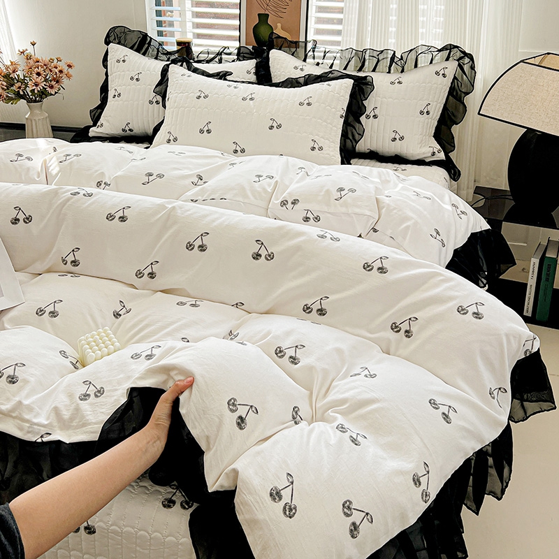 当前位置: 91家纺网 > 商品网购 > 床品套件 > 四件套 > 其它四件套 > 艾橙家纺2025新款法式赫本风水洗棉印花雪纺花边四件套 美味樱桃