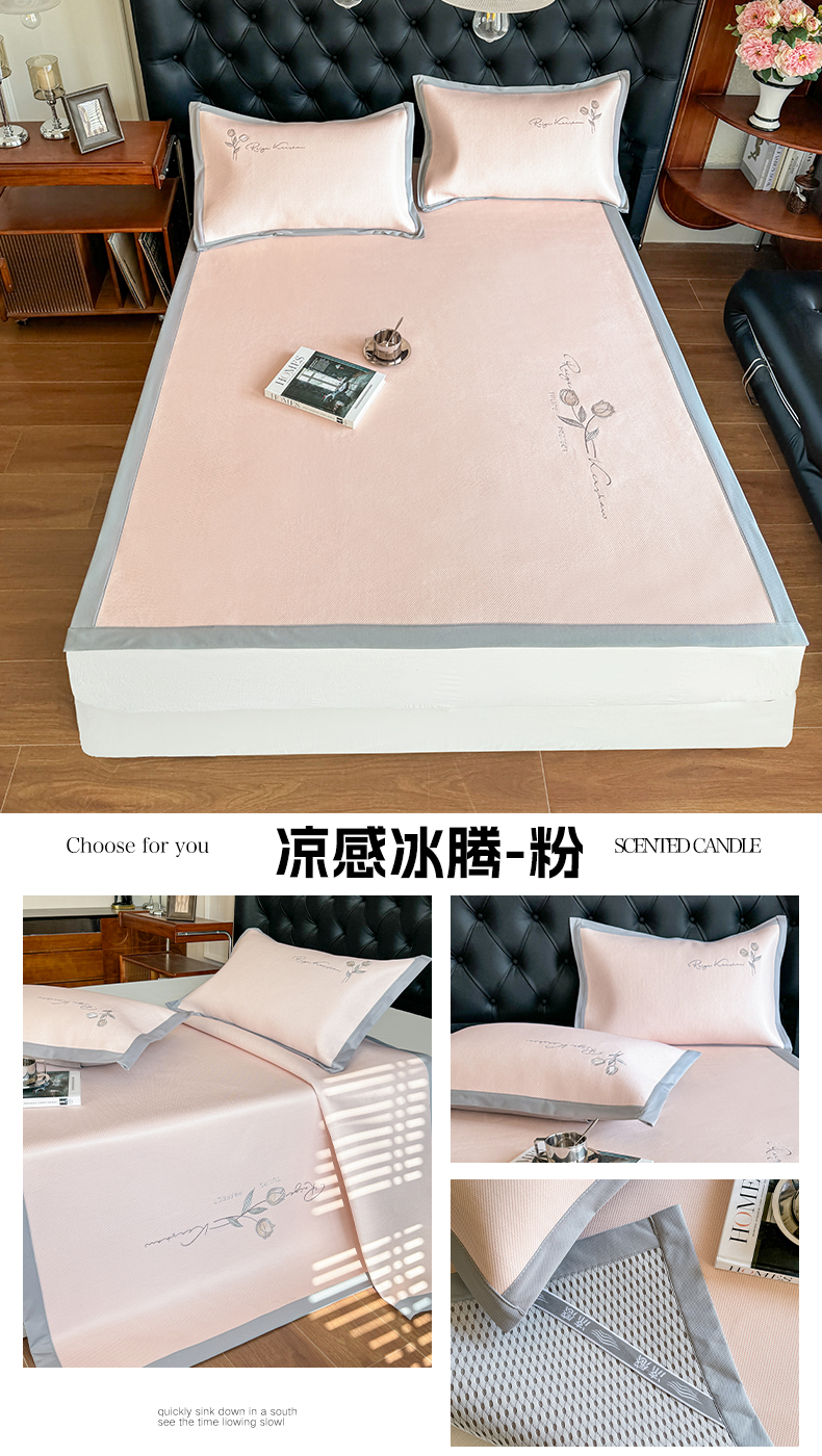 商品名称:格真 2025新款A类中分子PE瞬间凉感刺绣冰藤席高端复合三明治加密软凉席可折叠空调席藤席 凉感冰腾-粉