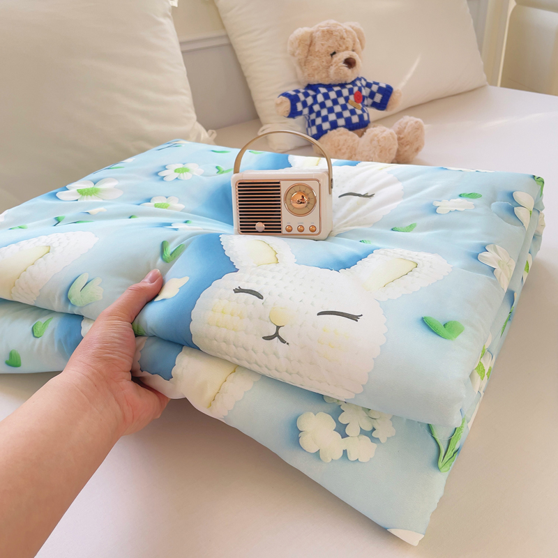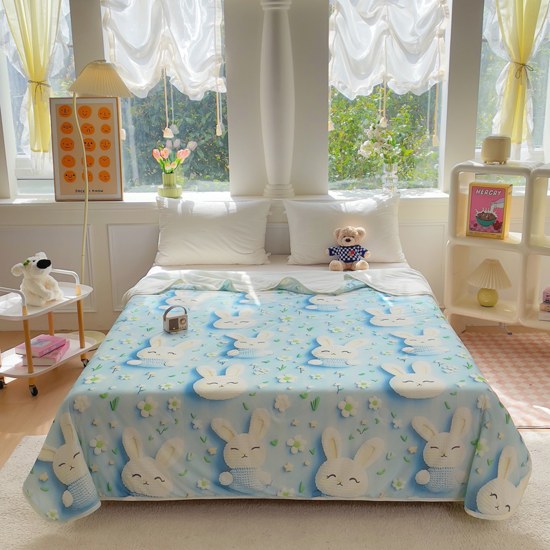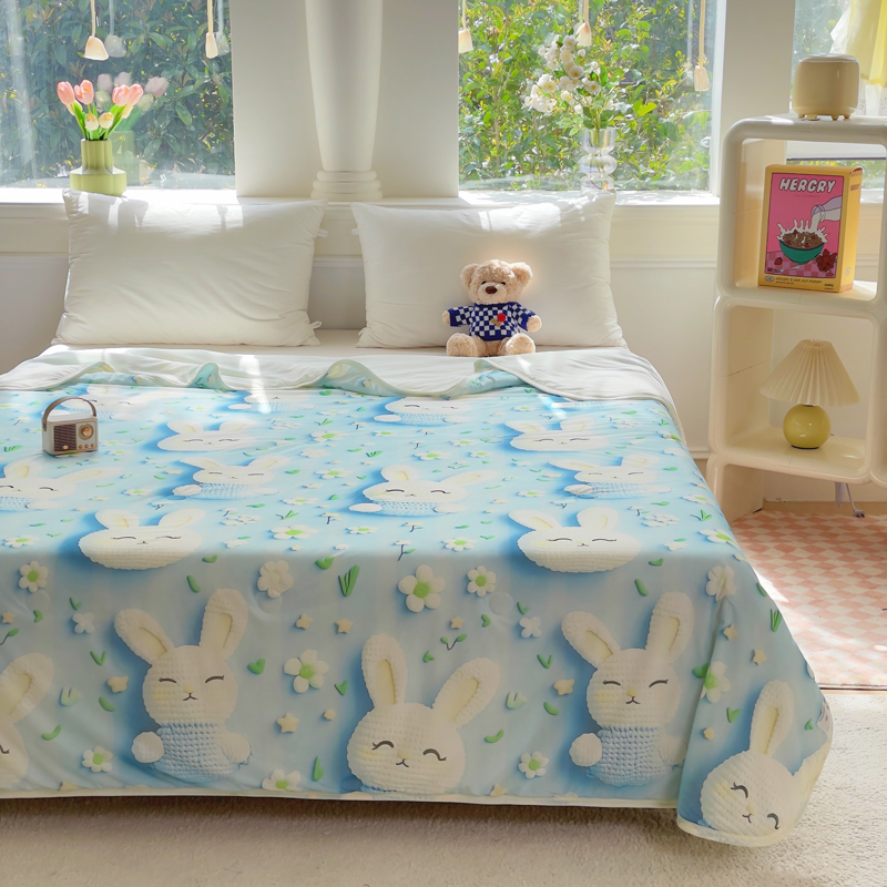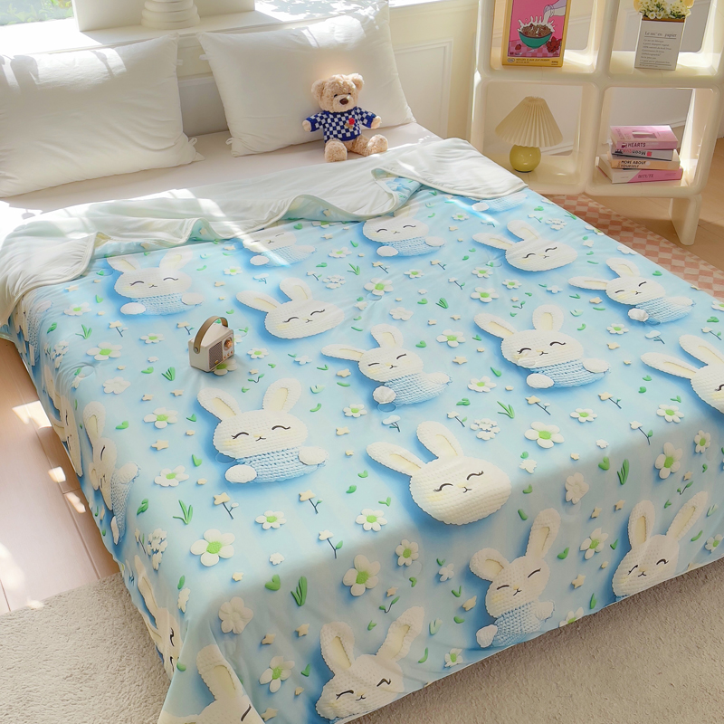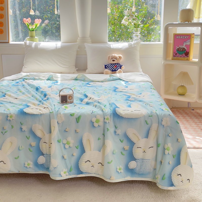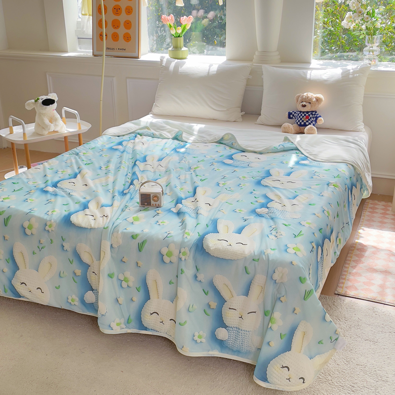2025新款凉感丝有氨数码印花夏被被子被芯 蓝色小兔