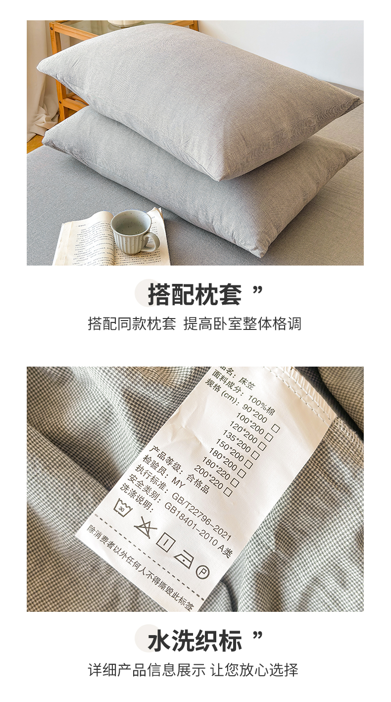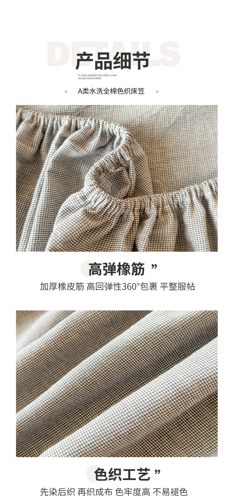 • 91家纺网 家纺一手货源 找家纺 名优家纺 2025新款全棉色织水洗棉单品系列-单床笠 千鸟格-灰