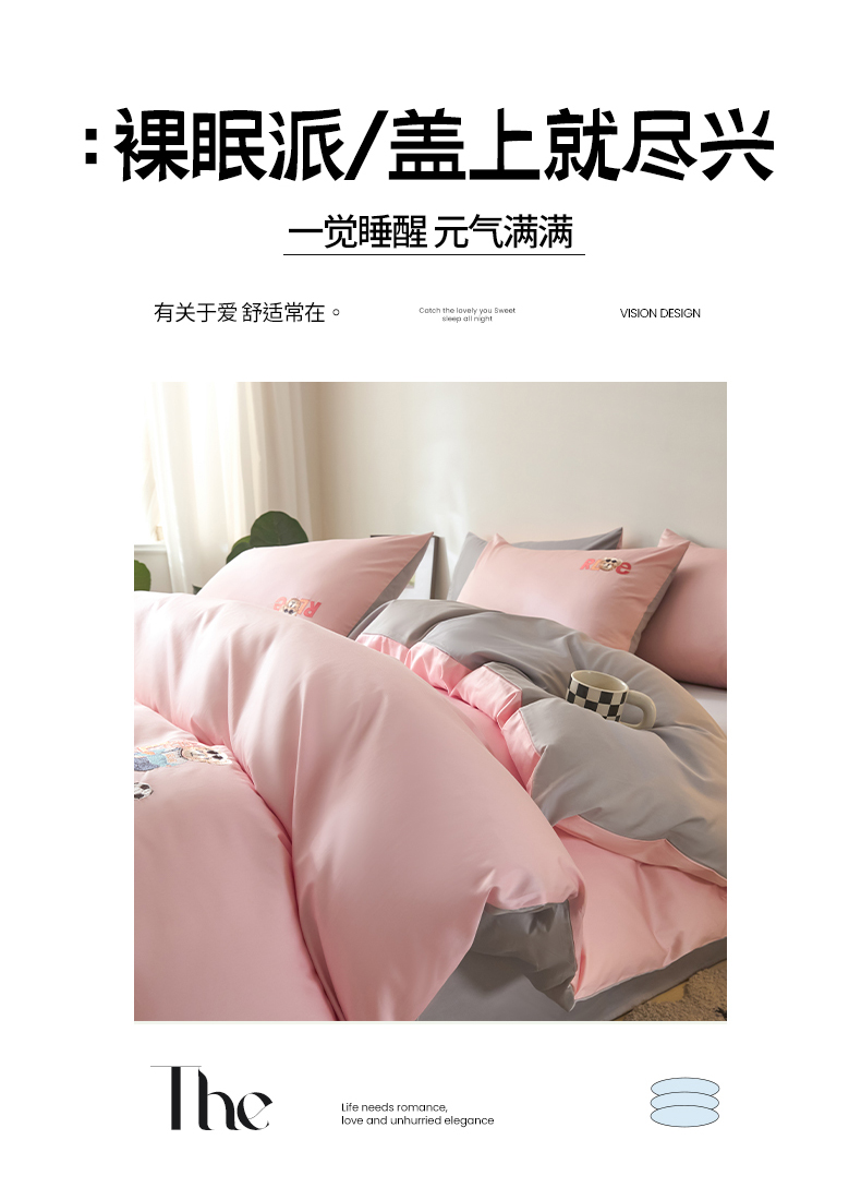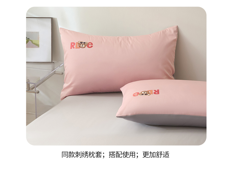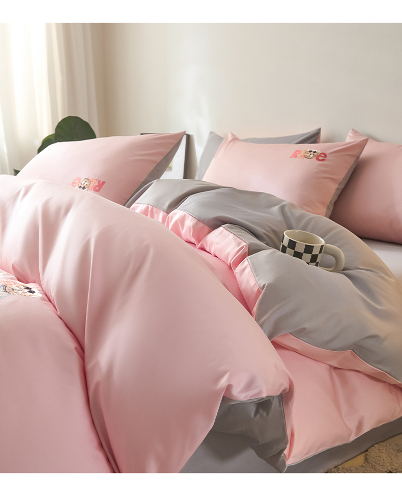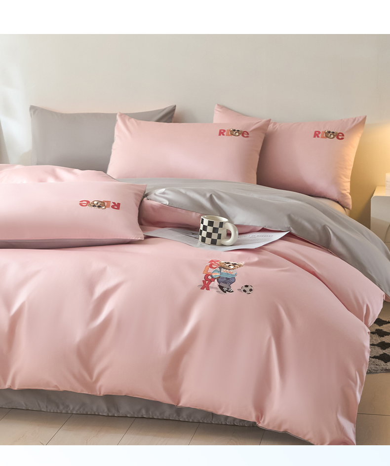 拼社家纺 2025新款全棉长绒棉四件套纯棉四件套小熊刺绣床上用品【提供买家秀】 可爱熊-粉灰