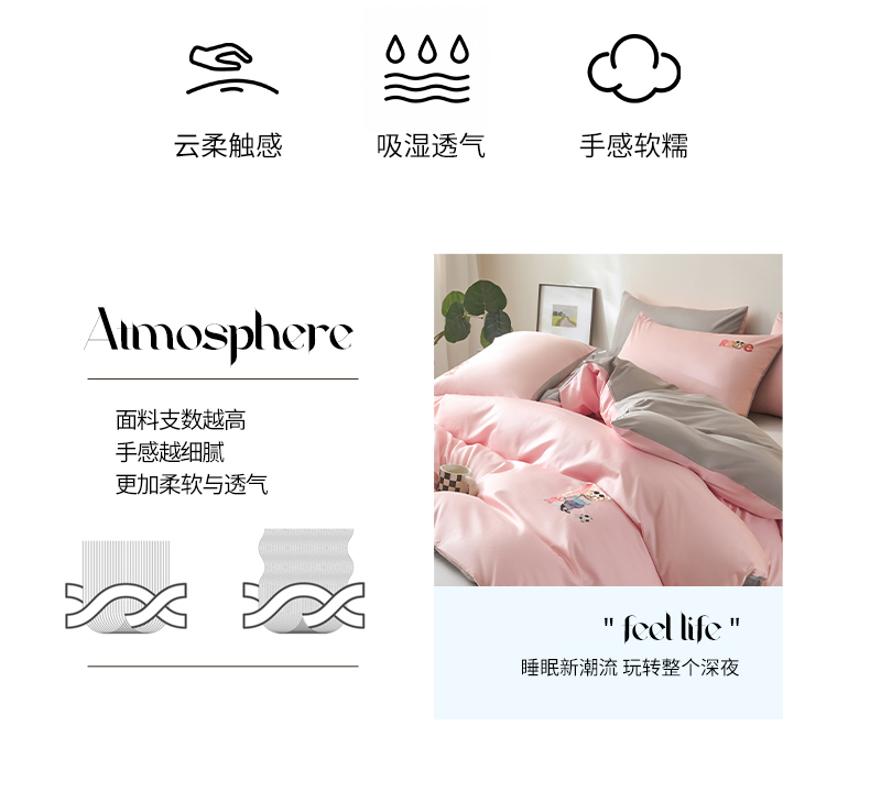(总)拼社家纺 2025新款全棉三层纱色织提花磨毛四件套-素影系列,本色-粉,本色-灰,本色-绿,本色-米咖,静谧-灰,静谧-咖,静谧-蓝,烟花-灰,烟花-咖,烟花-蓝