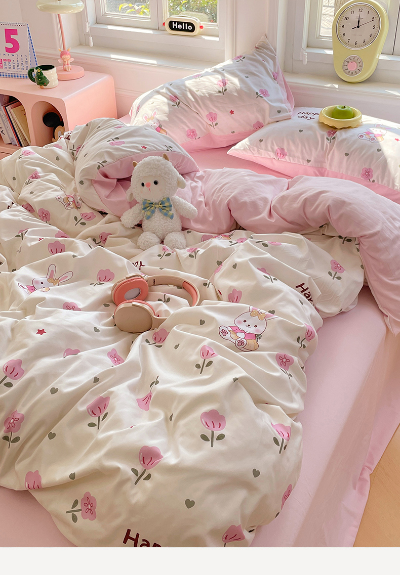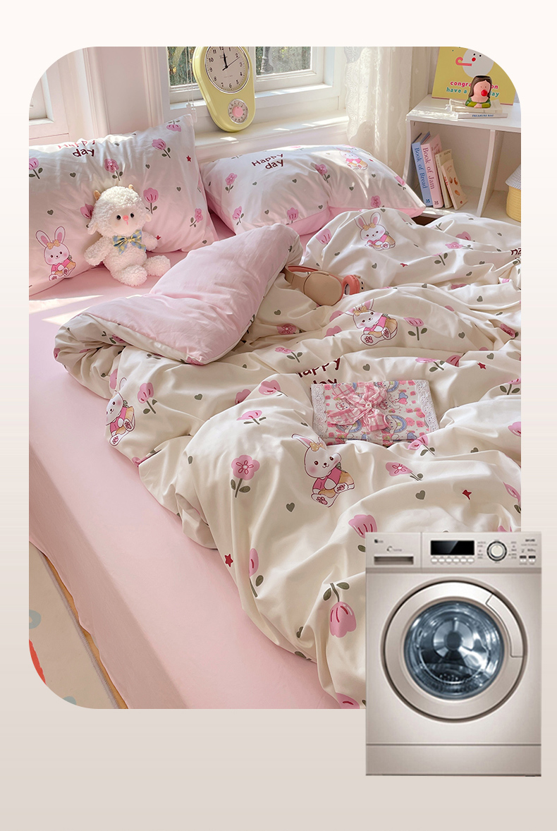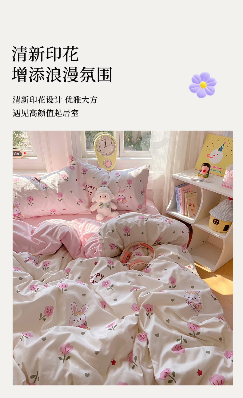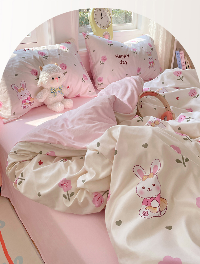 当前位置: 91家纺网 > 商品网购 > 床品套件 > 四件套 > 水洗棉四件套 > 思诺羽床笠 2025春夏新款小清新105克高克重水洗棉印花四件套 花园小兔