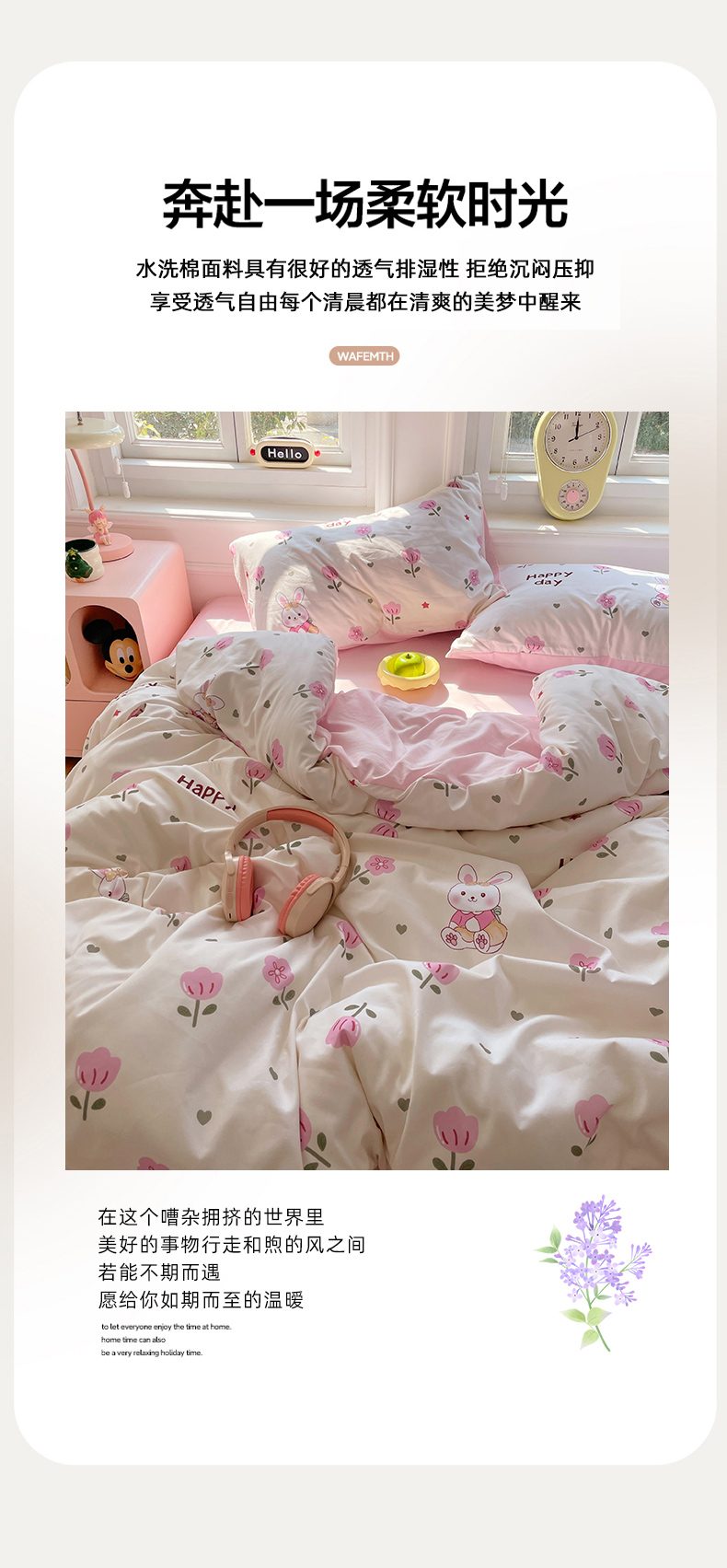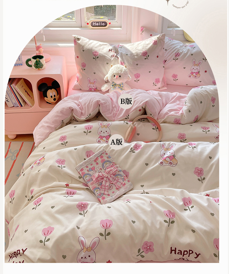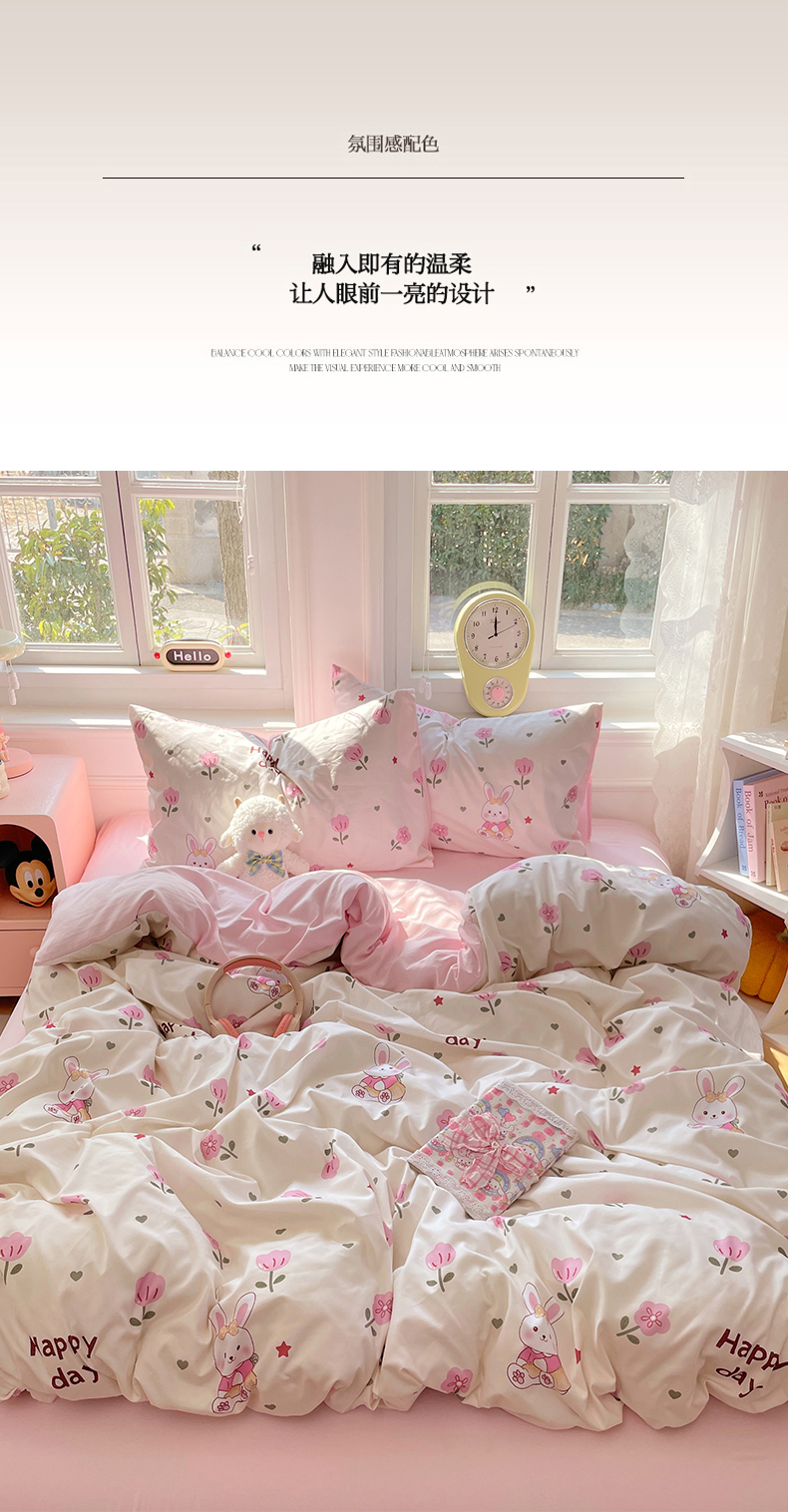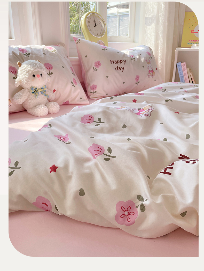 当前位置: 91家纺网 > 商品网购 > 床品套件 > 四件套 > 水洗棉四件套 > 思诺羽床笠 2025春夏新款小清新105克高克重水洗棉印花四件套 花园小兔