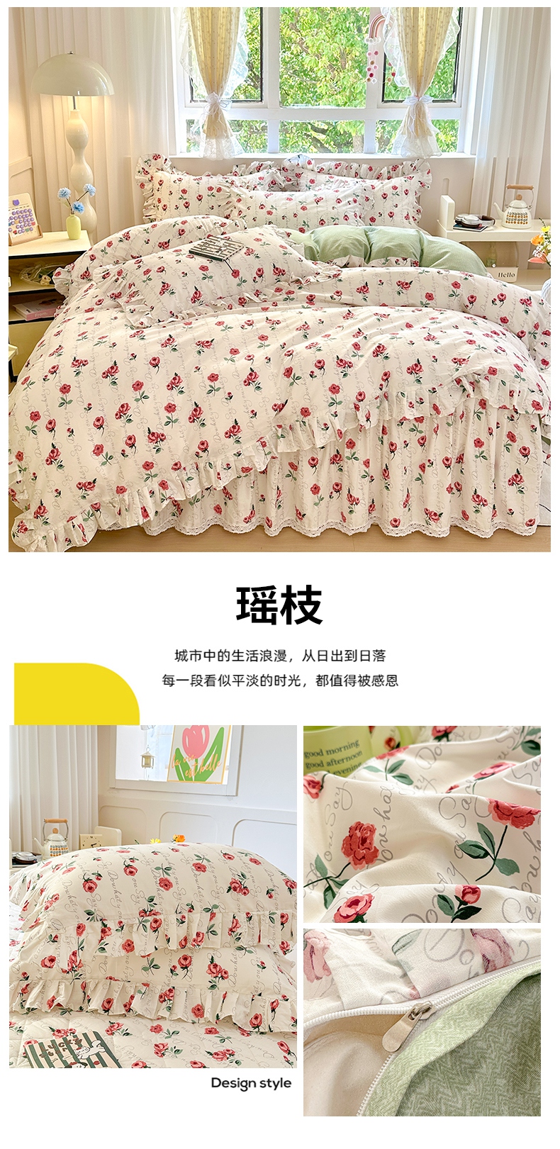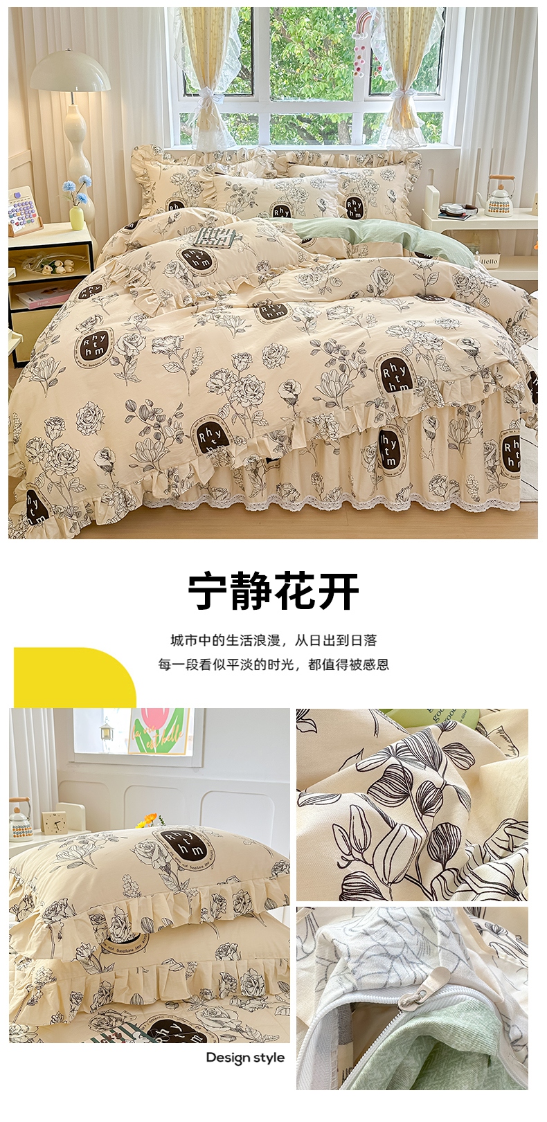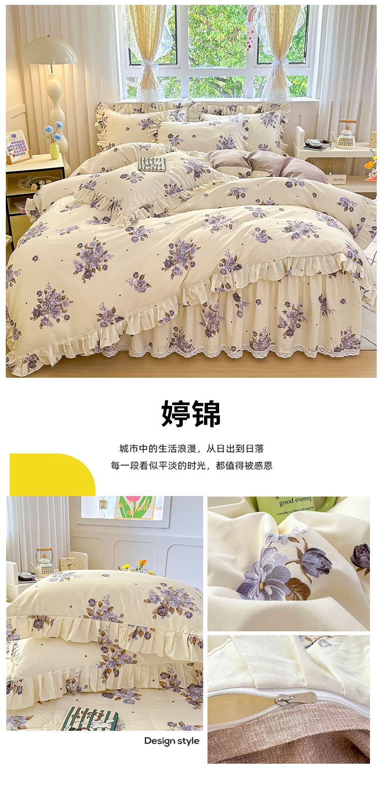 (总)忘忧草 2025新款全棉133*72纯棉小清新床裙花边四件套,妃子笑,花开满满,花里梦,卡芙卡,陌上花颜,倾城繁花 灰,倾城繁花 紫,森物语,屋顶花园,樱桃浪漫,遇见浪漫,云香
