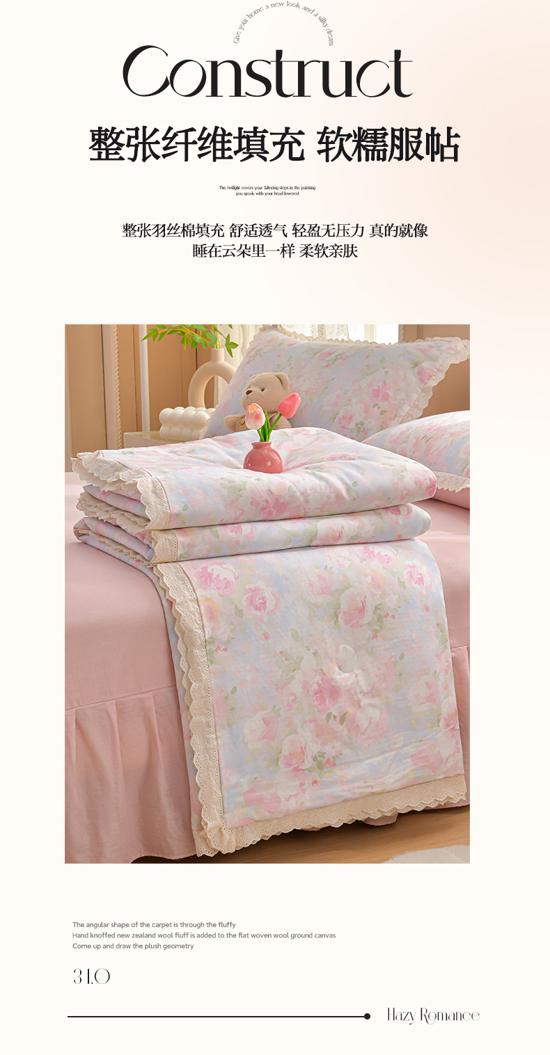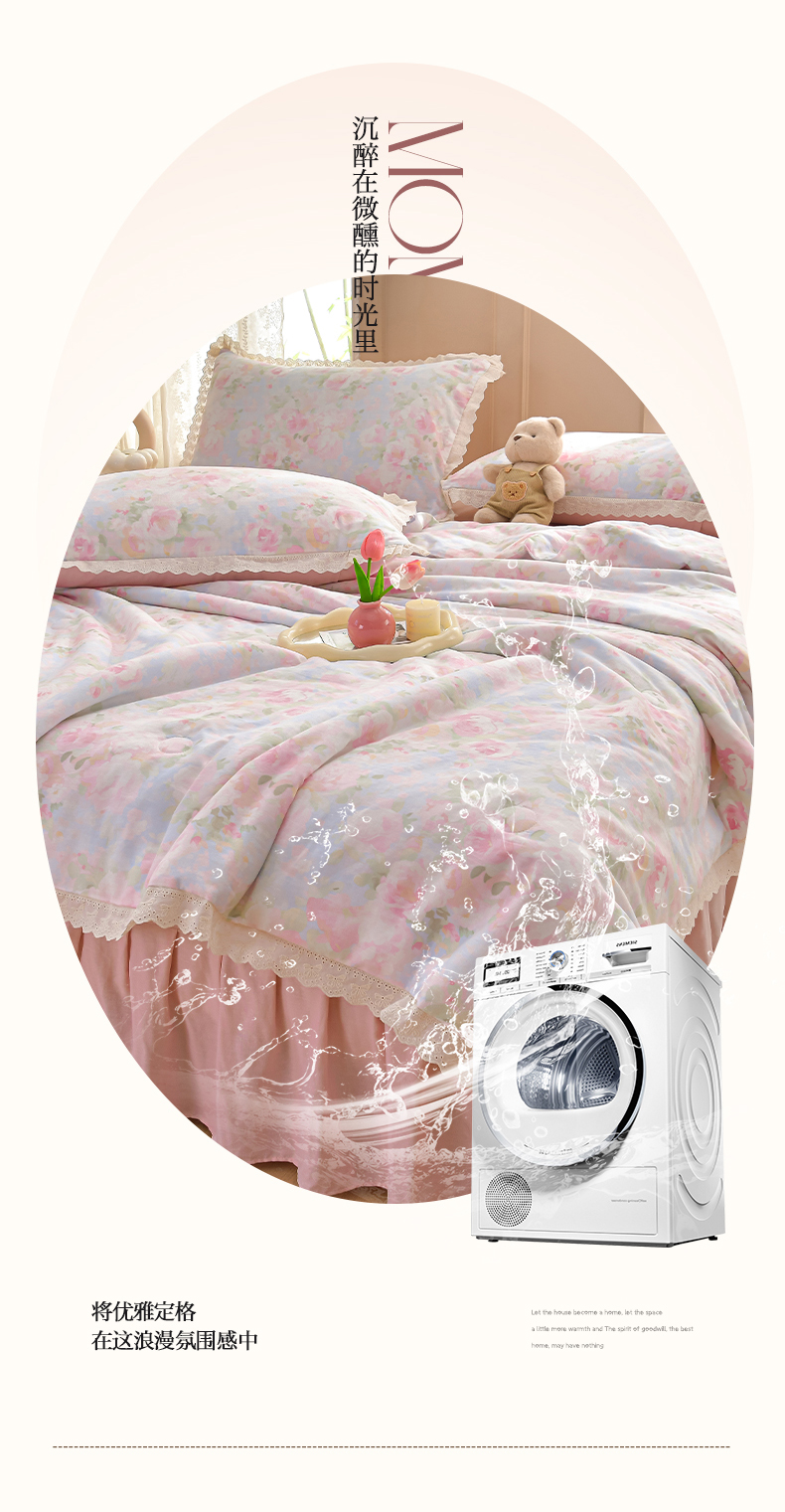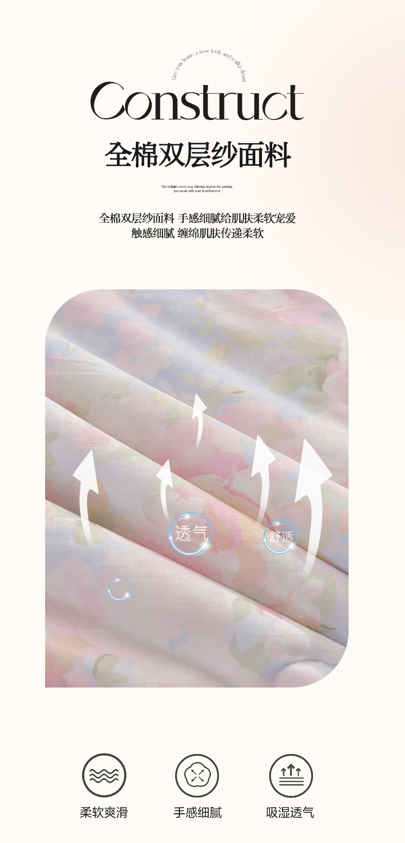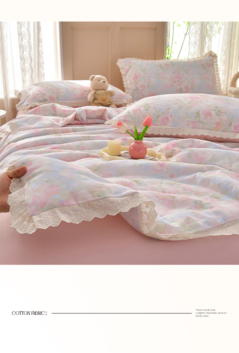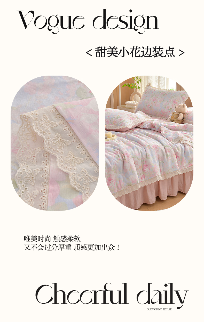 绘萱家居 2025新款100%全棉双层纱花边床裙款夏被四件套 黎明心境