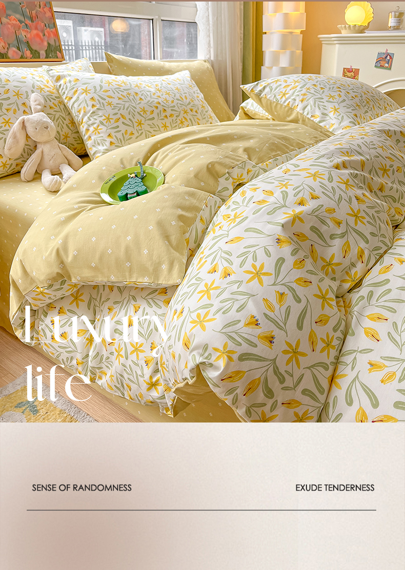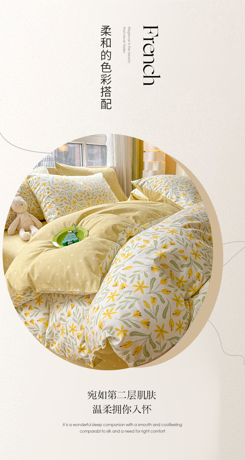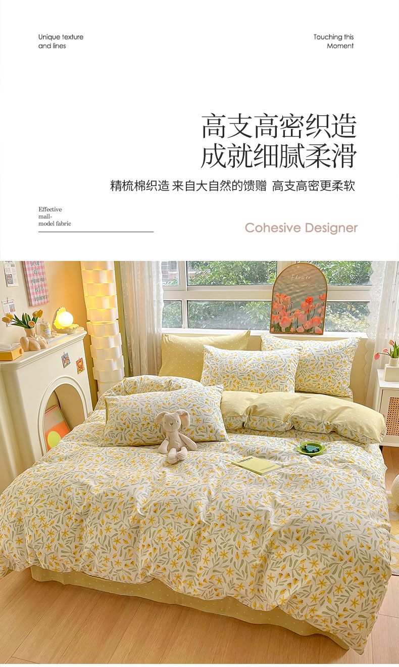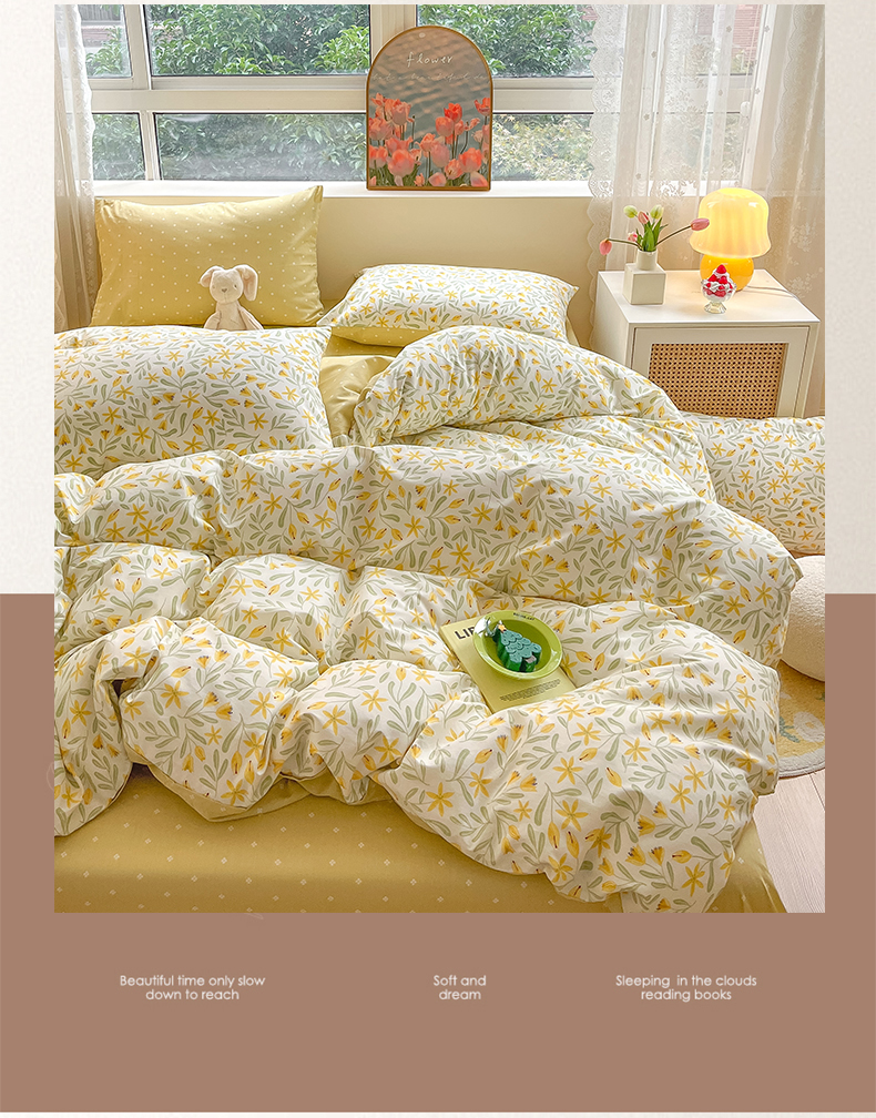 吉象家纺13070全棉四件套纯棉四件套直播小清新男孩女春野