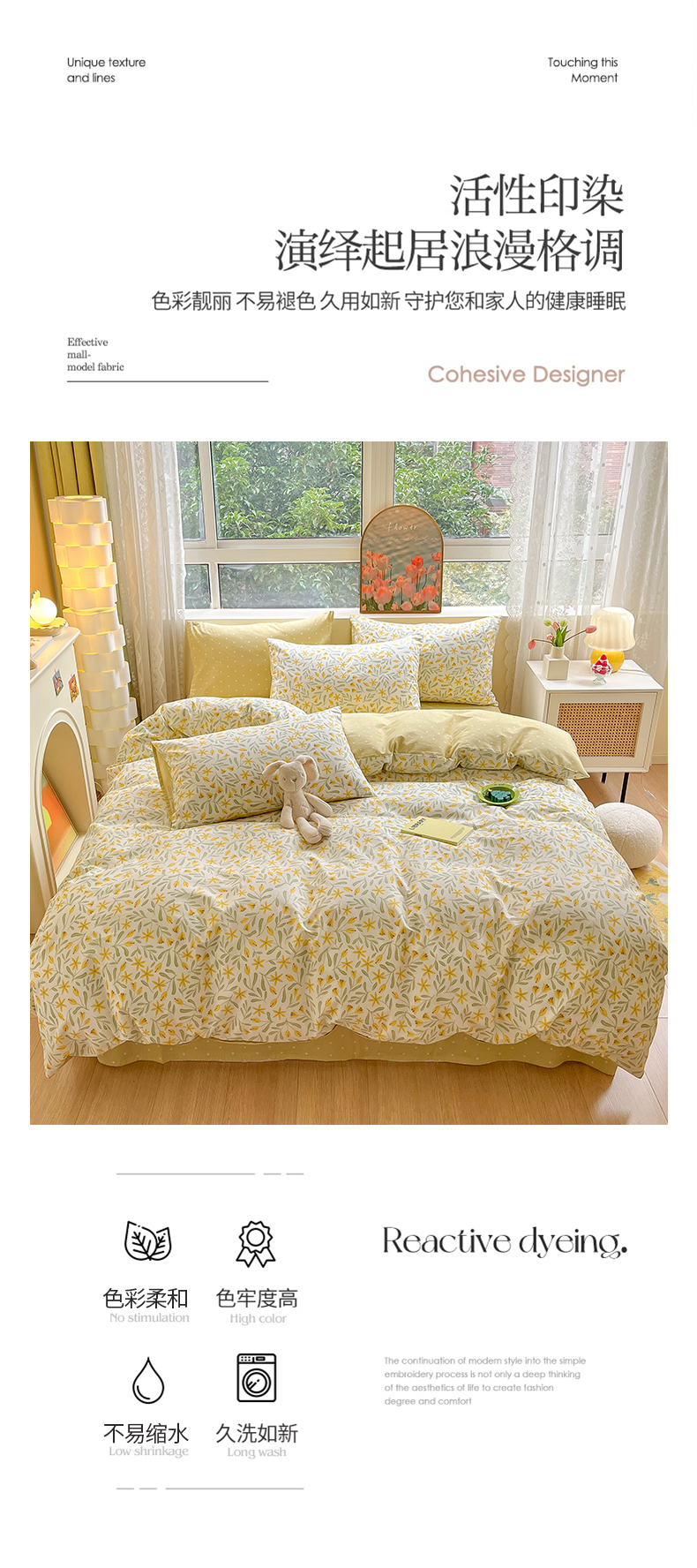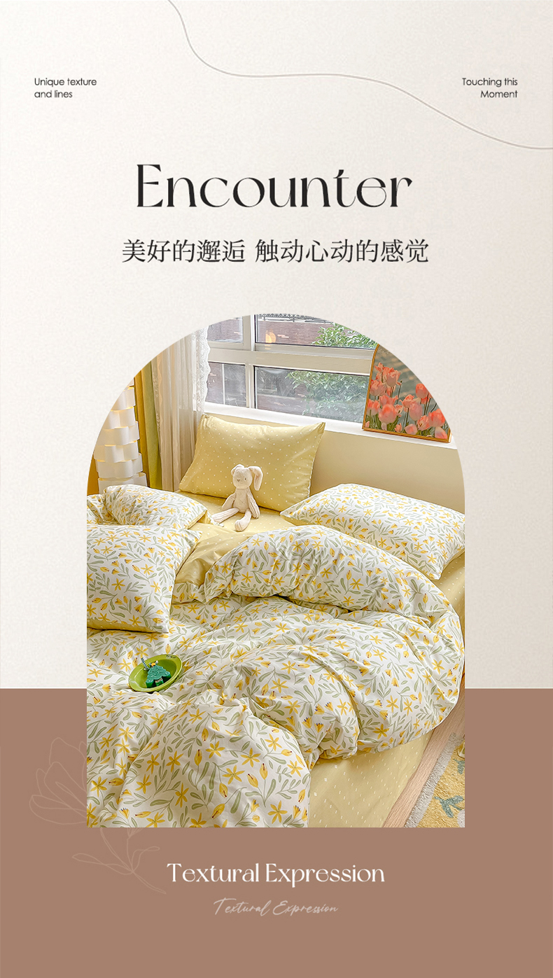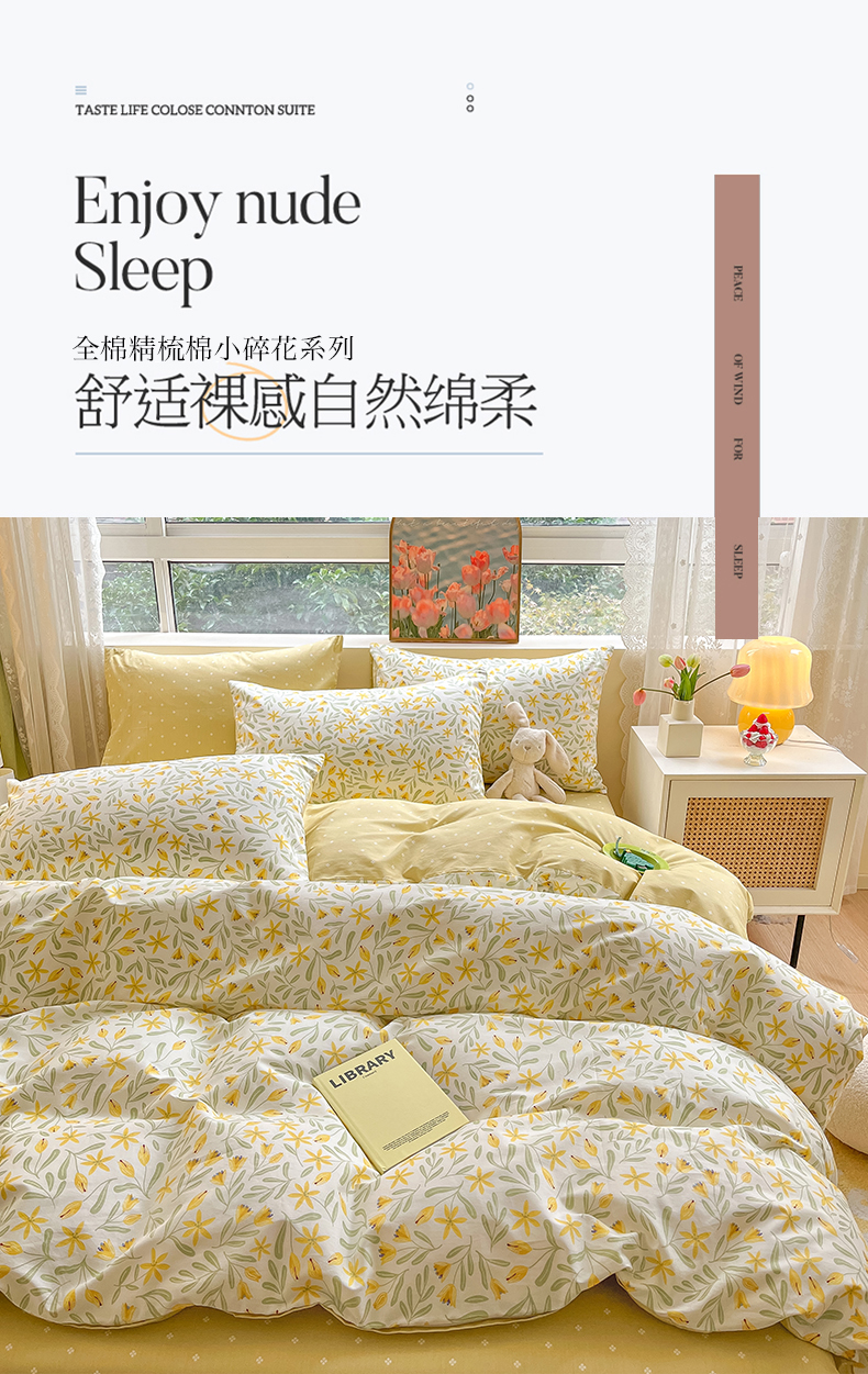 吉象家纺13070全棉四件套纯棉四件套直播小清新男孩女春野