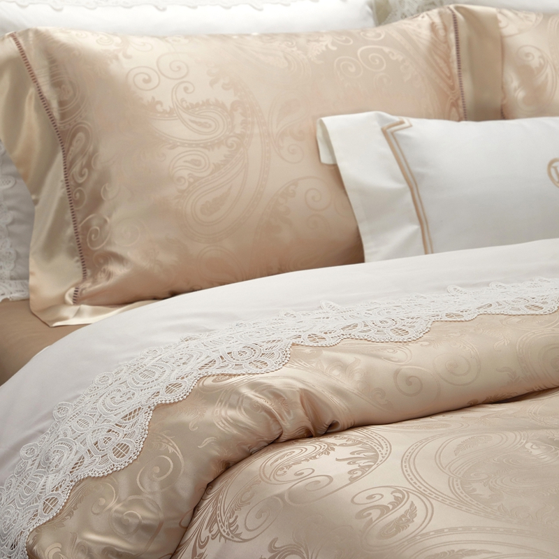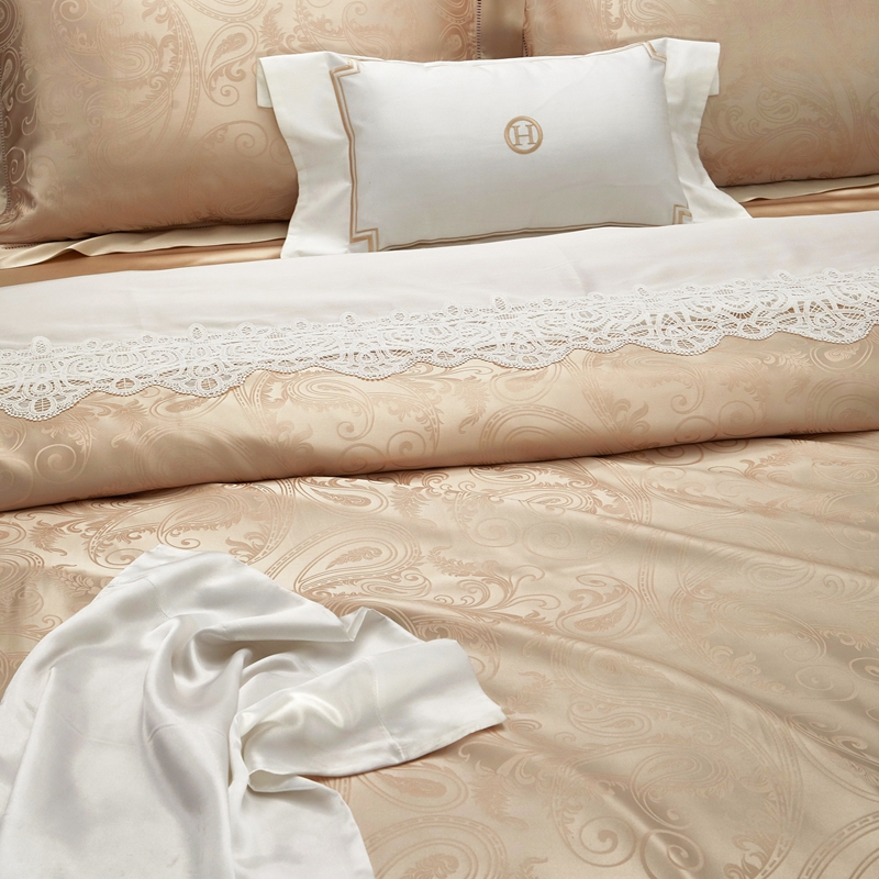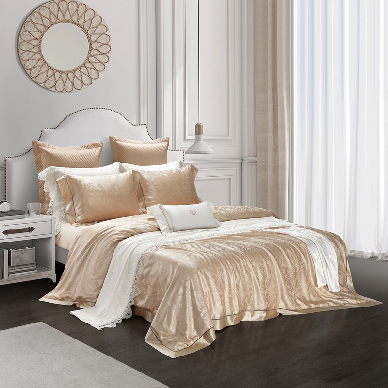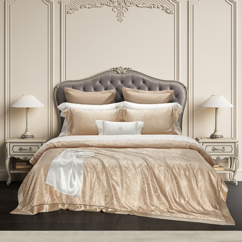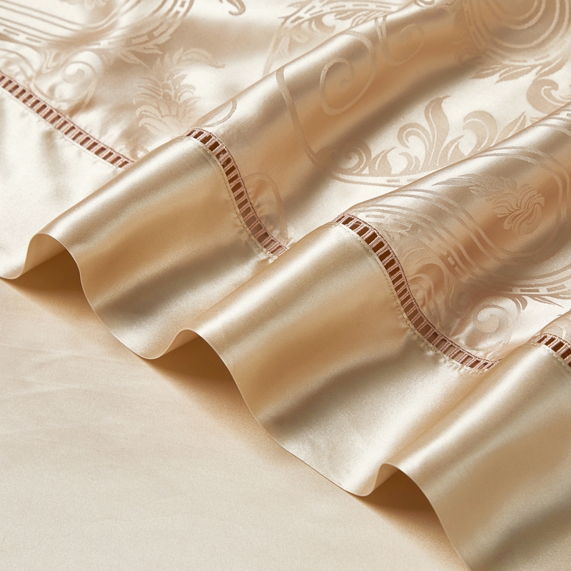 商品名称:赫本真丝馆(珍丝纺) 2025新款真丝提花系列四件套 佩德拉-金