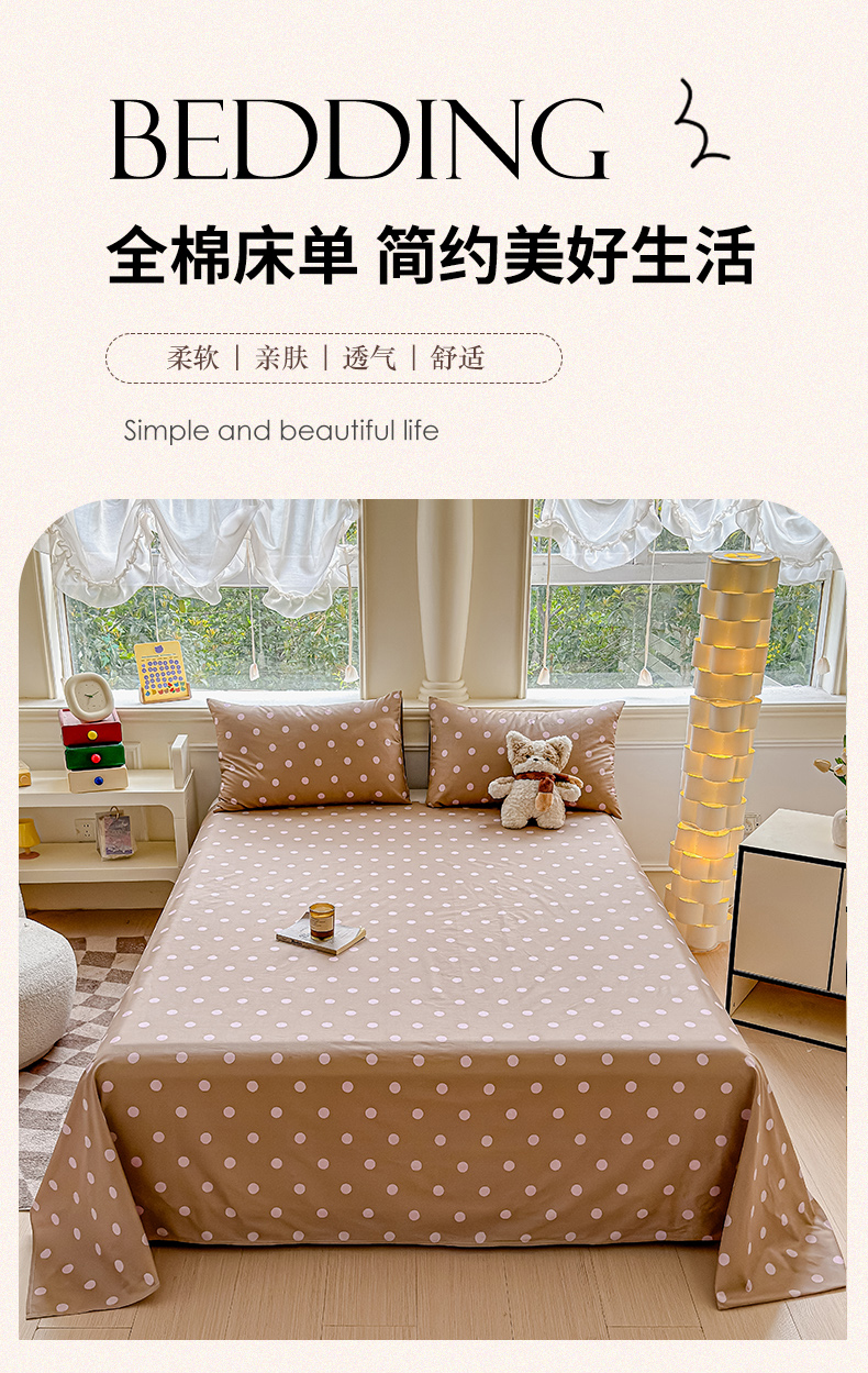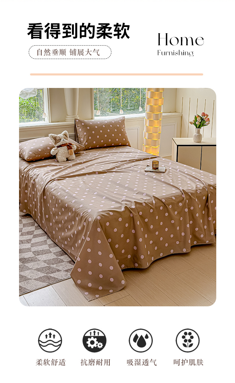• 91家纺网 家纺一手货源 找家纺 2025新款全棉床单床笠 复古紫波点 床笠款