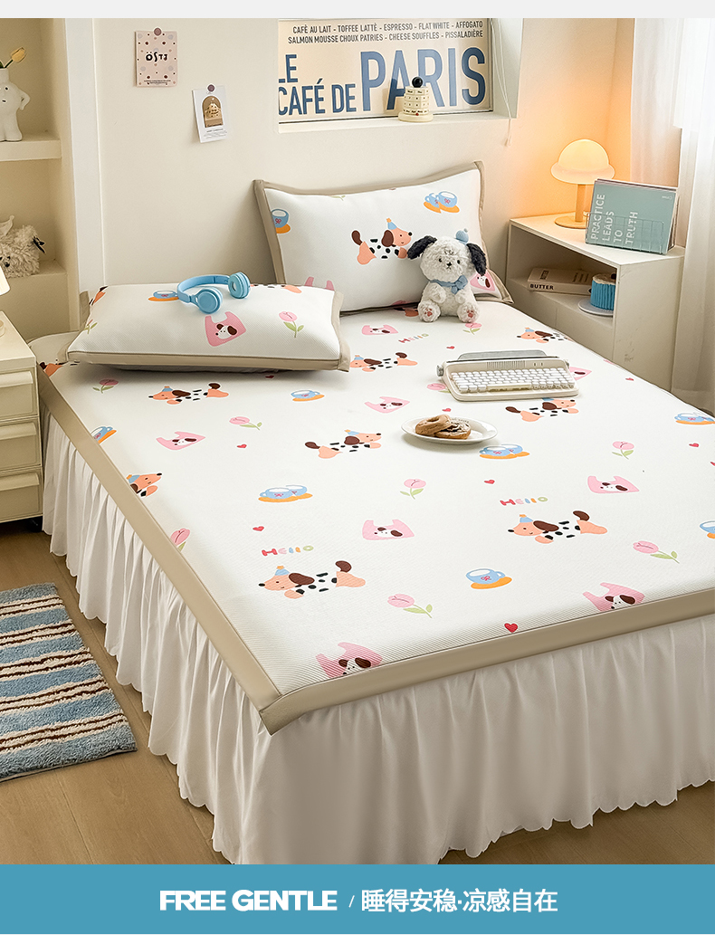 (总)懒猫家纺 2022新款学生宿舍冰丝数码印花凉席,尔雅,粉小兔,花韵,萝卜兔,清晨,手绘爱心,探索星球,甜心,小鲸鱼,小熊仔,元气兔
