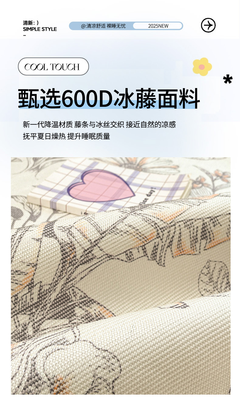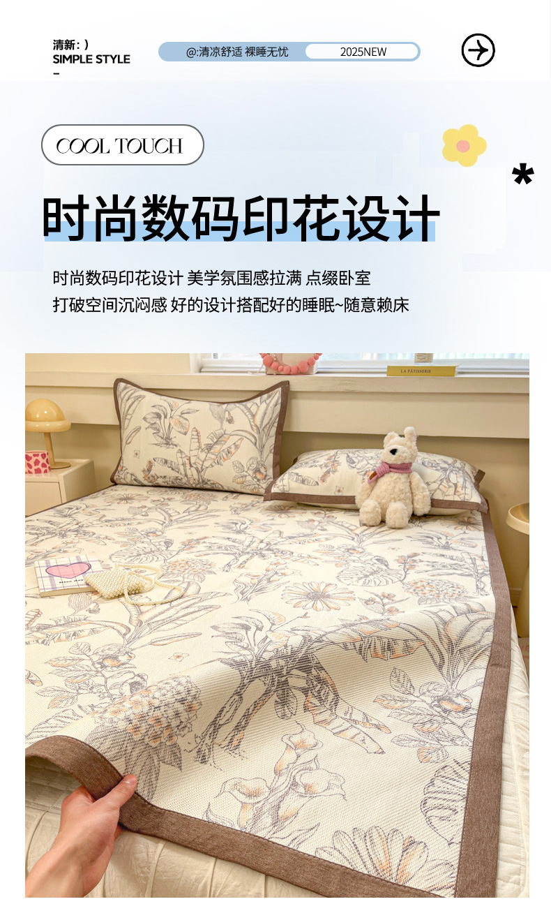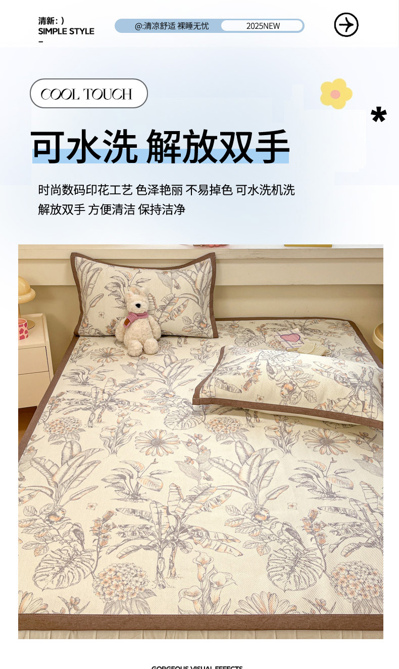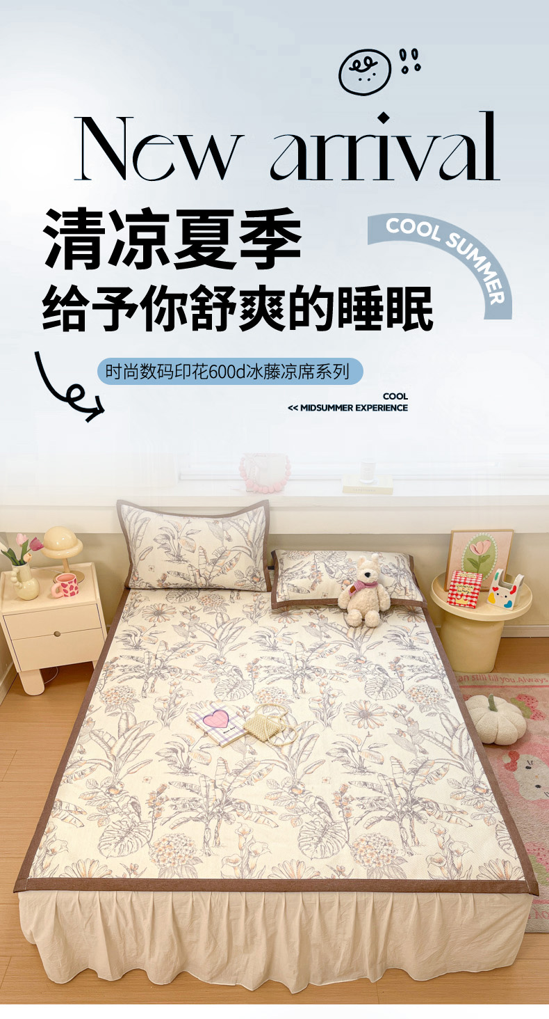 慕澄家纺 2025新款小清新印花真冰藤系列凉席床席款 床席-丛林