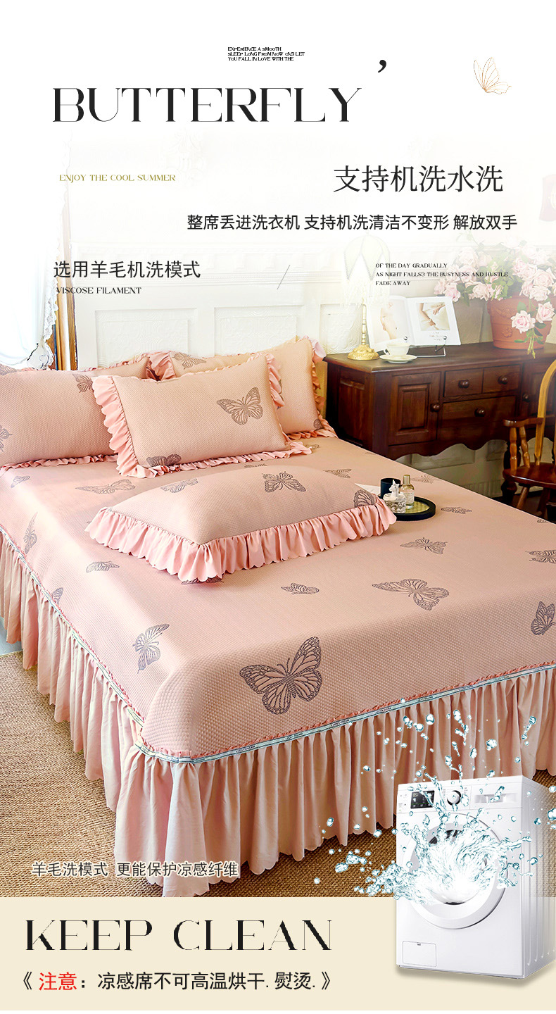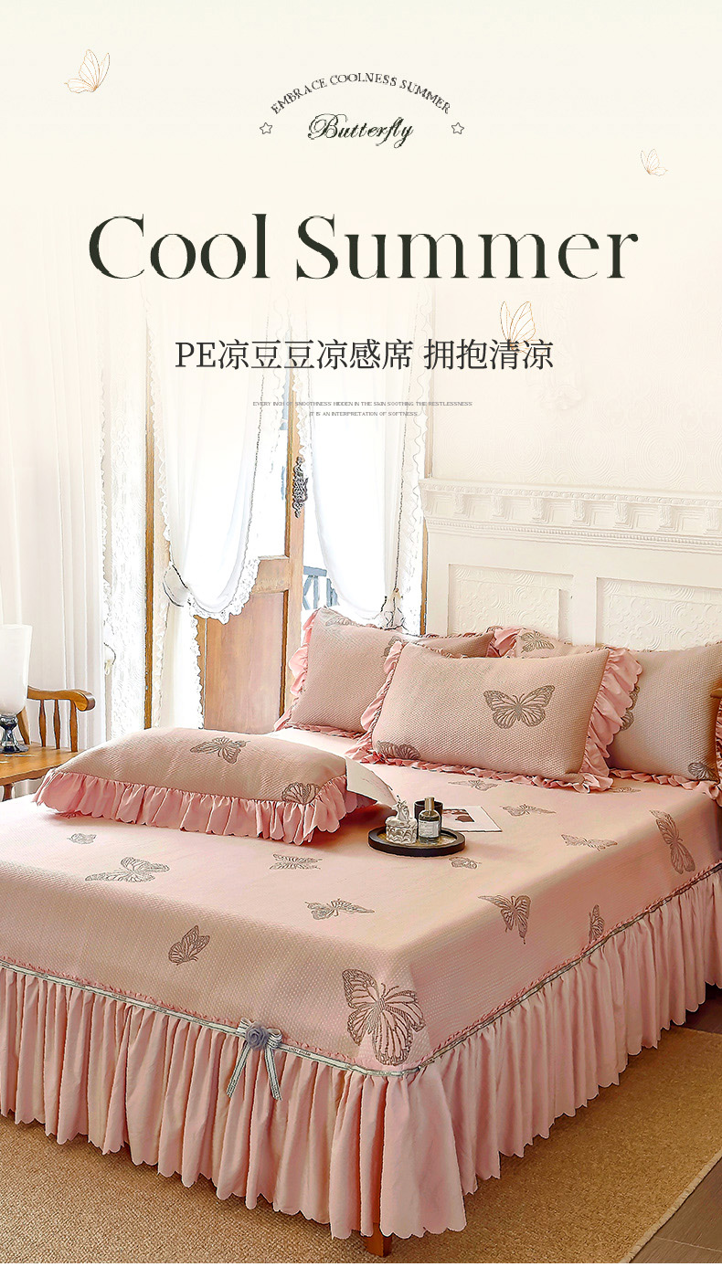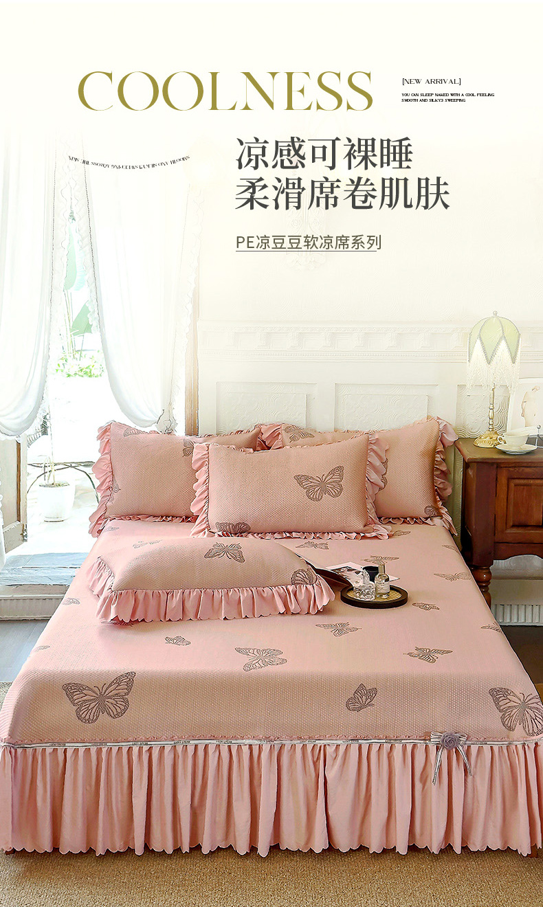 (总)乐朵家居 2025新款 幻蝶(可配同色系空调被)PE凉席三件套(复合) 控价218,幻蝶-豆沙,幻蝶-灰,幻蝶-兰紫,幻蝶-迷雾蓝,幻蝶-米白,幻蝶-香槟金