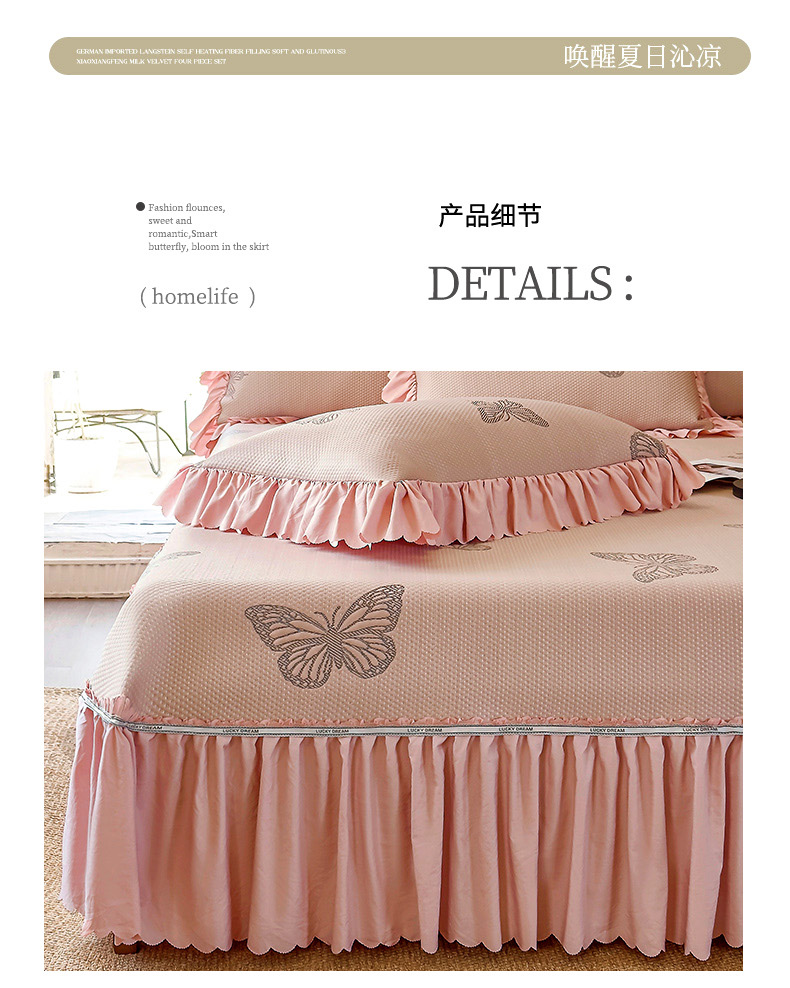 (总)乐朵家居 2025新款 伊莉莎 牛奶绒夹棉床盖四件套,奶白,粉玉