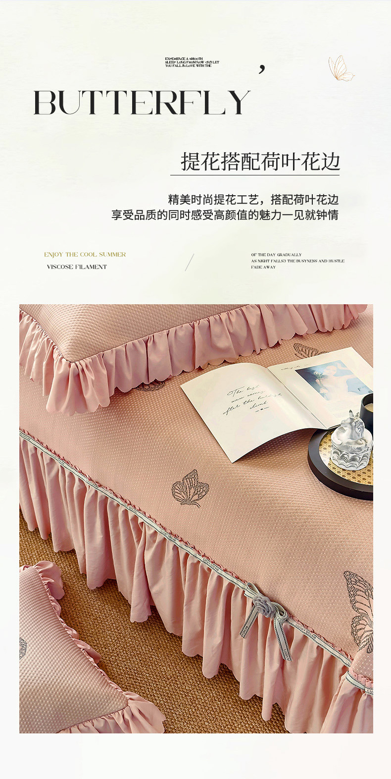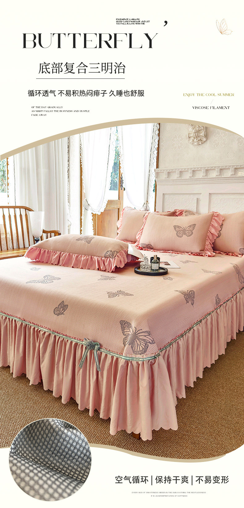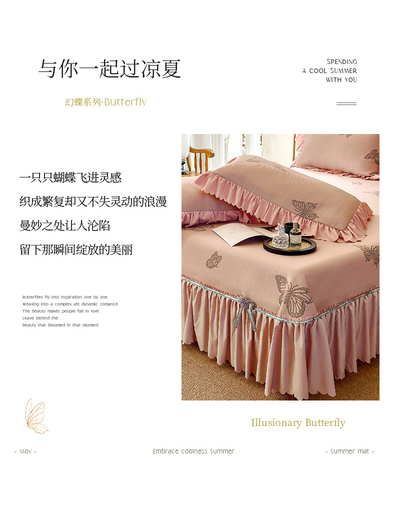 商品名称:乐朵家居 2025新款 幻蝶(可配同色系空调被)PE凉席三件套(复合) 控价218 豆沙