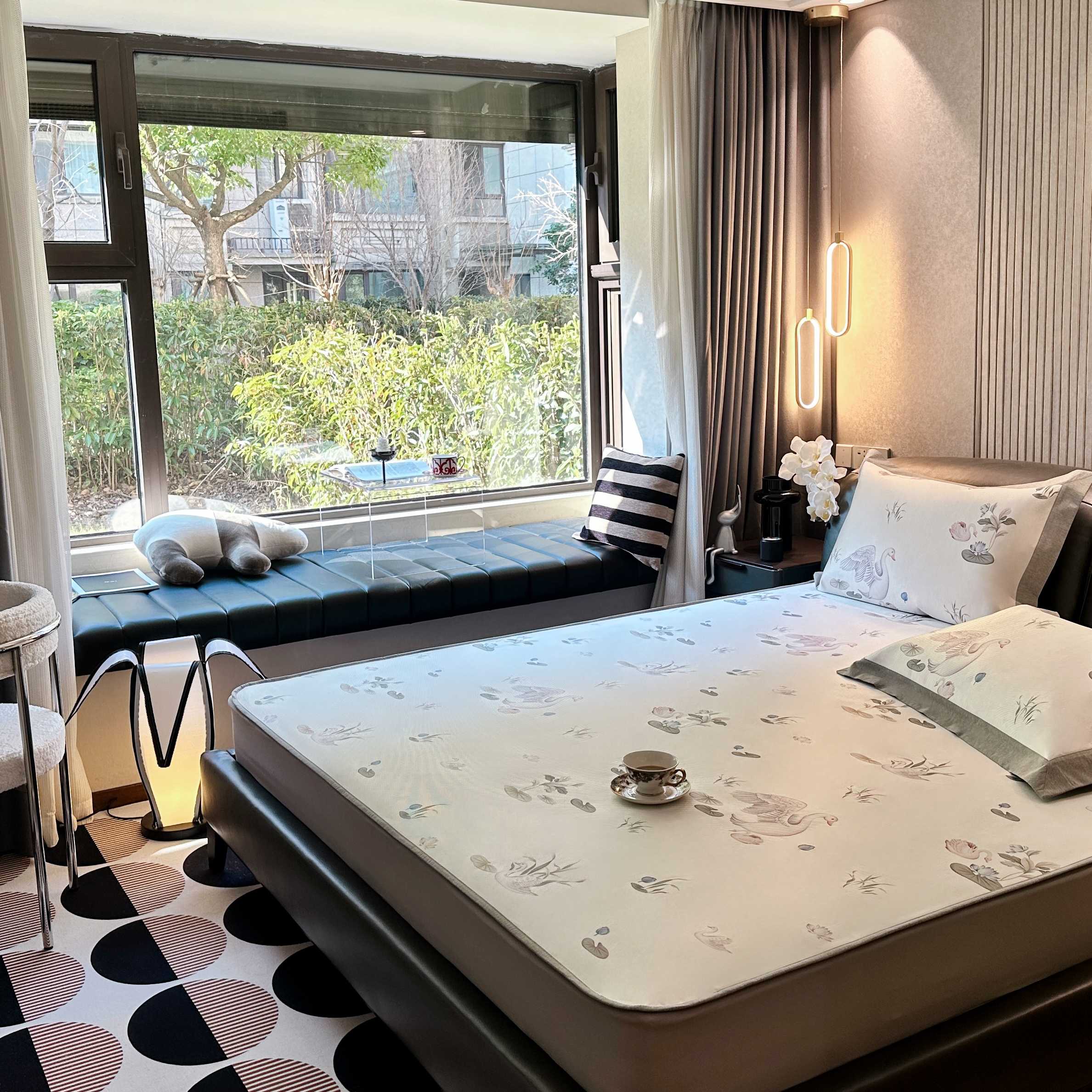 商品名称:JUICY 橘滋家纺 2025新款夏日高端轻奢数码冰丝奢简高级凉席床笠 野趣