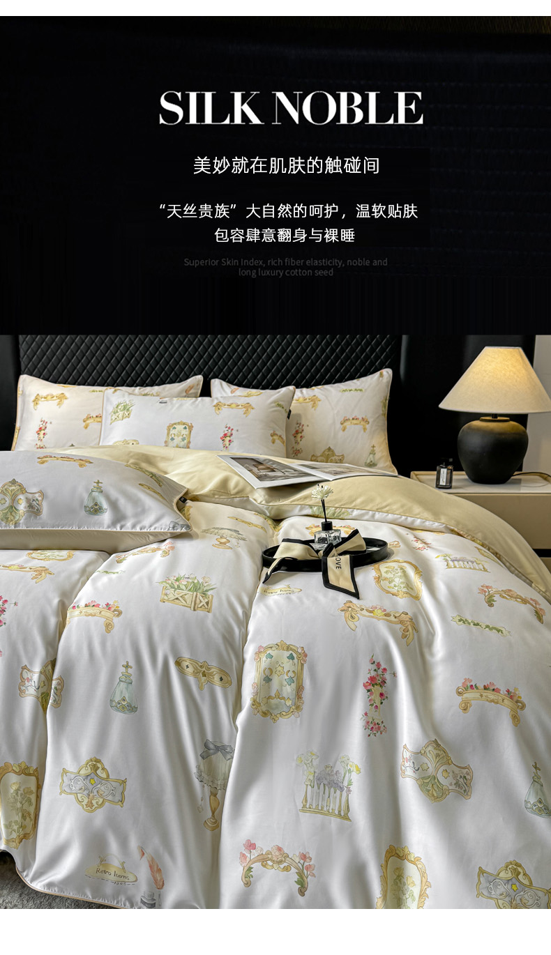 芊寻家居 2025春夏新款50支莱赛尔天丝贡缎数码印花麻绳款四件套高端礼盒 洛丽塔米
