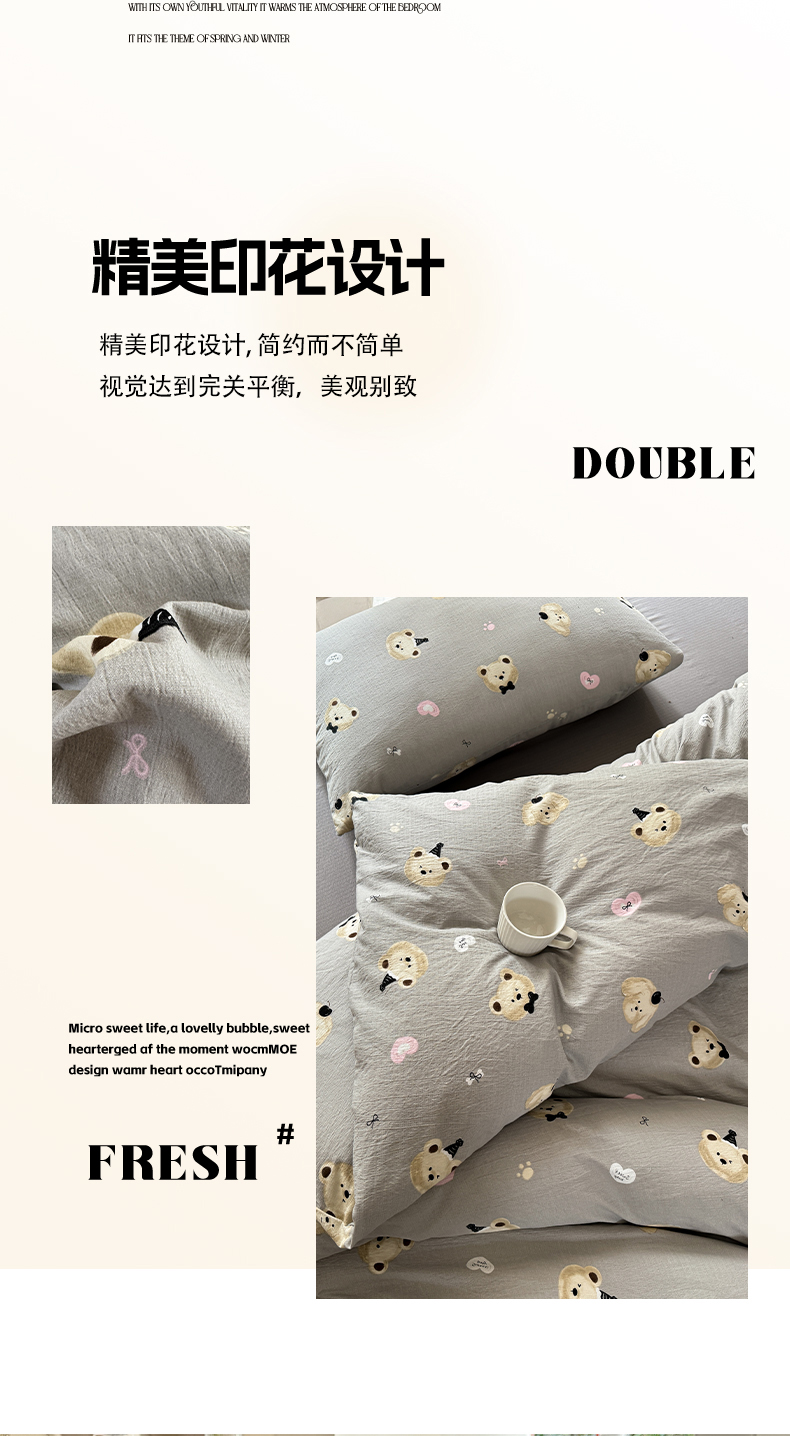 当前位置: 91家纺网 > 商品网购 > 床品套件 > 四件套 > 双层纱四件套 > 韩巢家纺 2025新款云感提花双层纱单被套被套单件单品被套-(提供卖家秀) 奇妙小熊
