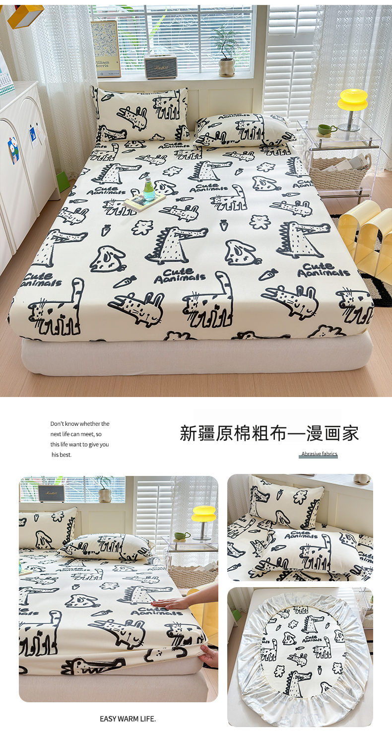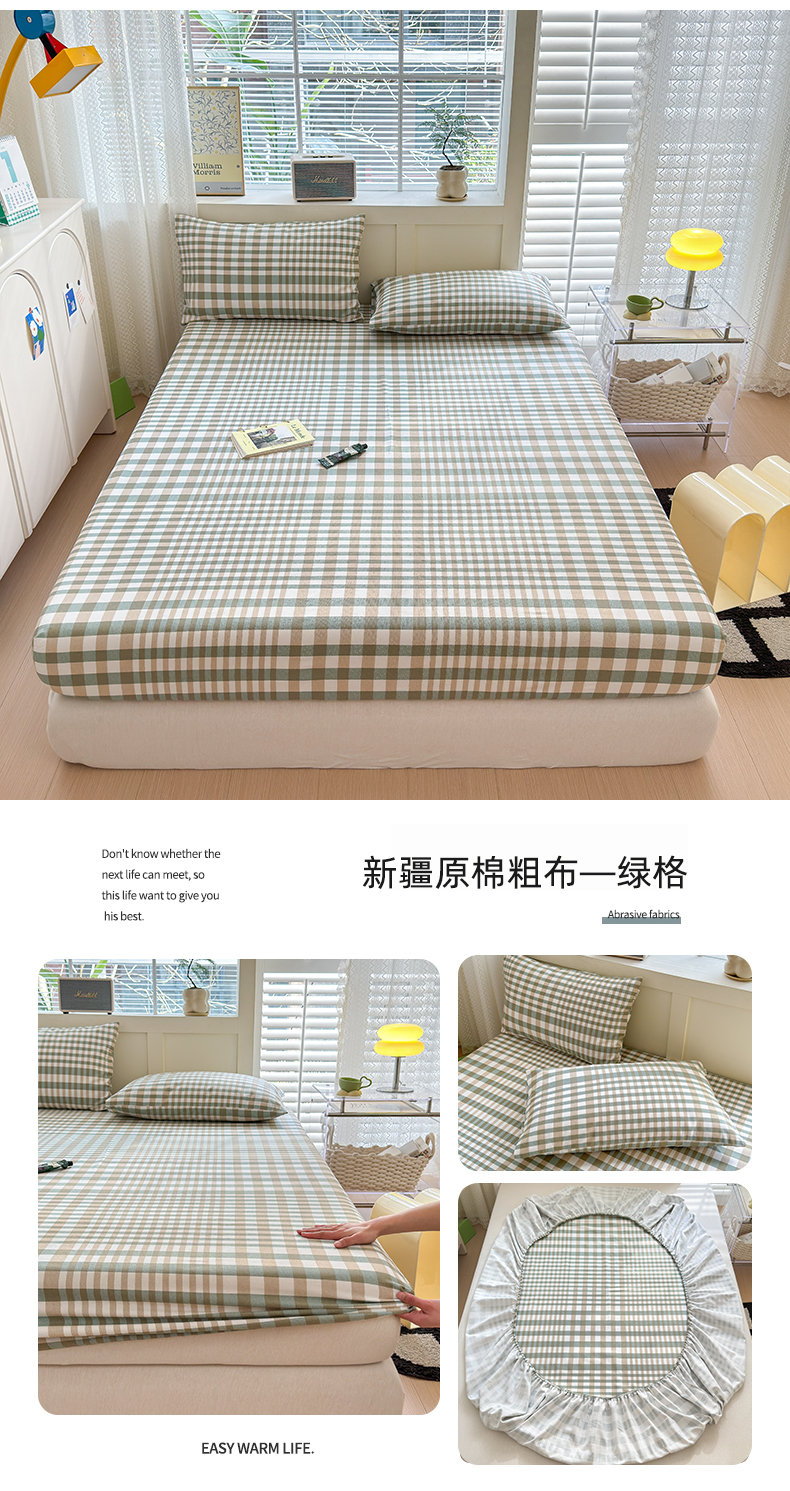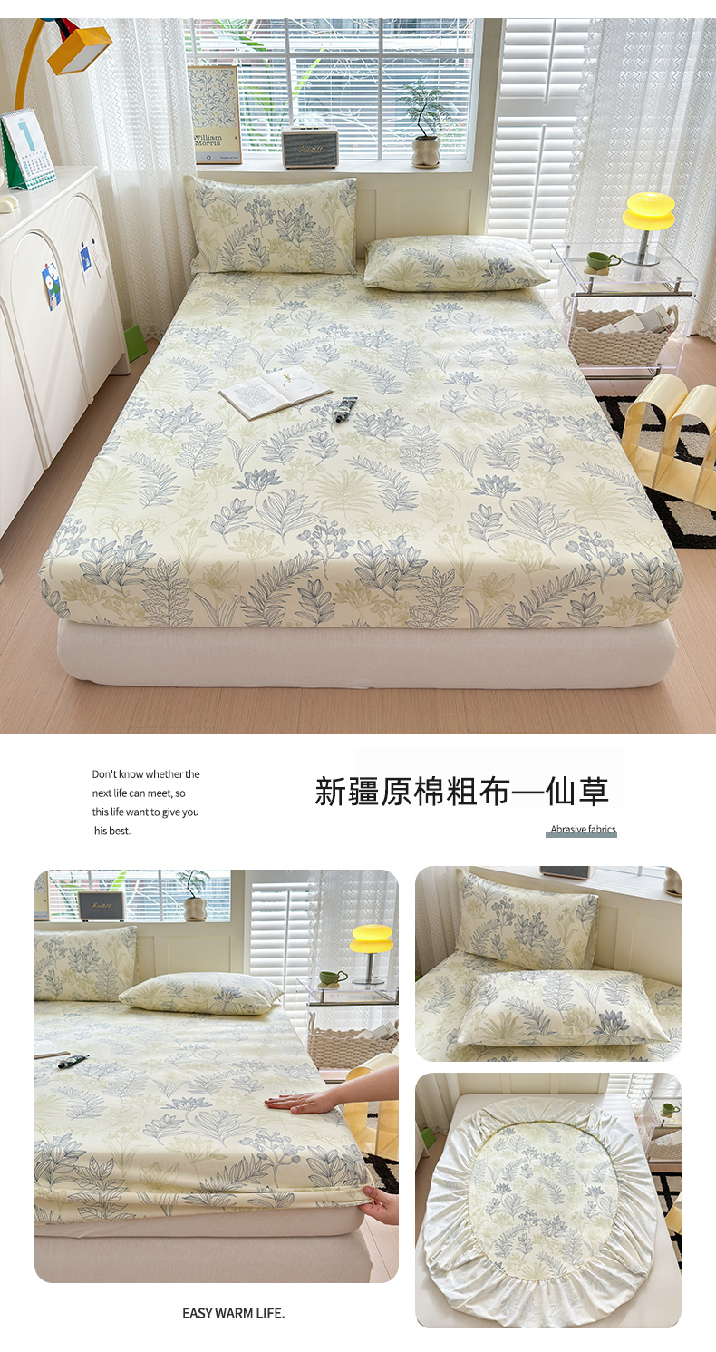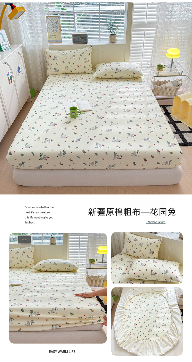 (总)吉象家纺 2024新款老粗布三件套-床笠款,仙草,品格灰,品格绿,墨,悉尼绿,春色,朵朵郁金香,水墨画,漫画家,狗狗乐园,粉玫瑰,繁花,绿格,美乐蒂,花园兔,蓝格