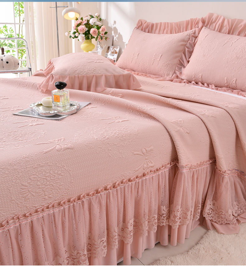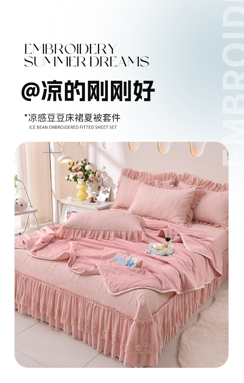 铠畅家纺 2025新款凉感豆豆床裙夏被三件套-花梦蝶 花梦蝶-粉