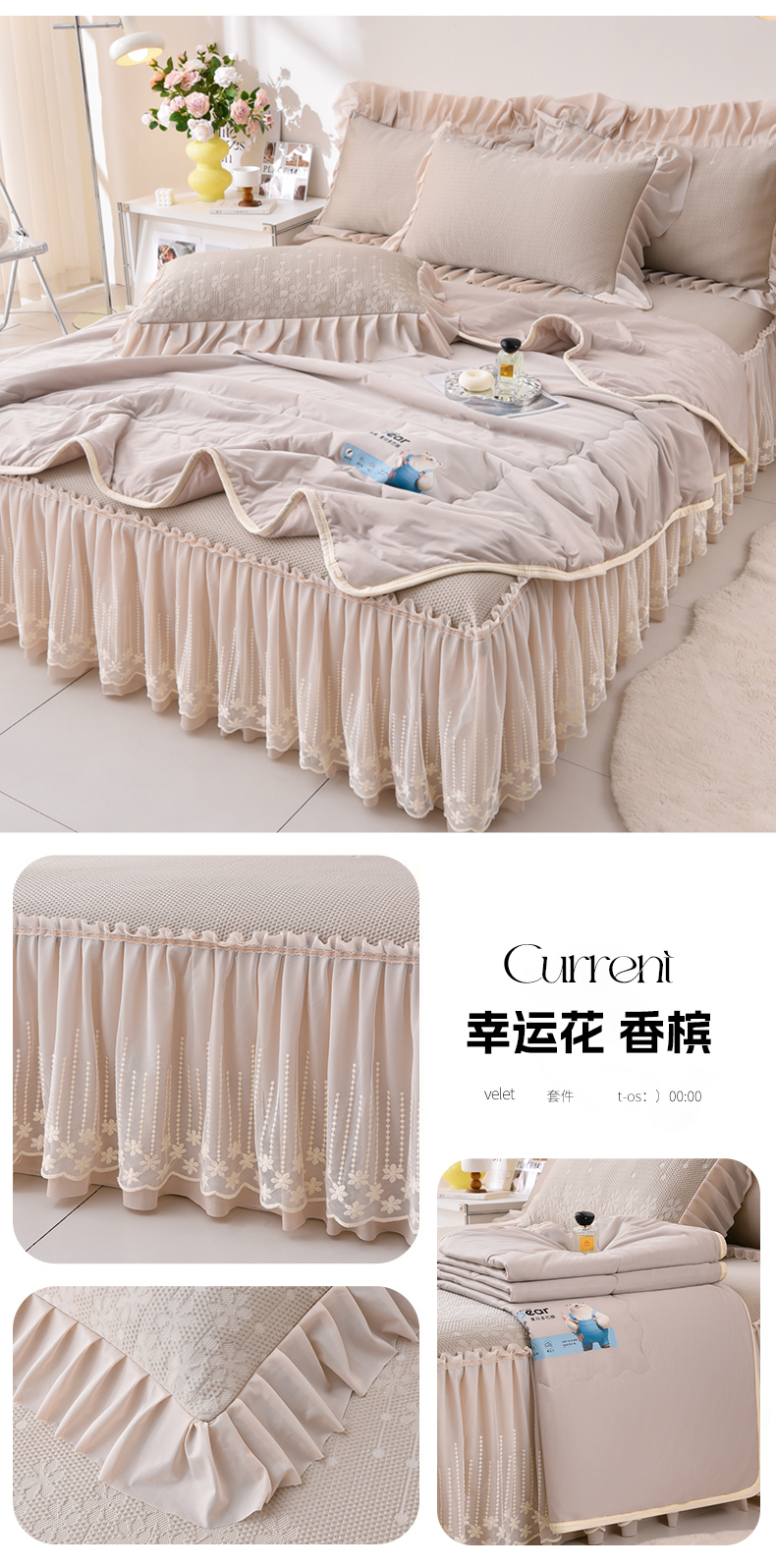 (总)铠畅 2025新款法式花边云朵棉床盖款夏被四件套,暗香,豹纹,蝶梦,繁花,富贵花开,格兰情调,蝴蝶结,花海,花期,花田,花溪子,花香,花漾,花忆,花之恋,千鸟格,情调格紫,秋恋,小爱心,小木马,星空