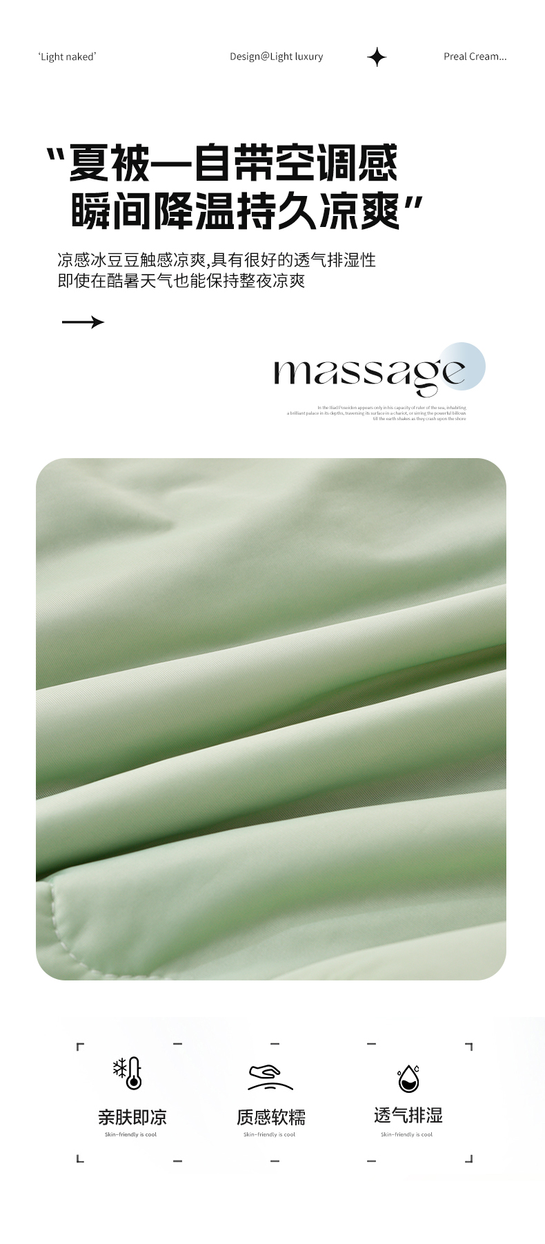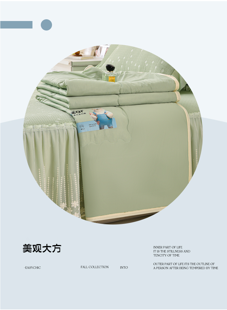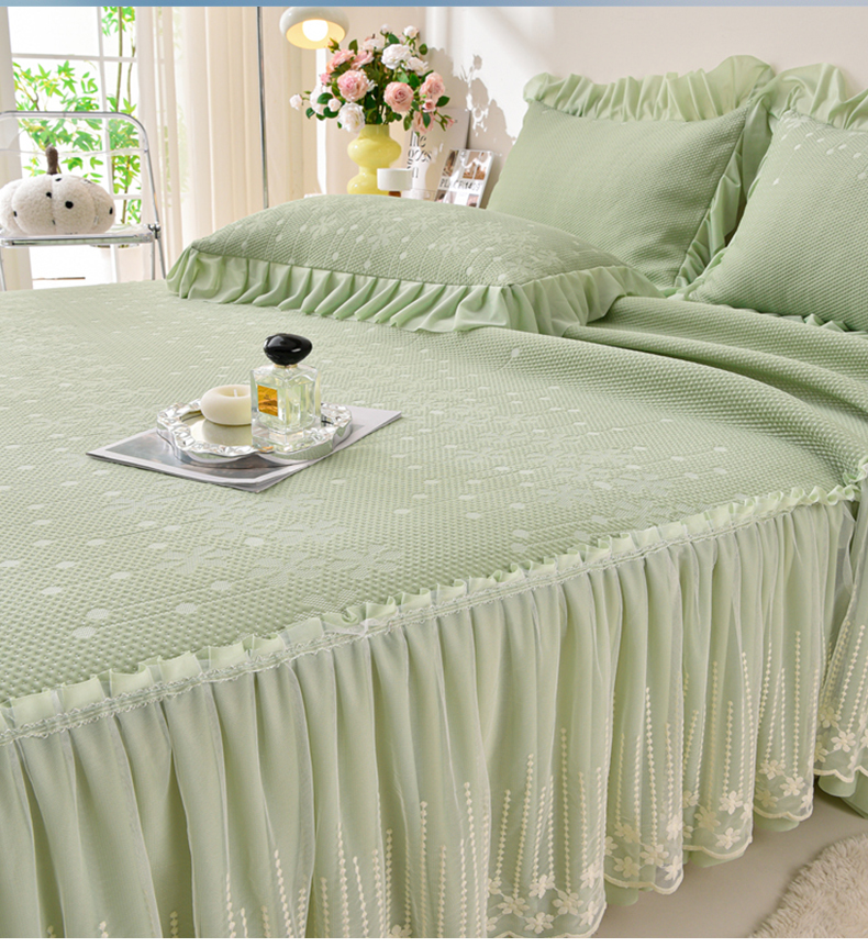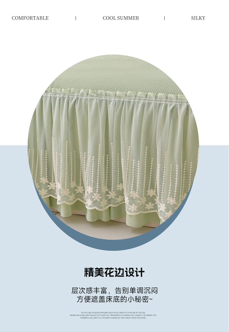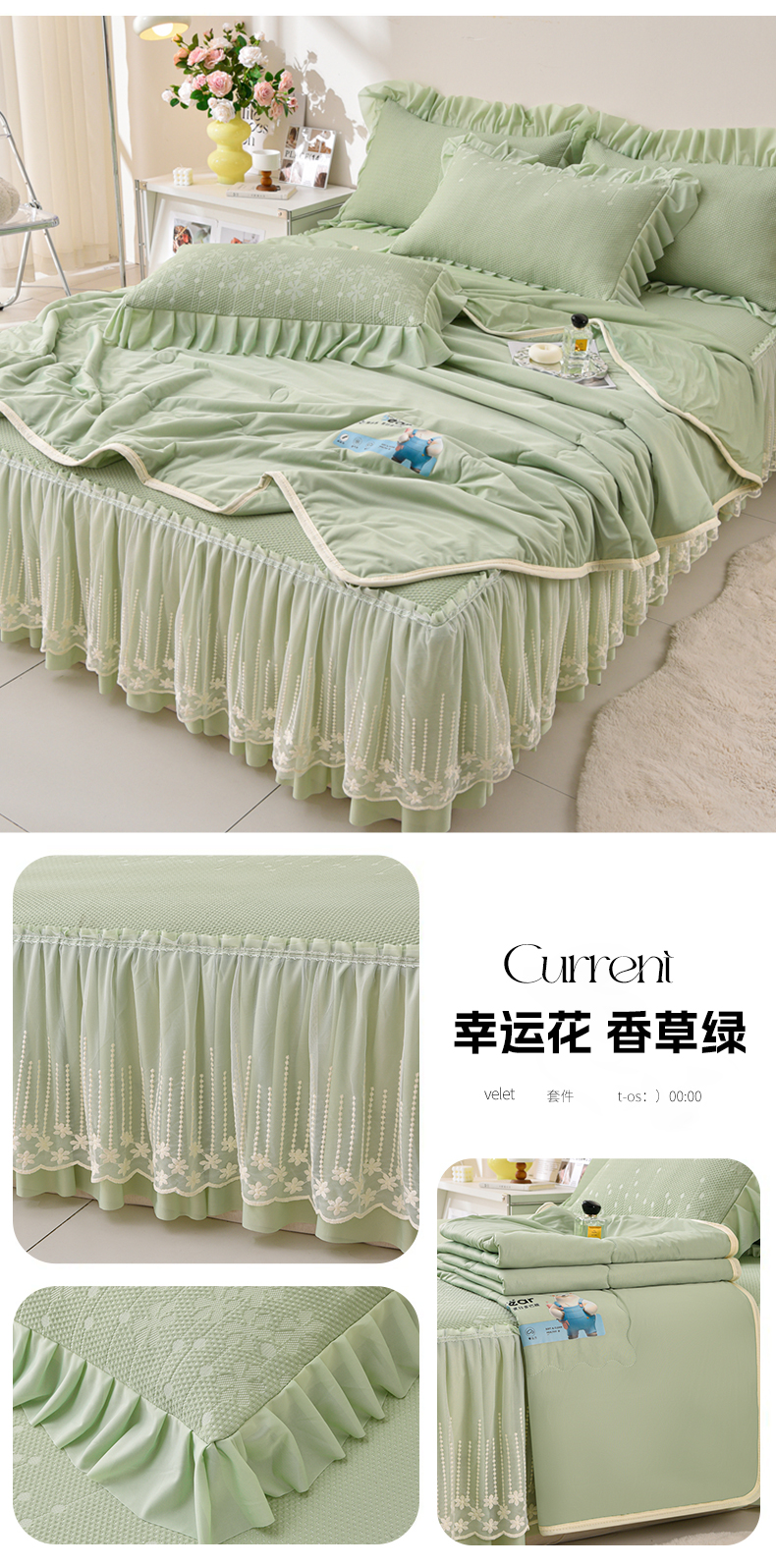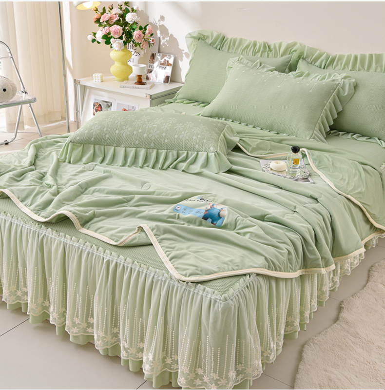 商品名称:铠畅家纺 2025新款凉感豆豆床裙夏被四件套--幸运草 幸运花-香草绿