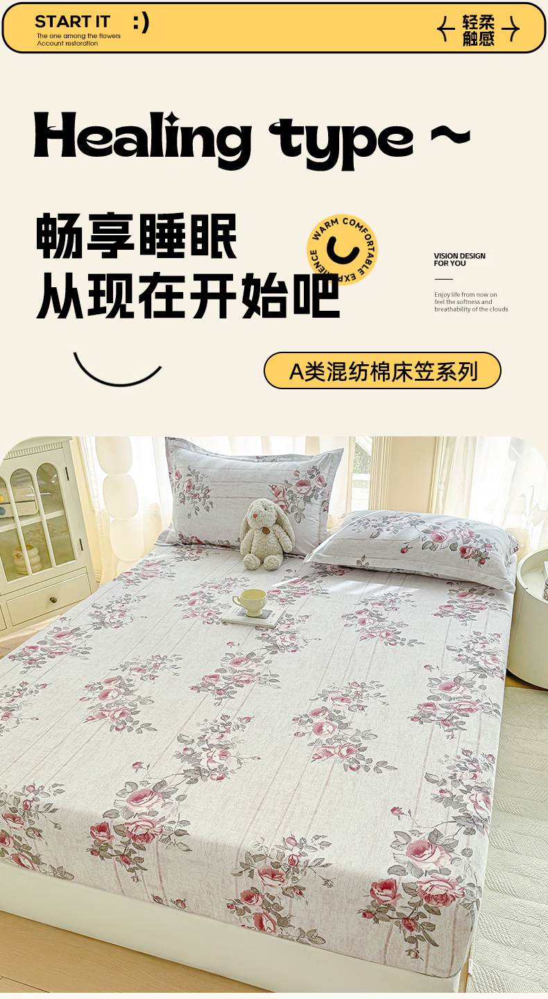 • 91家纺网 家纺一手货源 找家纺 丝芙妮家居(原乐视家纺) 2025新款A类混纺70棉床笠 怦然