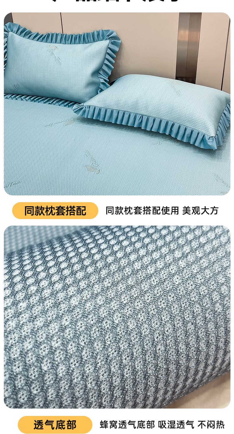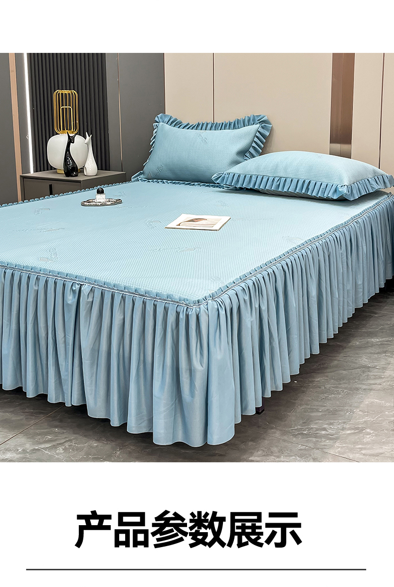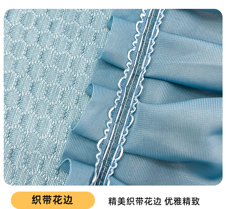 商品名称:瑞兴纺 2025新款高分子PE软凉席款床裙款 床裙款-沐夕-蓝