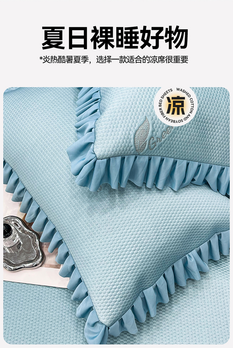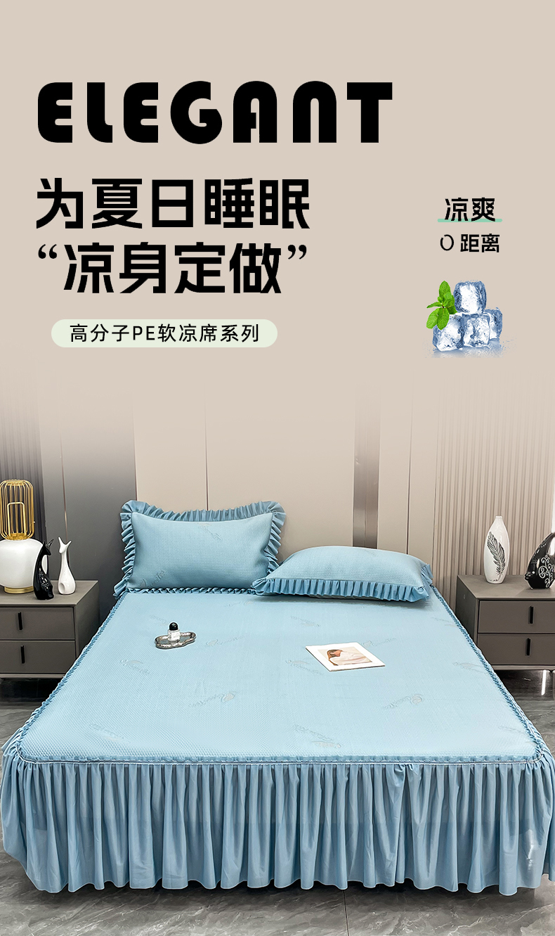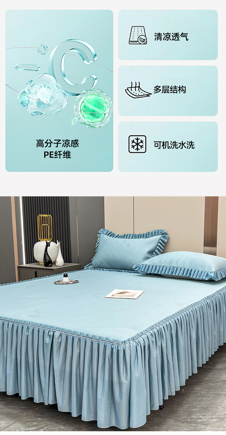 瑞兴纺 2025新款高分子PE软凉席款床裙款 床裙款-沐夕-蓝