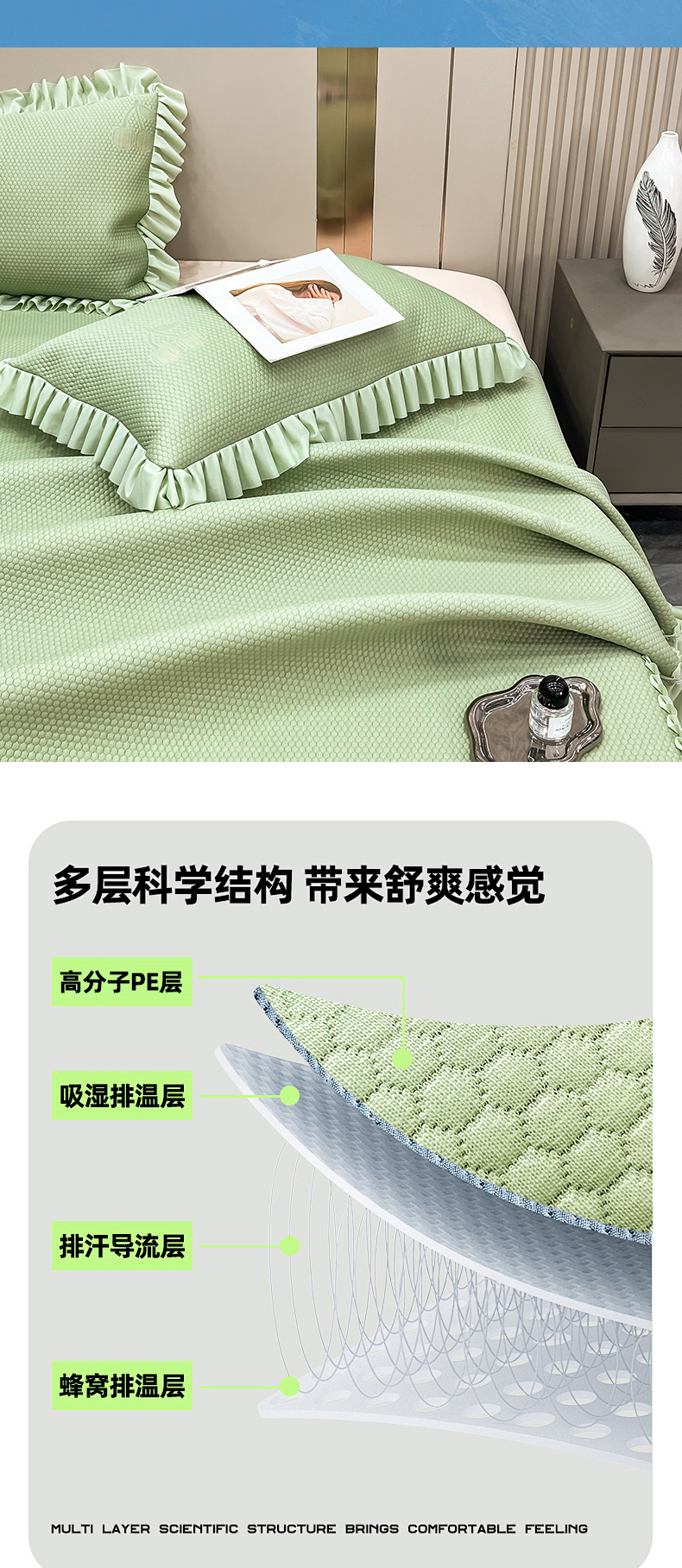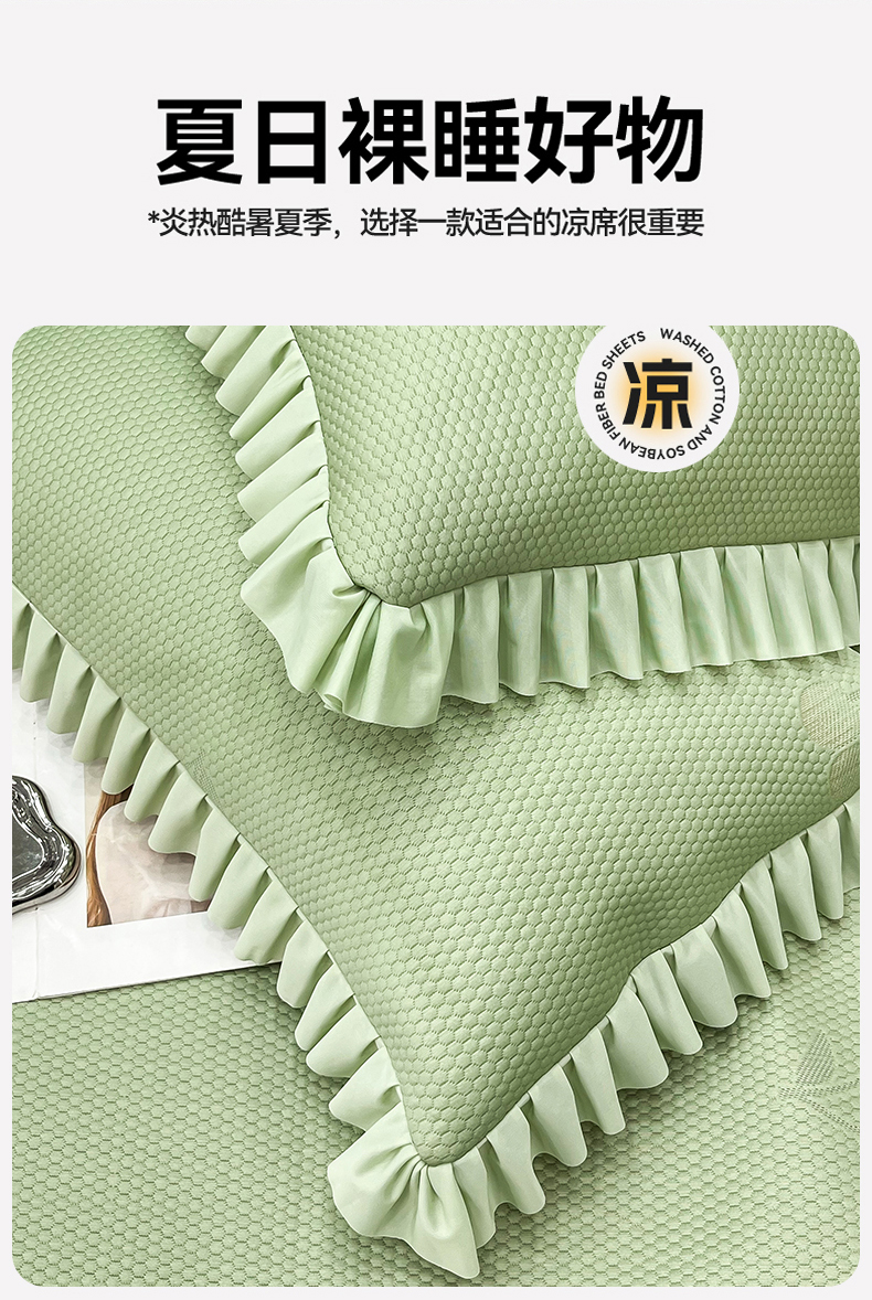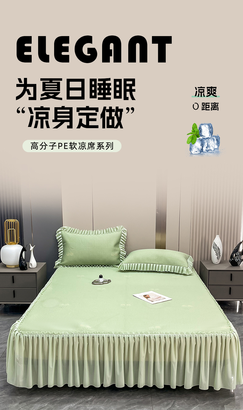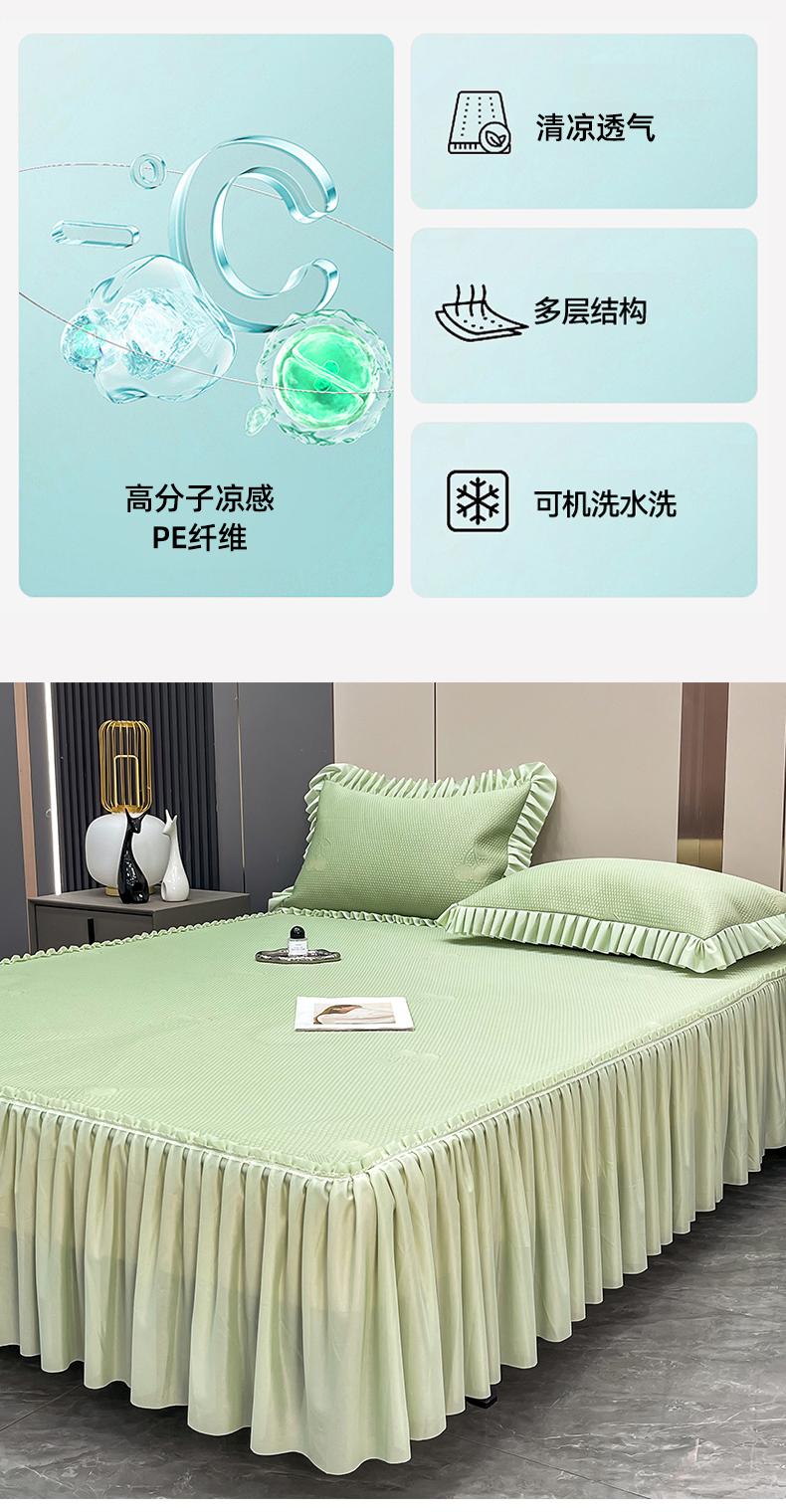 瑞兴纺 2025新款高分子PE软凉席款床裙款 床裙款-小樱桃-绿
